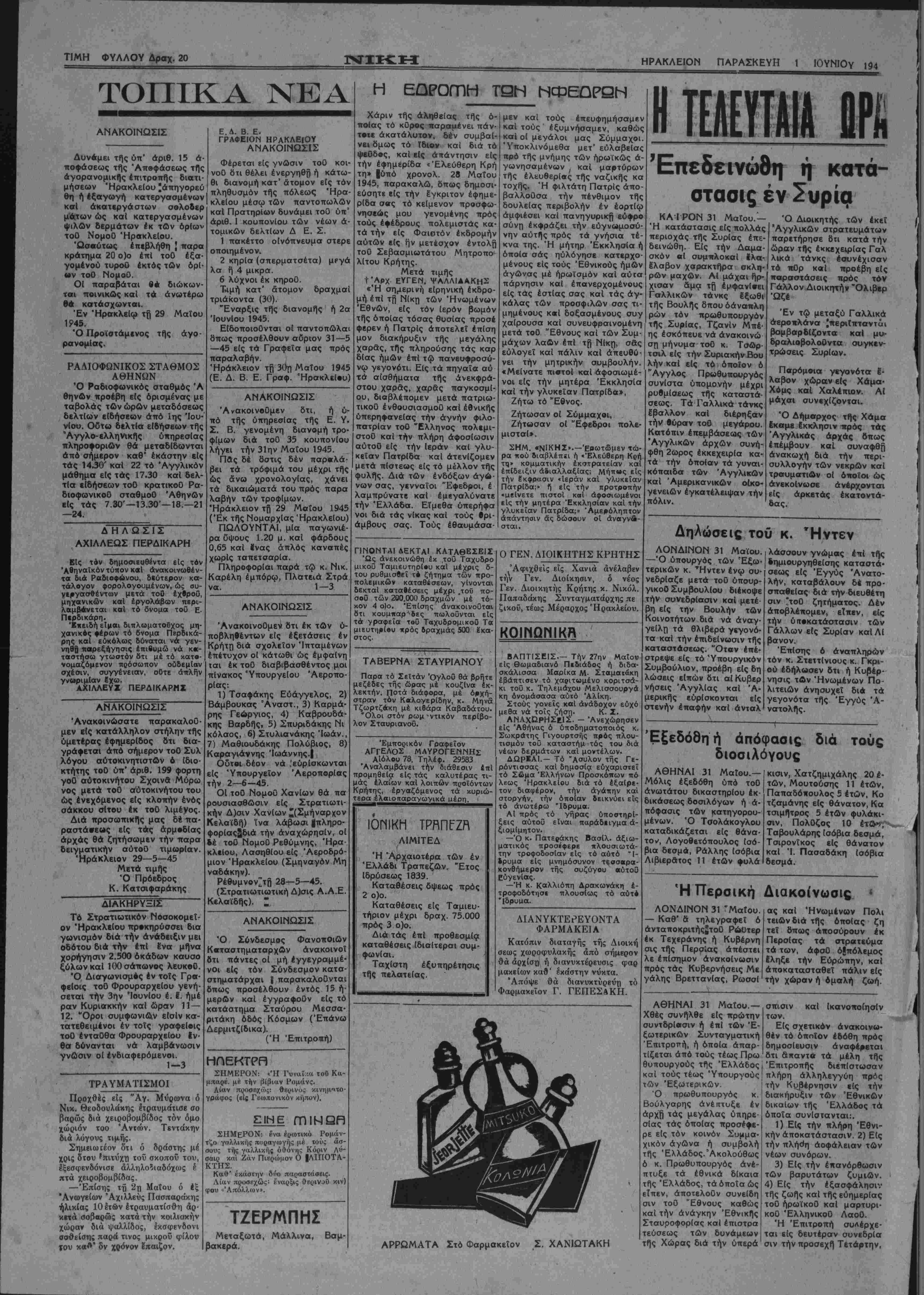 ΗΡΑΚΛΕΙΟΝ ΠΑΡΑΣΚΕΥΗ 1 ΙΟΥΝΙΟγ 194
