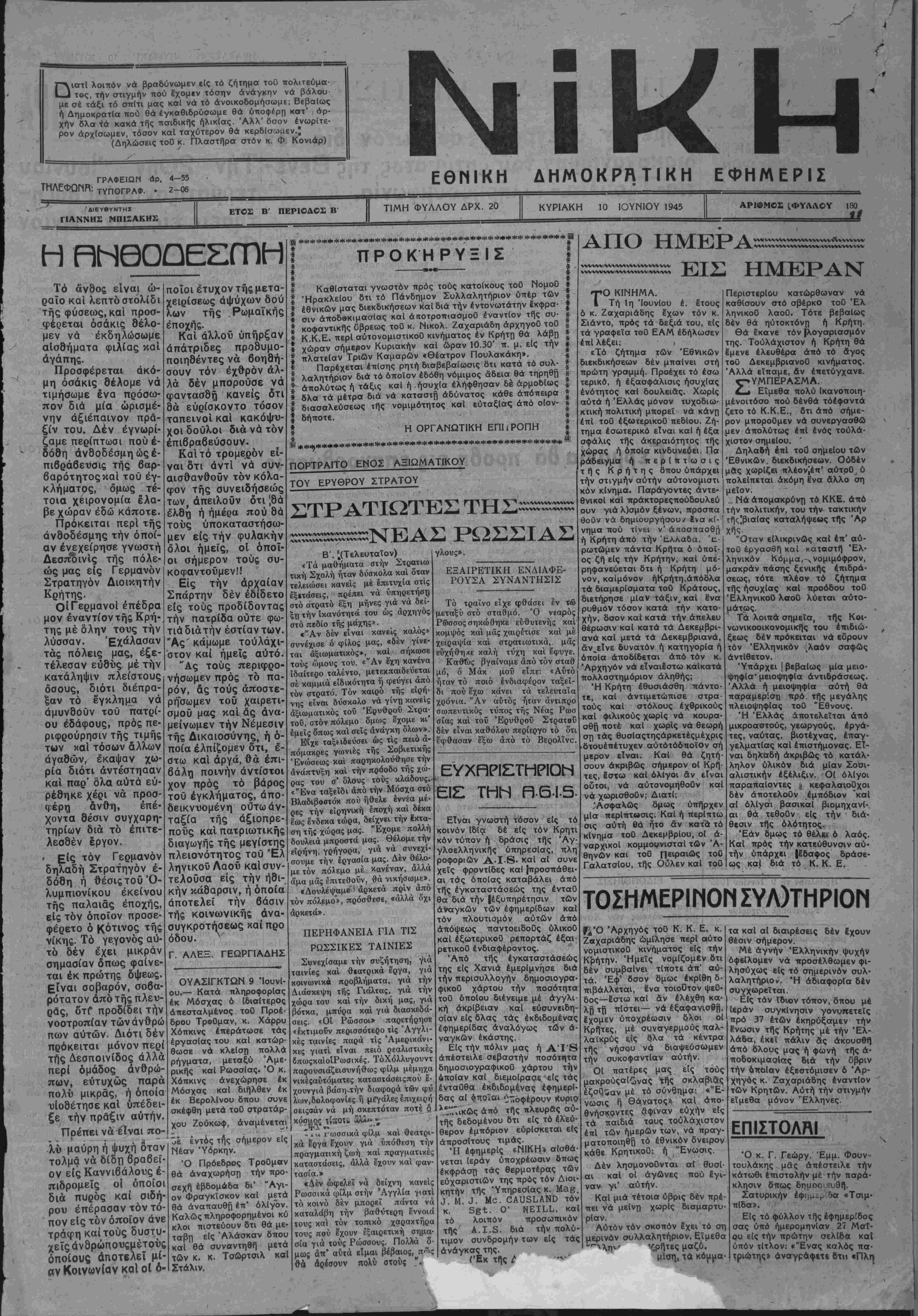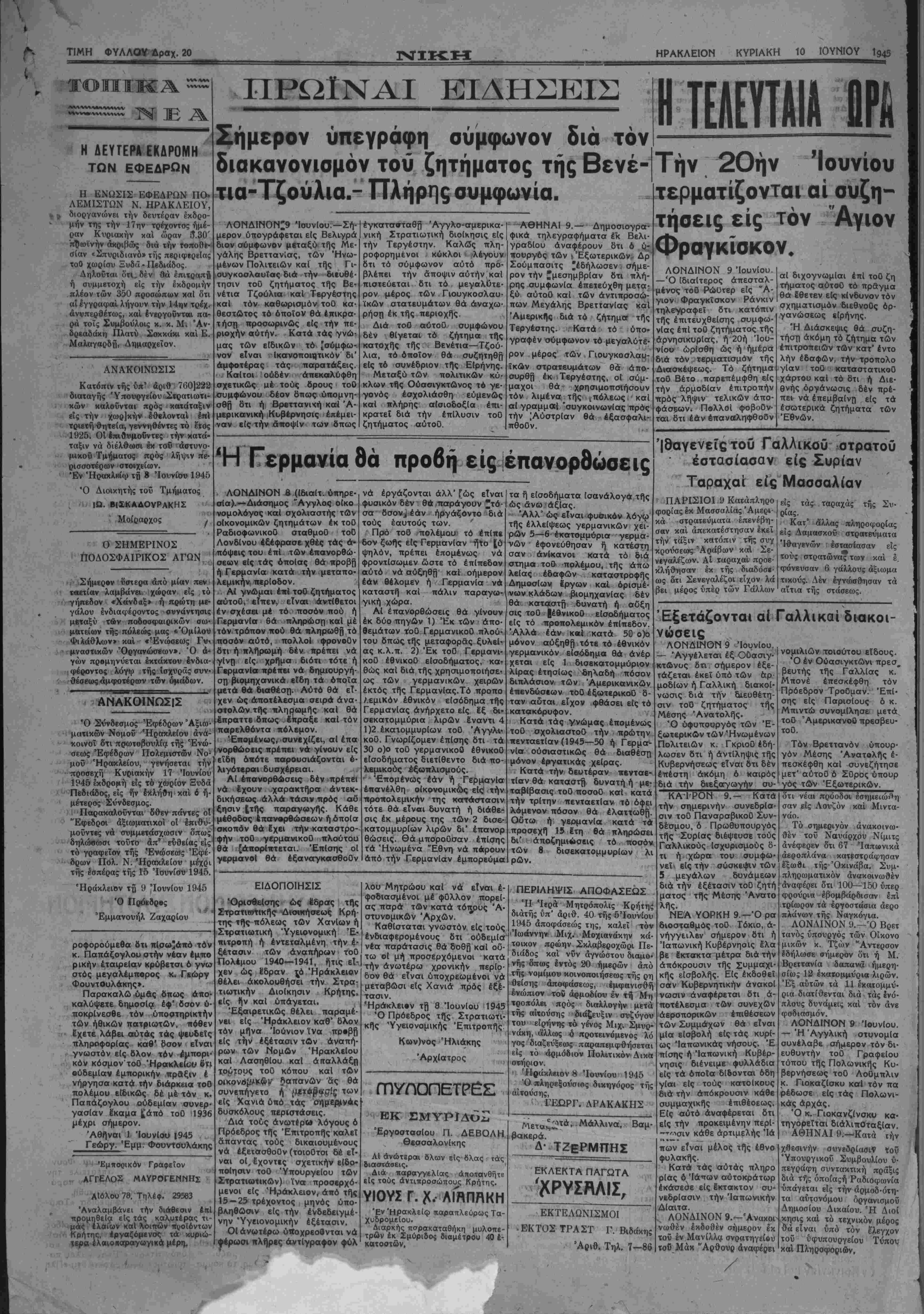ΗΡΑΚΛΕΙΟΝ ΚΥΡΙΑΚΗ 10 ΙΟΥΝΙΟΥ 1945