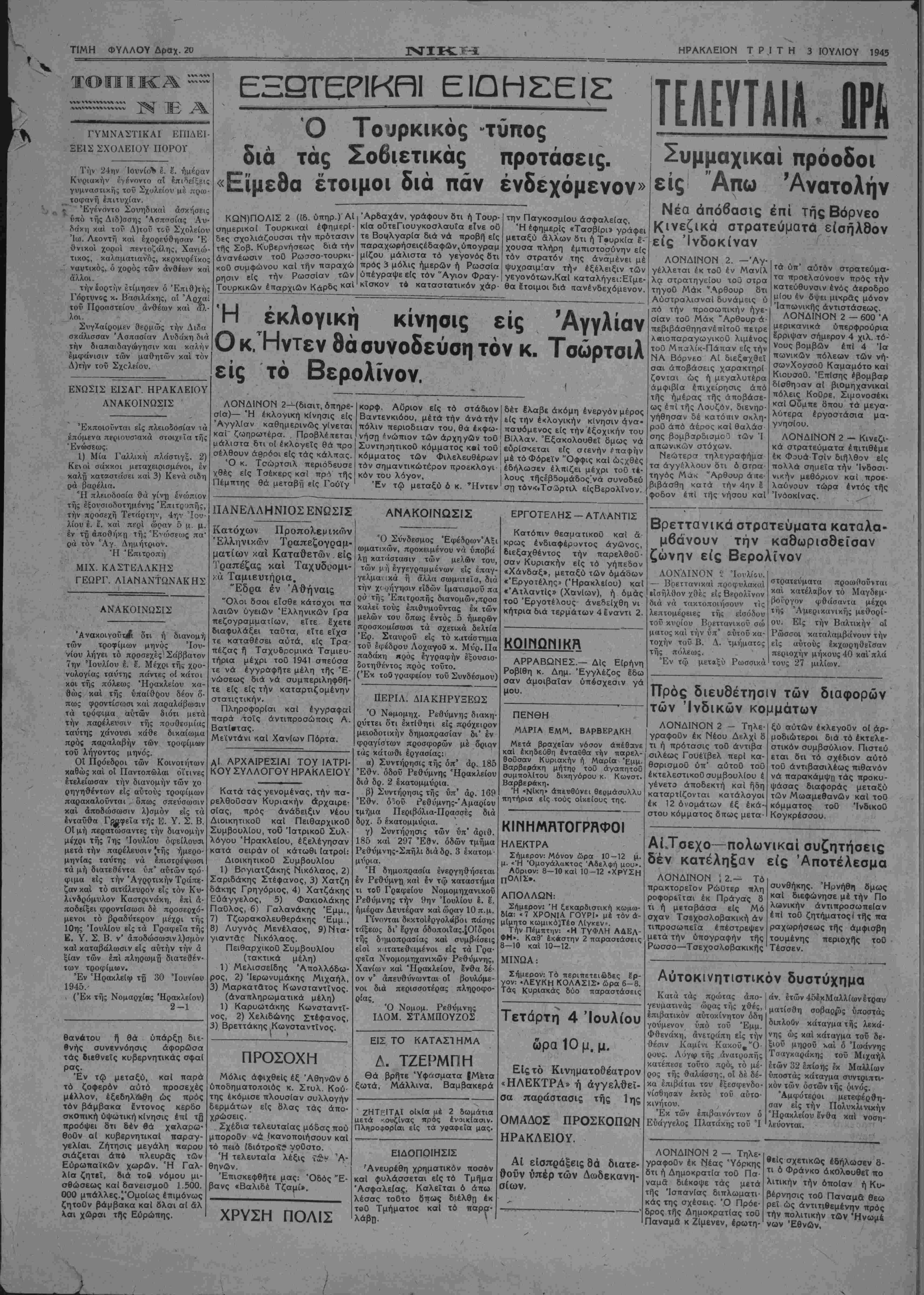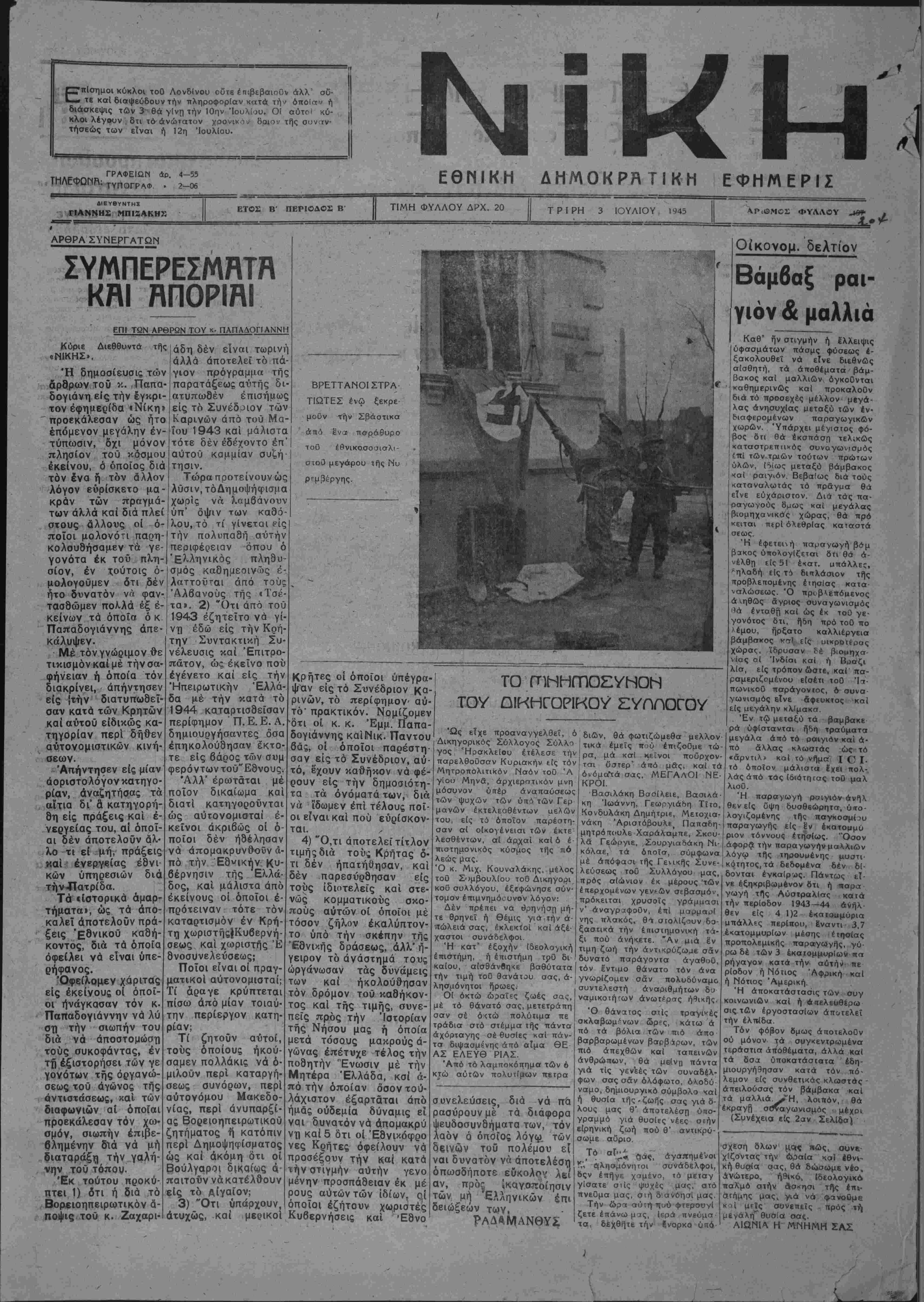 διάσκεψις τ<2ιν 3 θά γίνη την ΙΟην Ιουλίου. Οί αύτοι κύ¬ κλοι λέγουν δτι τό-ανώτατον χρονικ ι: δριον τής συν τν- τήσεώς των είναι ή 12η Ιουλίου. τι . ΓΡΑΦΕΙΩΝ άρ. ΤΗΛΕΦΩΜΒ: ΤΥΠΟΓΡΑΦ . 4-55 2—06 ΕΘΠΙ ΚΗ ΔΗΜΟΚΡΗΤ Ι κ Η Ε ΦΗΜ Ε ΡΙΣ ΔΙΕΥΘΥΝΤΗΣ γιάννης; μπιζακηχ ΕΤΟΣ Β' ΠΕΡΙΟΔΟΣ Β ΤΙΜΗ ΦΥΛΛΟΥ ΔΡΧ . 20 Τ Ρ Ι ΡΗ 3 ΙΟΥΛΙΟΥ 1945 Σ ΦΥΛΛΟΥ Λ9¥· Λ < ι ΑΡΘΡΑ ΣΥΝΕΡΓΑΤΩΝ ΣΥΜΠΕΡΕΣΜπΤΛ ΚπΙ ηΠΟΡΙΗΙ ΕΠΙ ΤΩΝ ΑΡΘΡΩΝ ΤΟΥ κ- ΠΑΠΑΑΟΠΑΝΝΗ Κύριε Διεθθυντά τής «ΝΙΚΗΣ», άδη δέν είναι τωρινή άλλά αποτελεί τό πά- Ή δημοσίευσις των Ιγιον πρόγραμμα τής άρθρων τοΰ κ. ,Παπα- δογιάνη είς την Ιγκρι- %ον εφημερίδα «Νίκη» προεκάλεσαν ώς ήτο επόμενον μεγάλην εν¬ τύπωσιν, δχι μόνον πλησίον τοΰ κάσμου έκείνου, ό οποίος διά τόν ένα ή τόν άλλον λόγον ευρίσκετο μα¬ κράν των πραγμά- των άλλά καΐ διά πλεί στους άλλους οί ό- ποΐοι μολονότι παρη- κολουδήσαμεν τα γε- γονότα έκ τού πλη- παρατάξεως αυτής δι- ατυπωθέν επισήμως είς τό Συνέδοιον των Καρινών άπό τού Μα- ΐου 1943 καί μάλιστα τότε δέν έδέχοντο επ1 αυτού καμμίαν συζή τησιν. Τώρα προτείνουν ώς λΰσιν, τόΔημοψήφισμα χωρίς νά λαμβάνουν ύπ' όψιν των καθό- λου, τό τί γίνεται ?ίς την πολυπαδή αυτήν ΒΡΕΤΤΑΝΟΙΣΤΡΑ ΤΙΩΤΕΣ ένώ ξεκρε μοθν την Σβάοτικα έν3 πσράθυρο έθνικοσοσιαλι- στού μεγάρου τής Νυ ρεμβέργης. τοϋ περιφέρειαν Ελληνικάς όπου ό πληδυ η οίον, έν τ,ούτοις ό-1 σμός καθημεοινώς έ μολογοΰμεν ότι β ήτο δυνατόν νά φαν- τασδώμεν πολλά έξ έ- κείνων τα όποίσ ό κ Παπαδογιάννης άπε· κάλυψεν· Μί τόνγνώριμον θε τικισμόνκαίμέ την σα¬ φήνειαν ή όποία τόν διακρίνει, απήντησεν είς |τήν διατυπωδεΐ σαν κατά των Κρητών καί αυτού ειδικώς κα¬ τηγορίαν περΐ δήθεν αύτονομιστικών κινή- σεων. "Απήντησεν είς μίαν άοριστολόγον κατηγο¬ ρίαν, άναζητήσας τα αϊτια δι* ά κατηγορή- δη είς πράξεις καί ε¬ νεργείας τού, αί οποί¬ αι δέν άποτελοϋν άλ λο τι εί μή, πράξεις καί ενεργείας έδνι κων ύπηρεσιών διά τήν<ίΤατρίδα. Τα «Ιστορικά άμαρ- τήματα», ώς τα άπο- καλεΐ άποτελοϋν πρά¬ ξεις Έθνικοΰ καδή- κοντος, διά τα όποία όφείλει νά είναι υπε- ρήφανος. "Οφείλομεν χάριτος είς έκείνους οί όποί¬ οι ηνάγκασαν τόν κ. Παπαδογιάννην νά λύ ση την σιωπήν τού διά νά άποστομώση τούς συκοφάντας, έν τή έξιστορήσει των νέ γονότων τής οργανώ¬ σεως τού αγώνος τής άντιστάσεως, καί των διαφωνιών αί οποίαι προεκάλεσαν τόν χο>