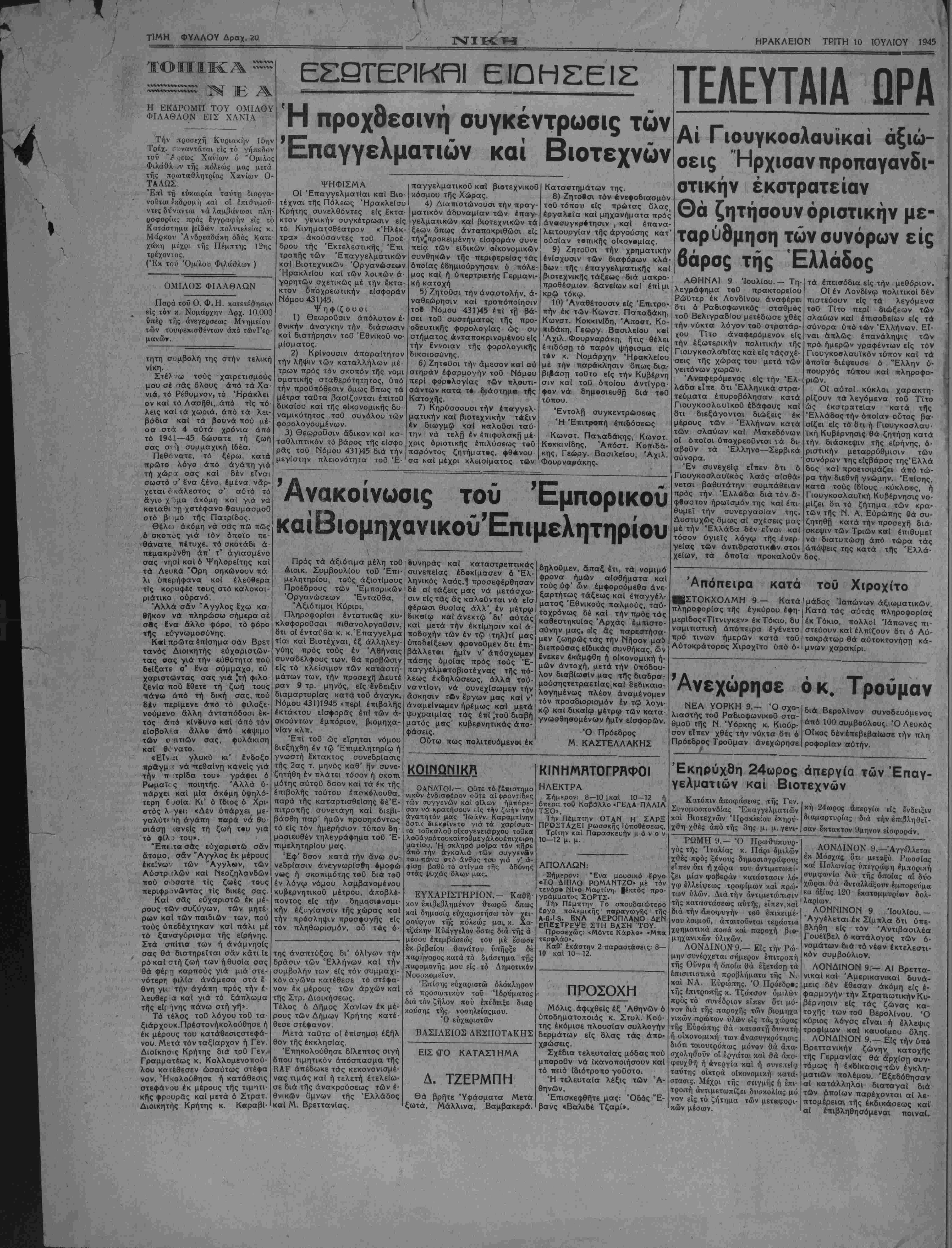 ΤΡ1ΤΗ 10 ΙΟΥΛΙΟΥ 1945