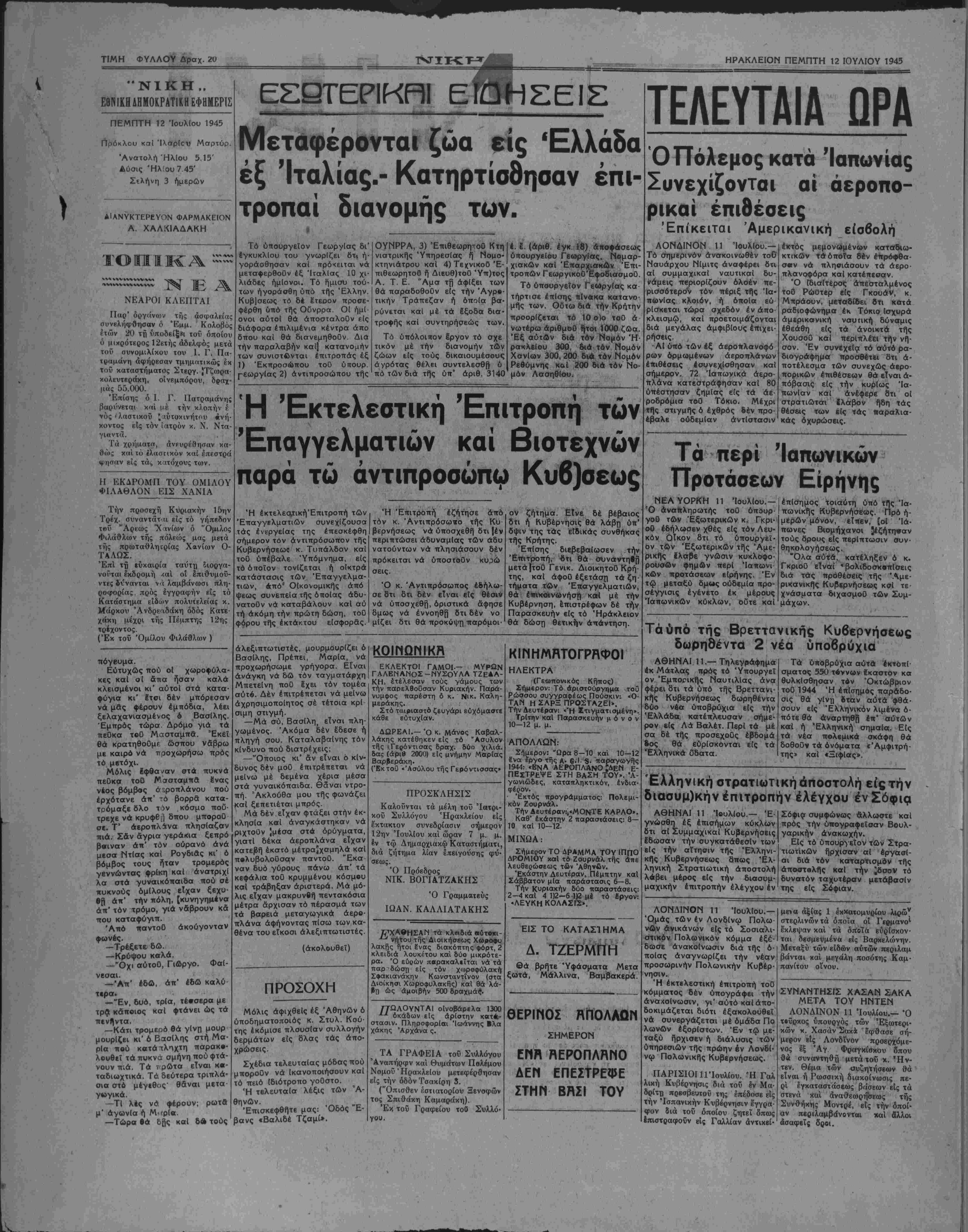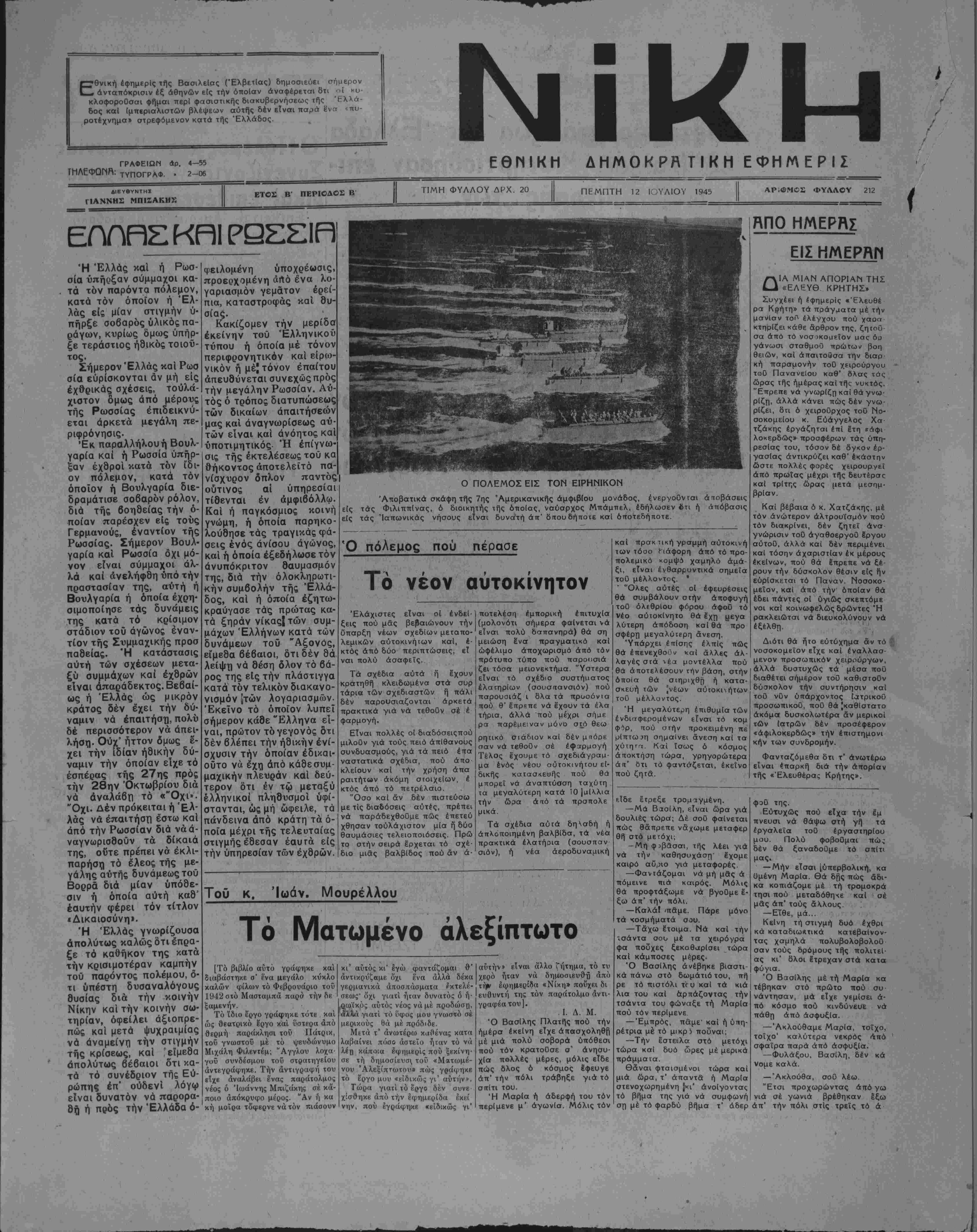 δος καί (μπβριαλιστών βλέψεων αυτής δέν είναι παρά ε'να '<πυ- ροτέχνημα» στρεφόμενον κατά τής "Ελλάδος. , ΓΡΑΦΕΙΩΝ άρ. 4—55 ΤγΙΛΕΦΩΝΚ: τυπογραφ · 2—06 ΕΘΜΙΚΗ ΔΗΜΟΚΡΗ ΤΙΚΗ ΕΦΗ/νΕΡΙΣ ΔΙΕΥΘΥΝΤΗΙ ΓΙΑΝΝΗΣ ΜΠΙΖΑΚΗϊ; ΕΤΟΣ Β' ΠΕΡΙΟΔΟΣ Β ΤΙΜΗ ΦΥΛΛΟΥ ΔΡΧ. 20 ΠΕΜΠΤΗ 12 ΙΟΥΛΙΟΥ 1945 ΑΡ.ΟΜΟΣ ΦΥΛΛΟΥ 212 κριι Ή Ελλάς καί ή Ρωσ¬ σία υπήρξαν σύμμαχοι κα¬ τά τόν παρόντα πόλεμον, κατά τόν οποίον ή Ελ¬ λάς είς μίαν στιγμήν υ¬ πήρξε σοβαρός ύλικόςπα- ράγων, κυρίως δμως υπήρ¬ ξε τεράστιος ήθικός τοιού¬ τος. Σήμερον Ελλάς καΐ Ρωσ σία ευρίσκονται άν μή είς έχθρικάς σχέσεις, τουλά¬ χιστον δμως άπό μέρους τής Ρωσσίας έπιδεικνύ- εται άρκετά μεγάλη πε- ριφρόνησις. Έκ παραλλήλουή Βουλ¬ γαρία καΐ ή Ρωσσία υπήρ¬ ξαν έχθροί κατά τόν ίδι¬ ον πόλεμον, κατά τόν οποίον ή Βουλγαρία διε- δραμάτισε σοβαρόν ρόλον, διά τής βοηθείας την ο¬ ποίαν παρέσχεν είς τούς Γερμανούς, εναντίον τής Ρωσσίας. Σήμερον Βουλ¬ γαρία καί Ρωσσία όχι μό¬ νον είναι συμμαχοι άλ¬ λά καΐ άνελήφθη υπό την προστασίαν της, αυτή ή Βουλγαρία ή όποία έχρη- σιμοποίησε τάς δυνάμεις της κατά τό κρίσιμον στάδιον τού αγώνος εναν¬ τίον τής Συμμαχικής προσ παθείας. Ή κατάστασις αυτή των σχέσεων μετα- ξύ συμμάχων καΐ έχθρών είναι άπαράδεκτος. Βεβαί¬ ως ή Ελλάς ώς μικρόν κράτος δέν έχει την δύ¬ ναμιν νά έπαιτήση, πολύ δέ περισσότερον νά απει¬ λήση. Ούχ' ήττον όμως ε- χει την ίδιαν ηθικήν δύ¬ ναμιν την οποίαν εΐχε τό εσπέρας τής 27ης πρός την 28ην Όκτωβρίου διά νά αναλάβη τό «"Οχι». "Οχι. Δέν πρόκειται ή "Ελ¬ λάς νά έπαιτήση έστω καΐ άπό την Ρωσσίαν διά νάά- ναγνωρισθουν τα δίκαια της, οθτε πρέπει νσ έκλι- παρήση τό έλεος τής με- γάλης αυτής δυνάμεως τού Βορρά διά μίαν υπόθε¬ σιν ή όποία αυτή καθ' εαυτήν φέρει τόν τίτλον «Δικαιοσύνηι. Ή Ελλάς γνωρίζουσα απολύτως καλώς δτι έπρα¬ ξε τό καθήκον της κατά την κρισιμοτέραν καμπήν τοΰ παρόντος πολέμου, ό¬ τι υπέστη δυσαναλόγους Θυσίας διά την κοινήν Νίκην καί την κοινήν σω¬ τηρίαν, όφείλει άξιοπρε- πώς καΐ μετά ψυχραιμίας νά αναμείνη την στιγμήν τής κρίσεως, καΐ , είμεθα απολύτως βεβαιοί δτι κα¬ τά τό συνέδριον τής Εύ- ρώπης έπ' ούδενί λόγω είναι δυνατόν νά παρορα- θή ή πρός την Έλλάδα ό- φειλομένη υποχρέωσις, προερχομένη άπό έ'να λο¬ γαριασμόν γεμάτον έρεί- πια, καταστροφάς καί θυ¬ σίας. Κακίζομεν την μερίδα εκείνην τού Έλληνικού τύπου ή όποία μέ τόνον περιφρονητικόν καΐ είρω- νικόν ή μέ" τόνον έπαίτου άπευθύνεται συνεχώςπρός την μεγάλην Ρωσσίαν. Αύ- τός ό τρόπος διατυπώσεως των δικαίων άπαιτήσεών μας καί άναγνωρίσεως αυ¬ τών είναι καΐ άνόητος καί ύποτιμητικός Ή έπίγνω σις τής εκτελέσεως τού κα θήκοντος άποτελείτό πα- νίσχυρον δπλον παντός'ι ούτινος αί υπηρεσίαι τίθενται έν άμφιβόλλω. Καί ή παγκόσμιος κοινή γνώμη, ή όποία παρηκο¬ λούθησε τάς τραγικάς φά- σεις ενός άνίσου αγώνος, καί ή όποία εξεδήλωσε τόν άνυπόκριτον θαυμασμόν της, διά την ολοκληρωτι¬ κήν συμβολήν τής Ελλά¬ δος, καΐ ή όποία έζητω- κραύγασε τάς πρώτας κα¬ τά ξηράν νίκαςΐ των συμ¬ μάχων Έλλήνων κατά των δυνάμεων τοϋ Άξονος, είμεθα βεβαιοί, δτι δέν 8ά λείψη νά θέση όλον τό 6ά- ρος της είς την πλάστιγγα κατά τόν τελικόν διακανο¬ νισμόν [των λογαριασμών. Έκεΐνο τό όποΓον λυπεΐ σήμερον κάθε "Ελληνα εί¬ ναι, πρώτον τόγεγονός δτι δέν βλέπει την ηθικήν ενί¬ σχυσιν την οποίαν έδικαι- οΰτο νά έχη άπό κάδεσυμ- μαχικήν πλευρόν καΐ δεύ¬ τερον δτι έν τφ μεταξύ έλληνικοί πληθυσμοί ύφί- στανται, ώς μή ώφειλε, τα πάνδεινα άπό κράτη τα ό¬ ποία μέχρι τής τελευταί