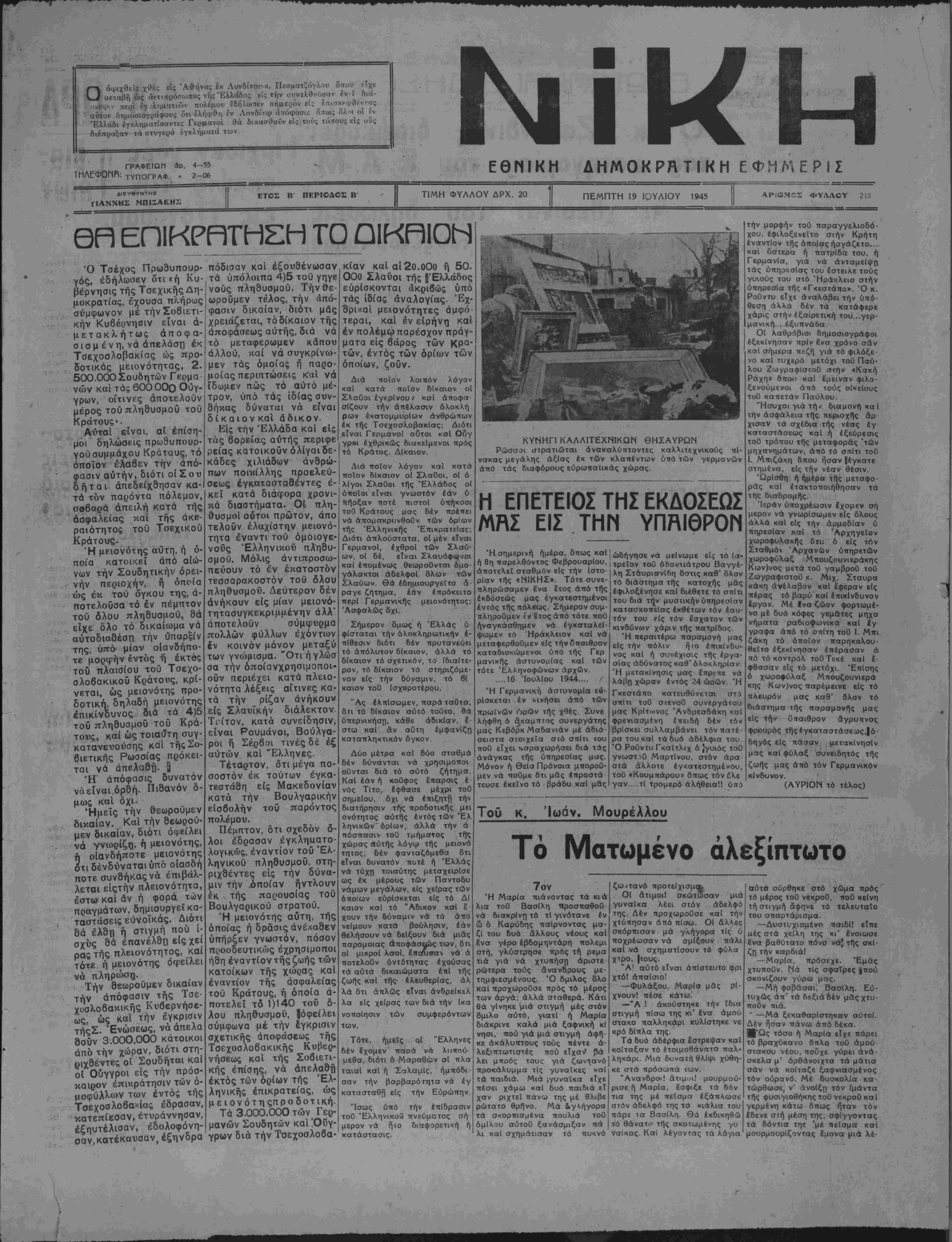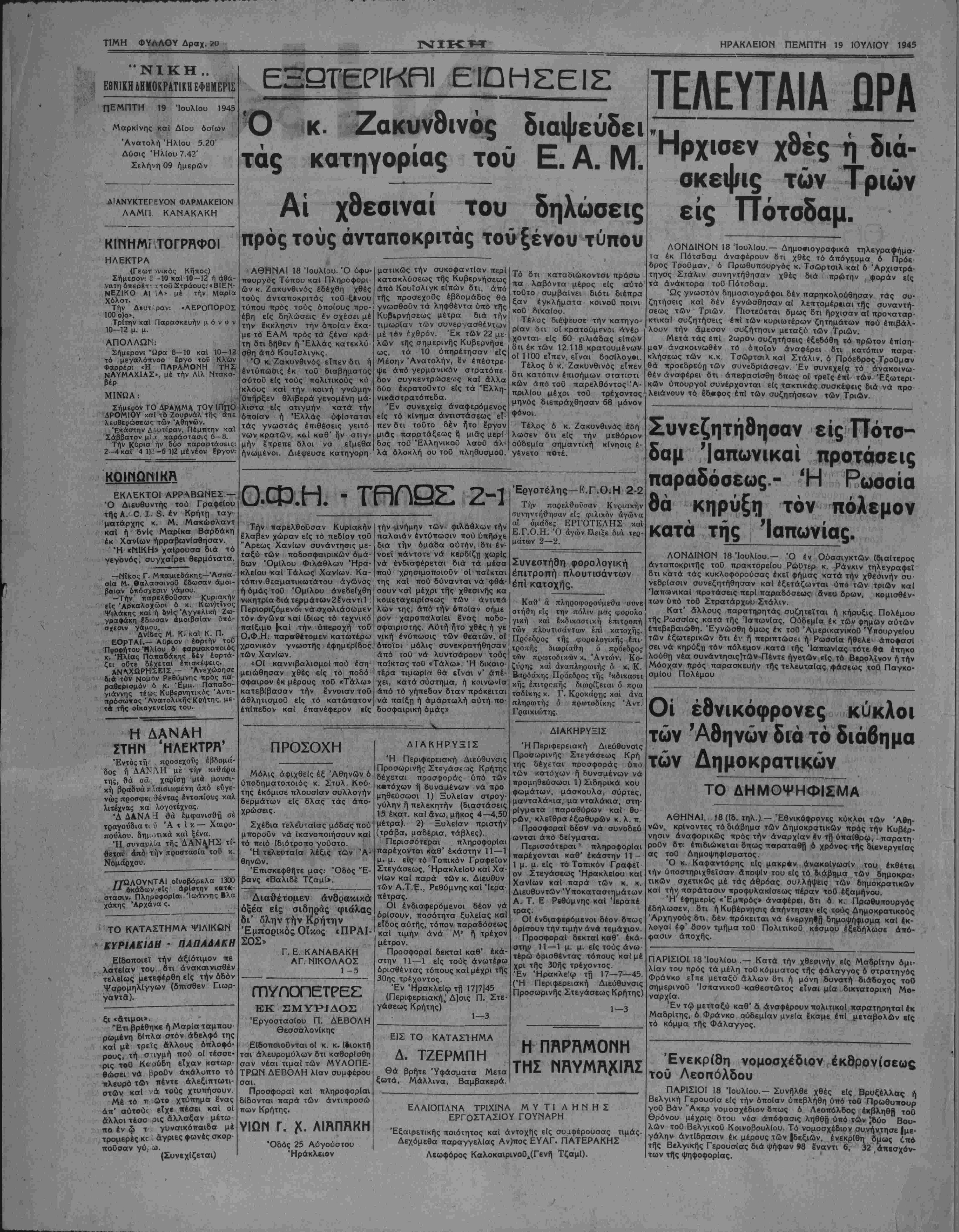 ΠΕΜΠΤΗ 19 ΙΟΥΛΙΟΥ 1945