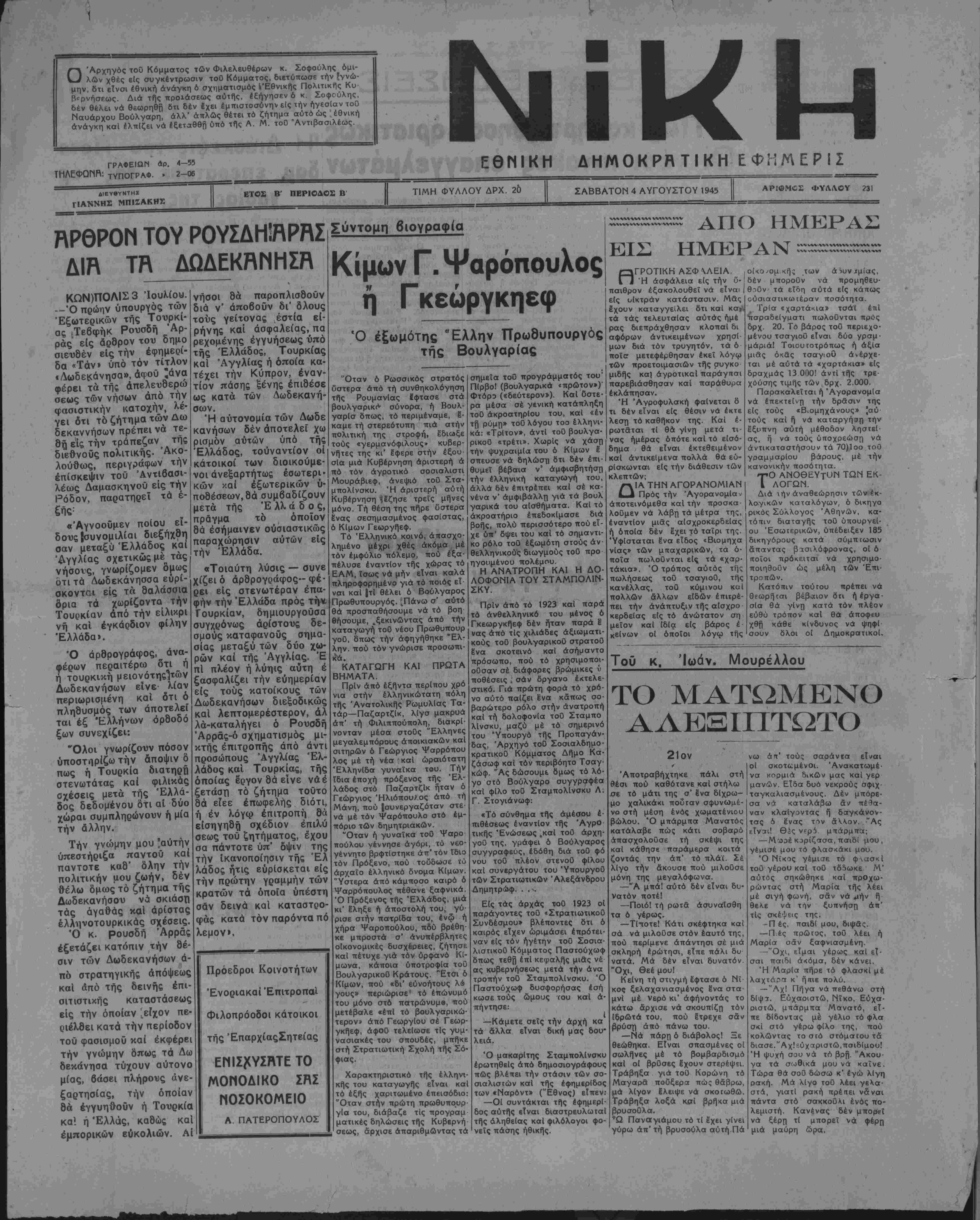 ΣΑΒΒΑΤΟΝ 4 ΑΥΓΟΥΣΤΟΥ 1945