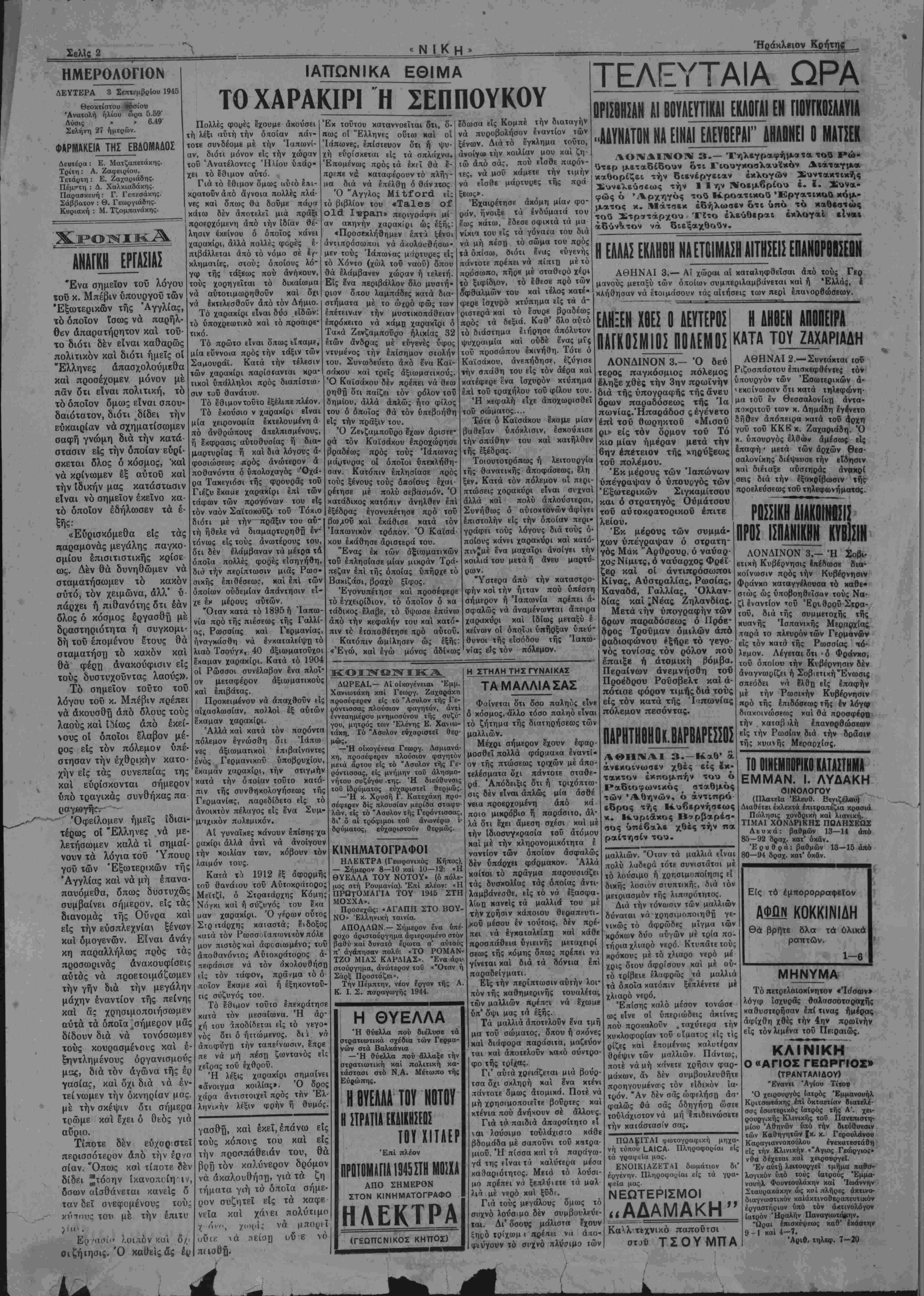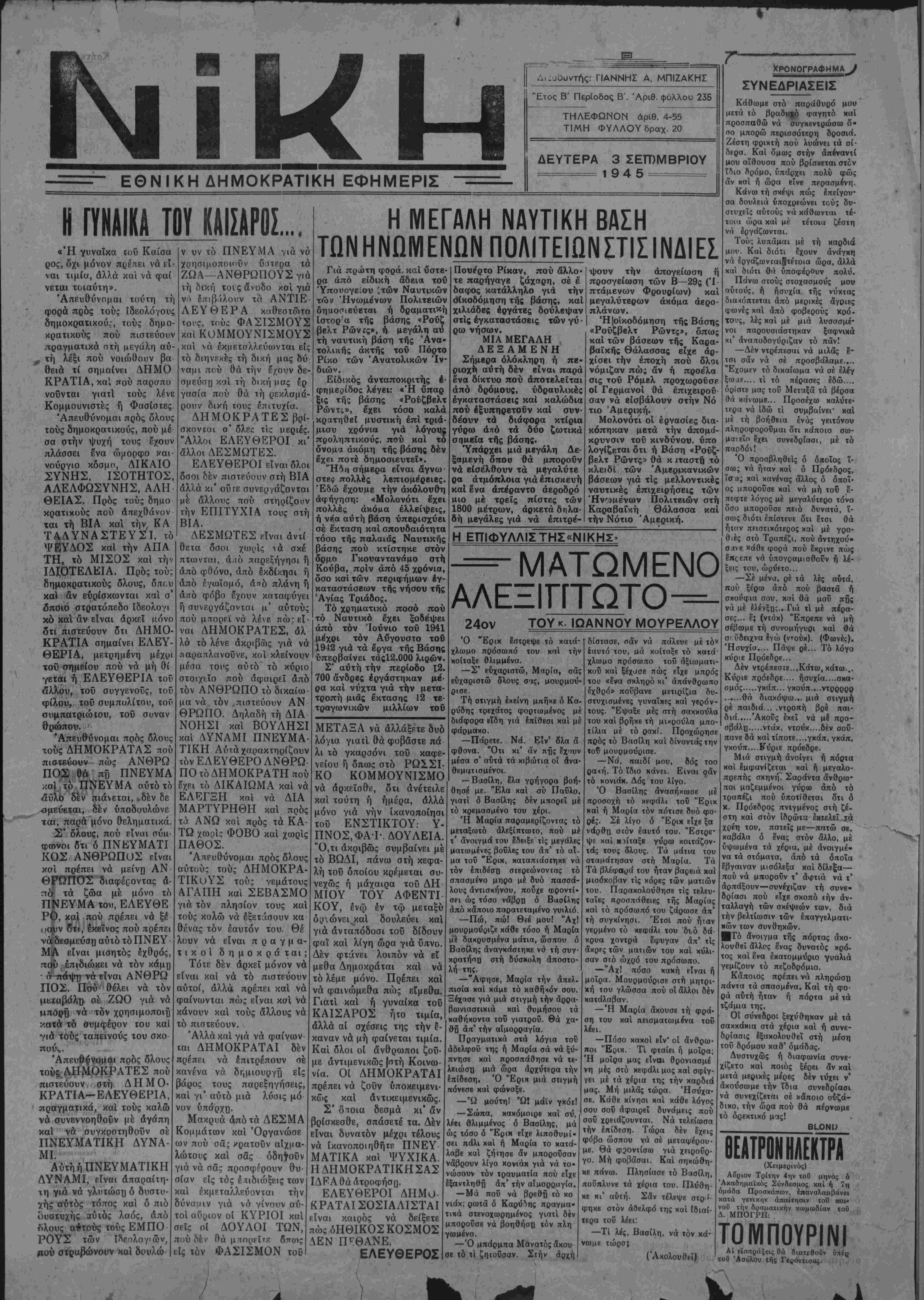<5τι πιστεύουν δτι ΔΗΜΟ- ΚΡΑΤΙΑ σημαίνει ΕΛΕΥ¬ ΘΕΡΙΑ, μετρημένη μέχοι τοΰ σημείου πού νά μή Θί γεται ή ΕΛΕΥΘΕΡΙΑ τοΐ δλλου, τοΰ συγγενοΰς, τού φίλου, τοϋ συμπολίτου, τοΰ συμπατριοοΐου, τοϋ συναν θρώπου. Άπευθύνομαι πρός δλους τούς ΔΗΜΟΚΡΑΤΑΣ πού πιστεύουν πως ΑΝΘΡΩ ΠΟ_ θά πή ΠΝΕΥΜΑ ,ιαΐ τό ΠΝΕΥΜΑ αύτδτό ν υν τό ΠΝΕΥΜΑ ιά νσ χρησιμοποιών ΰΐτερα χά ΖΩΑ—ΑΝΘΡΩΠΟΥΣγ.ά τή δική τοις δνοδο καί γιά ν.» έπιβάλουν τα ΑΝΤΙΕ ΛΕΥΘΕΡΑ καθεσχώτα τους, τού; ΦΑΣΙΣΜΟΥΣ καί ΚυΜΜΟΥΝΙΣΜΟΥΣ καί χά έκμεχαλλεύαινται είς τό διηνρκές χή δική μας δύ ναμι πού θά χήν εχουν δε- σμεύσϊ) καί τή δική μας έρ γασία πού θά τή ρεκλαμά- ρουν διχή τους έπιτυχία. ΔΗΜΟΚΡΑΤΕΣ βρί- ' λ πιάνεχαι, ,,δέν δέ δέ ν ΰποδουλώνε «ϋλο δέν σμεύκται, χαι, παρά μόνο θελημαΐικά. _' δλους, πού είναι συμ- φωνοι δτι ό ΠΝΕΥΜΑΤΙ ΚΟΣ ΑΝΘΡΩΠΟΣ είναι καί πρέπει νά μείνΐ) ΑΝ ΘΡΩΠΟΣ διαφέςοντας υ¬ πό· τα ζώα μέ μόνο τό ΠΝΕΥΜΑ τού, ΕΛΕΥΘΕ ΡΟ, καί πού πρέπει νά ξέ (ιο.υν δτι, έκεϊνος πού πρέπει νά δεσμεύστ) αΰτό τό ΠΝΕΥ ΜΑ είναι μισητός εχθράς -τού έπιδιώκει νά τόν κάμ η πάψχι νά είναι ΑΝΘΡΩ ΠΟΣ. Πού θέλει νά χον μεταβάλη σέ ΖΩΟ γιά νά μπορή νά τόν χρησιμοποιή κατά τό συμφέρον ΐου καί 7«ά τούς ταπεινούς τού σκο πού,,. Άπευθύνομαι πρός δλους τούς ΔΗΜΟΚΡΑΤΕΣ πού πιπτεύουν στή ΔΗΜΟ- ΚΡΑΤΙΑ-ΕΛΕΥΘΕΡΙΑ, πραγματικάς καί τούς καλώ νά συνεννοηθοΰν μέ Λγαπη καί νά συνκροτηθοΰν σέ ΠΝΕΥΜΑΤΙΚΗ ΔΥΝΑ- ΜΙ. Αυτή ή ΠΝΕΥΜΑΤΙΚΗ ΔΥΝΑΜΙ, είναι άπαραίτη- χη γιά νά γλυτώση δ δυστυ- χής αΰτός τόπος καί ό πιό δυστυχής αύιός λαός, άπό «Νλους α*τούς τούς ΕΜΠΟ ΡΟΥΣ των ίδεολογι όδ ν, μόν στραβώνουν καί δουλώ σ δλες τν^ μεριές. Άλλοι ΕΛΕΥΘΕΡΟΙ κι' άλλοι ΔΕΣΜΩΤΕΣ. ΕΛΕΥΘΕΡΟΙ είνα. δλοι δσοι δέν πιστεύουν στή ΒΙΑ άλλά κι' ου τε συνεργάζονται μέ άλλους πού στηρίζουν την ΕΠΙΤΥΧΙΑ τους στή ΒΙΑ. ΔΕΣΜΩΤΕΣ είναι άνχί θεχα δσοι χωρίς ν ά σκέ πχωνται, άιό παρεΕήγησι ή άπό φ9όνο, άπό έκδίκησι ή άπό εγωϊομό, άπό πλάνη ή άπό φόβο εχουν καταφύγει ή συνεργάζονχαι μ* αΰτούς πού μπορεΐ νά λένε πώ: εί¬ ναι ΔΗΜΟΚΡΑΤΕΣ, άλ λά χό λένε ακριβώς γιά νά ηαραπλανοϋνε, καί κλείνουν μέσα τονς αύτό τό κύριο στοιχεϊο πού άφαιρεΐ άπό τόν ΑΝΘΡΩΠΟ τό δικαίω μα νά χον ,πισχεύουν ΑΝ Η ΜΕΓΑΛΗ ΝΑΥΤΙΚΗ ΒΑΣΗ ΤΩΝΗΝΩΜΕΝΩΝ ΠΟΛΙΤΕΙΩΝΣΤΙΣΙΝΔΙΕΣ Γιά πρώτη φορά, καί ΰστβ· ρα άπό είδική αδεία τοΰ 'Υπουογείου ^τών Ναυτικών Πολιτβιών δραματική Ήνωμένων δημοσιβΰβται ή ΘΡΩΠΟ. ΝΟΗΣ1 Δηλαδή τή ΔΙΑ καί ΒΟΥΛΗΣΙ καί ΔΥΝΑΜΙ ΠΝΕΥΜΑ ΤΙΚΗ Αΰτάχαρακτηοίζουι χόνΕΛΕΥθΕΡΟΛΝΘΡΩ ΠΟχόΔΗΜΟΚΡΑΤΗπού εχει τό ΔΙΚΑΙΩΜΑ καί νά ΕΛΕΓΞΗ καί νά ΔΙΑ ΜΑΡΤΥΡΗΘΗ καί πρός τα ΑΝΩ καί πρός χά ΚΑ- ΤΩ χωρίς ΦΟΒΟ καί χωρίς ΠΑΘΟΣ. Άπρυθύνομαι πρός δλους αυτού; τούς ΔΗΜΟΚΡΑ- ΤΙΚυΥΣ τούς νεμάτους ΑΓΑΠΗ καί ΣΕΒΑΣΜΟ γιά τόν πλησίον τους καί τούς καλώ νά έξεχάσουν κα θένας χον έαυχόν τού. Θε λουν νά είναι π ρ α γ μ α- τικοί δημοκράται; Τόχε δέν άρκεϊ μόνον νά είναι καί νά τό πισχεύουν αύχοί, άλλά πρέπει καί νά φαίνωνχαι πώς είναι κσί νά κάνουν καί τούς δλλους νά χό πιστεύουν. Άλλά καί γιά νά φαίνων χαι ΔΗΜΟΚΡΑΤΑΙ δέν πρέπει νά έπιτρέπουν σέ κανένα νά δημιουργή είς βάρος τους παρεΕηγήσεις, καί γι' αύτό μιά λύσις μό νόν υπάρχη. Μακρνά άπό τα ΔΕΣΜΑ Κομμάτων καί Όργανώσε ών πού σά-χρατοϋν αίχμα- λώτους καί σδς όδηγΌϋν γιά νά σδς προσφρρουν θυ¬ σίαν είς τος έ/ιιδιώξεις των καί έκμεταλλεύονται την δύναμιν γιά νά γίνουν αύ¬ τοι αυριον οί ΚΥΡΙΟΙ καί σεΐς οί ΔΟΥΛΟΙ ΤΩΝ, πού δέν θά μπηρρϊτρ; δποκ ύς τόν ΦΑΣΙΣΜΟΝ τού ίστορ'α τής βάσης «Ροΰζ βελτ Ρώνίς», ή μεγάλη αύ τή ναυτική βάσ