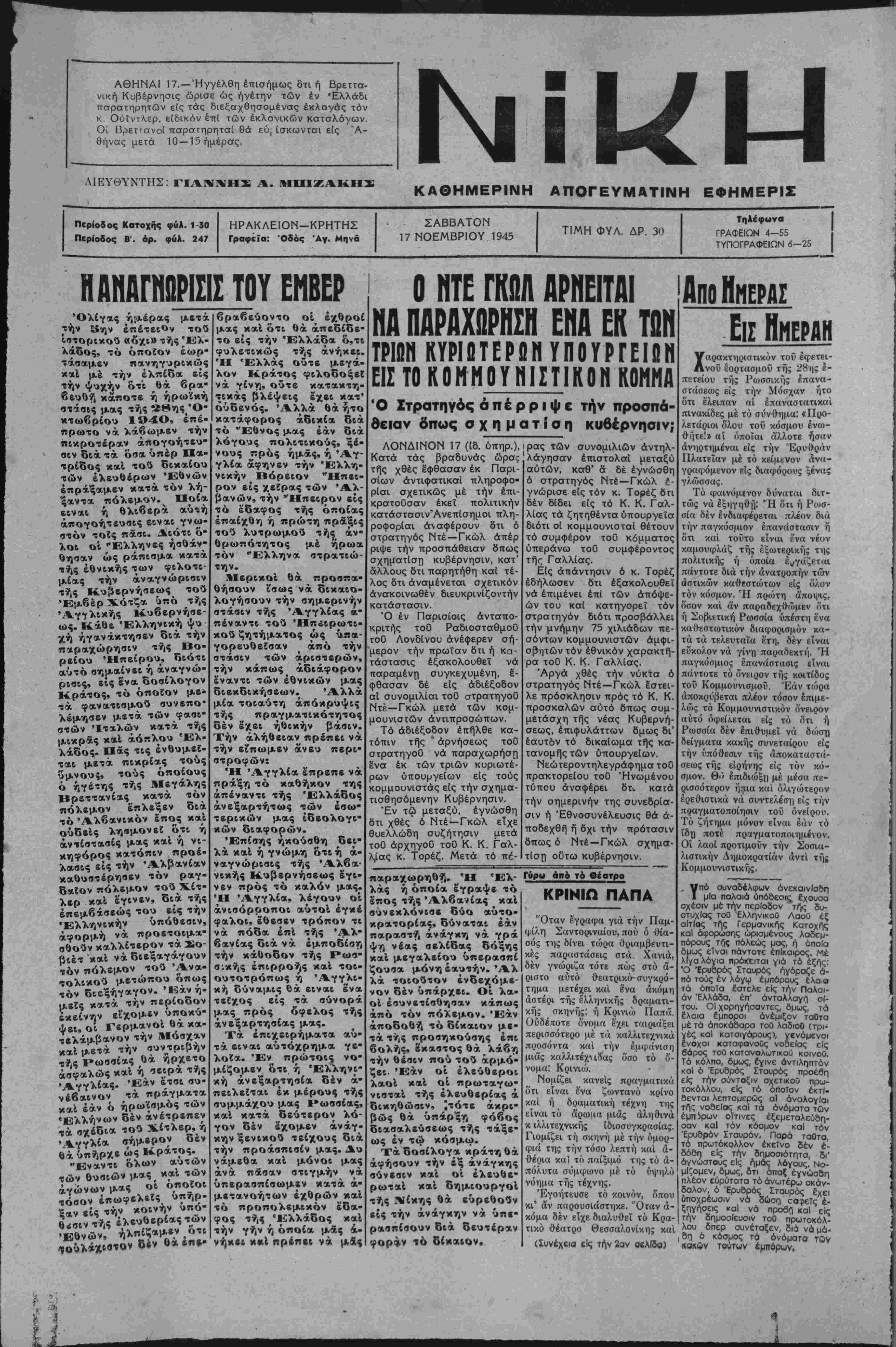 νική Κυβέρνησις ώρισε ώς ήγέτην τΟν έν Ελλάδι