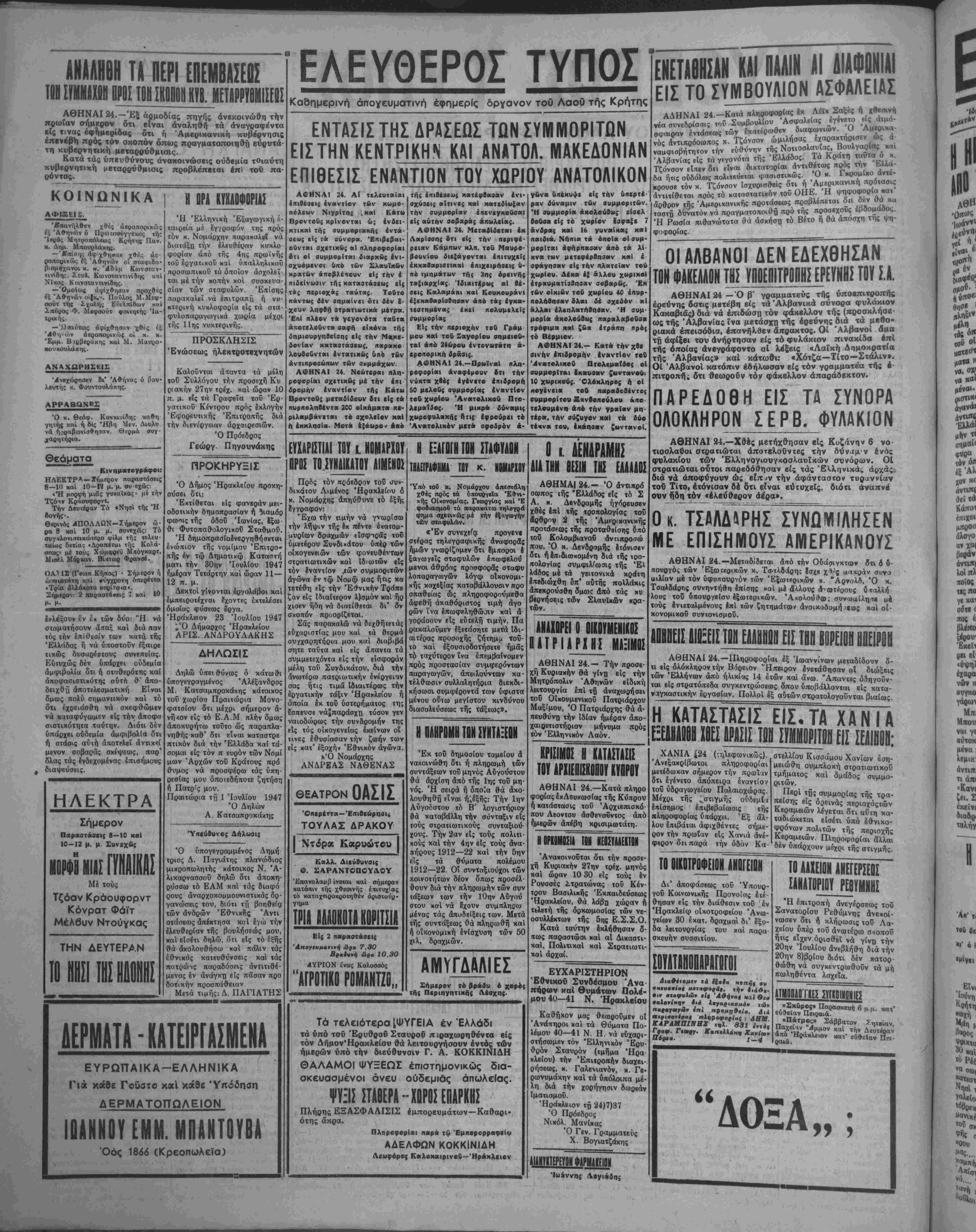 ΑΘΗΝΑΙ 24.—Ή επί τοΰίέφόσον οί σκοποί των δέν άντι