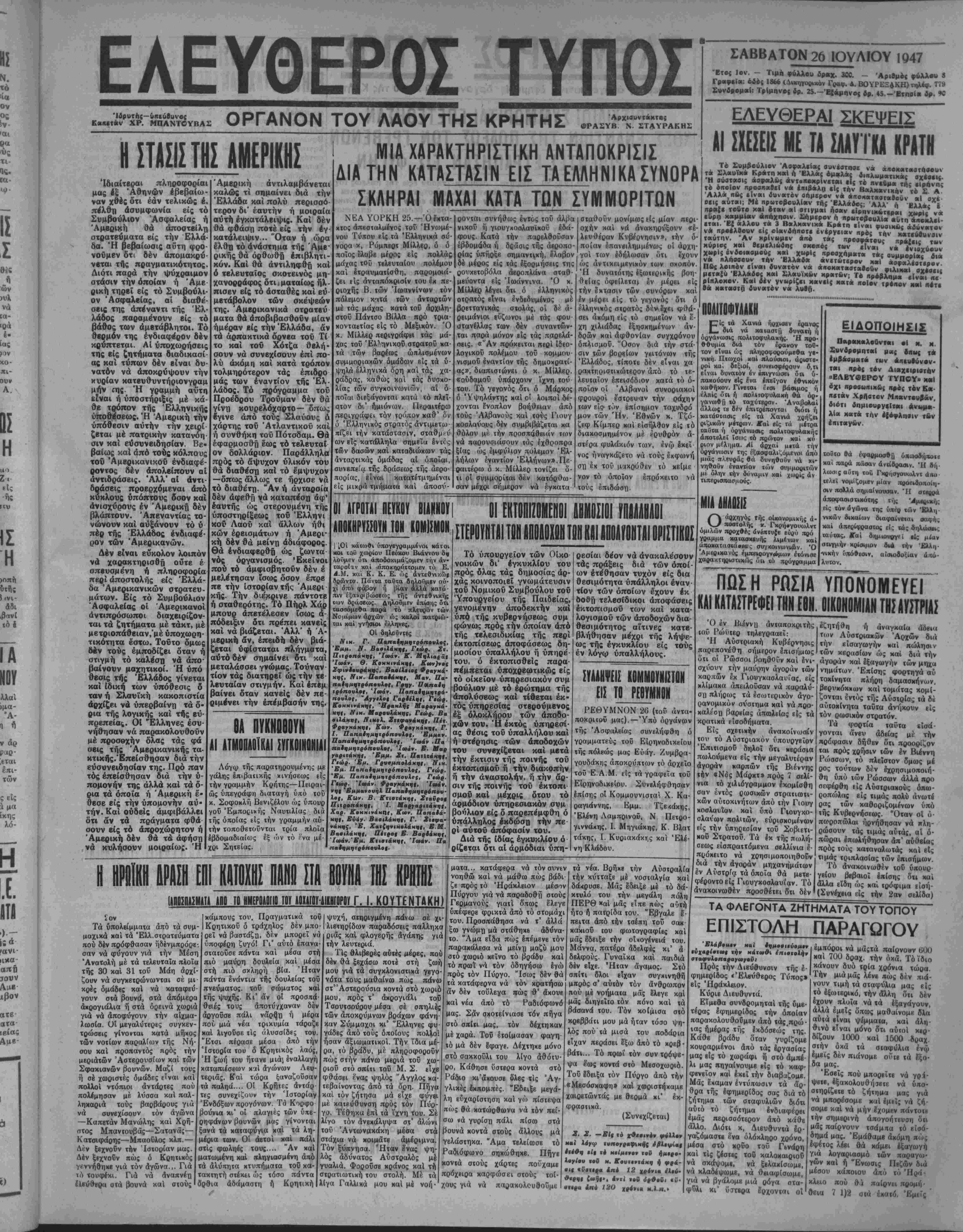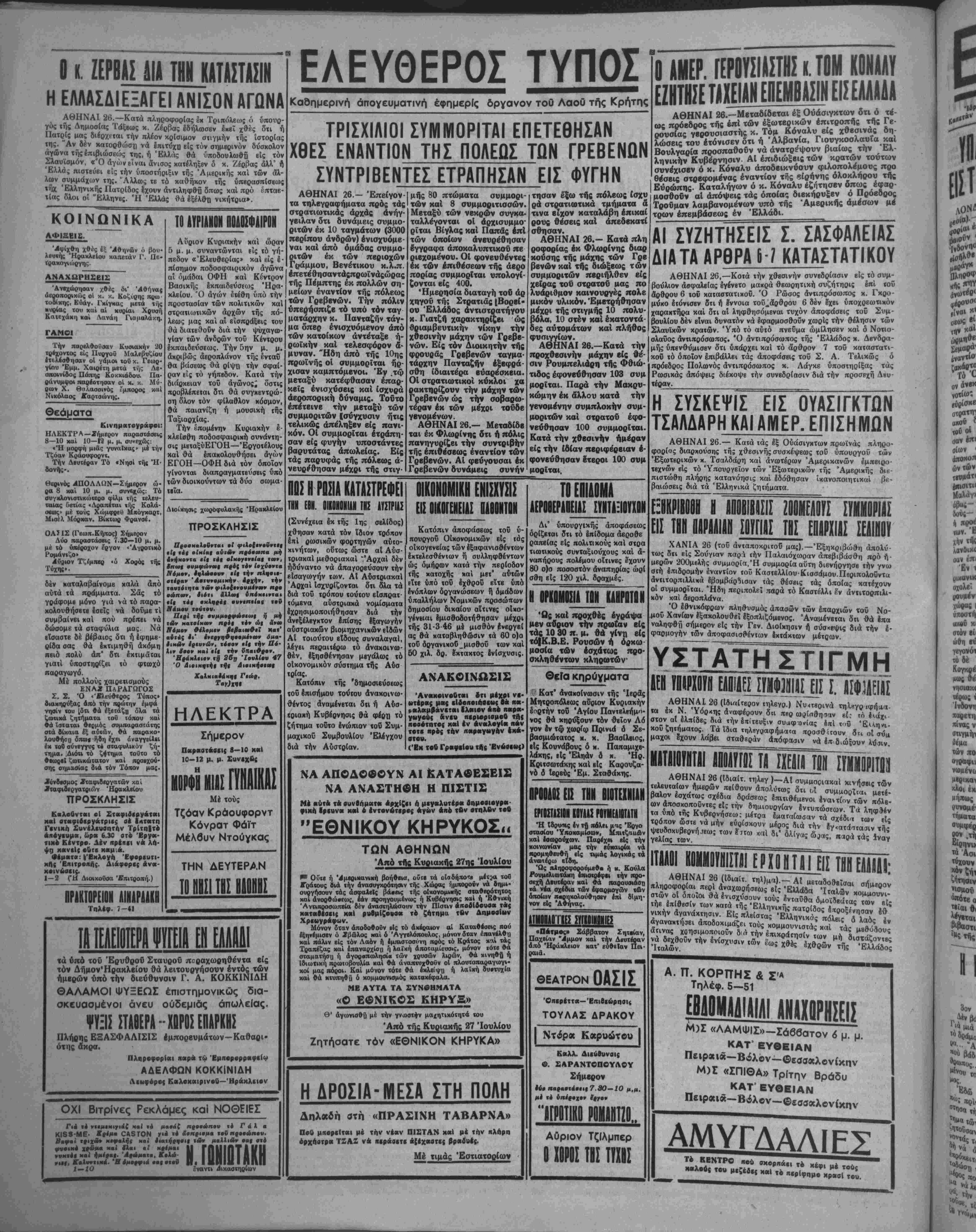 ΧΑΝΙΑ 26 (τού άνταποκριτοϋ μας).—Εξηκριβώθη απολύ¬