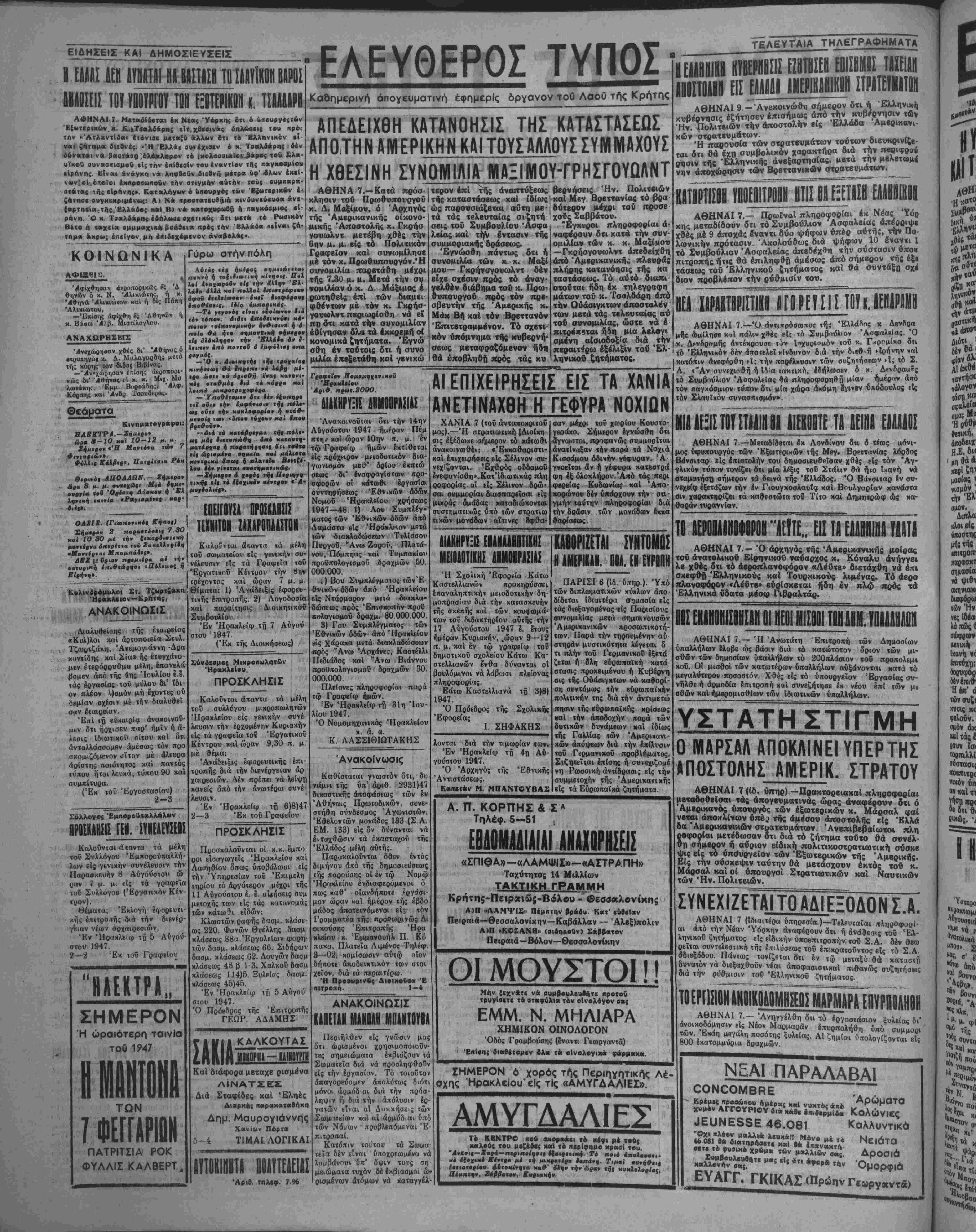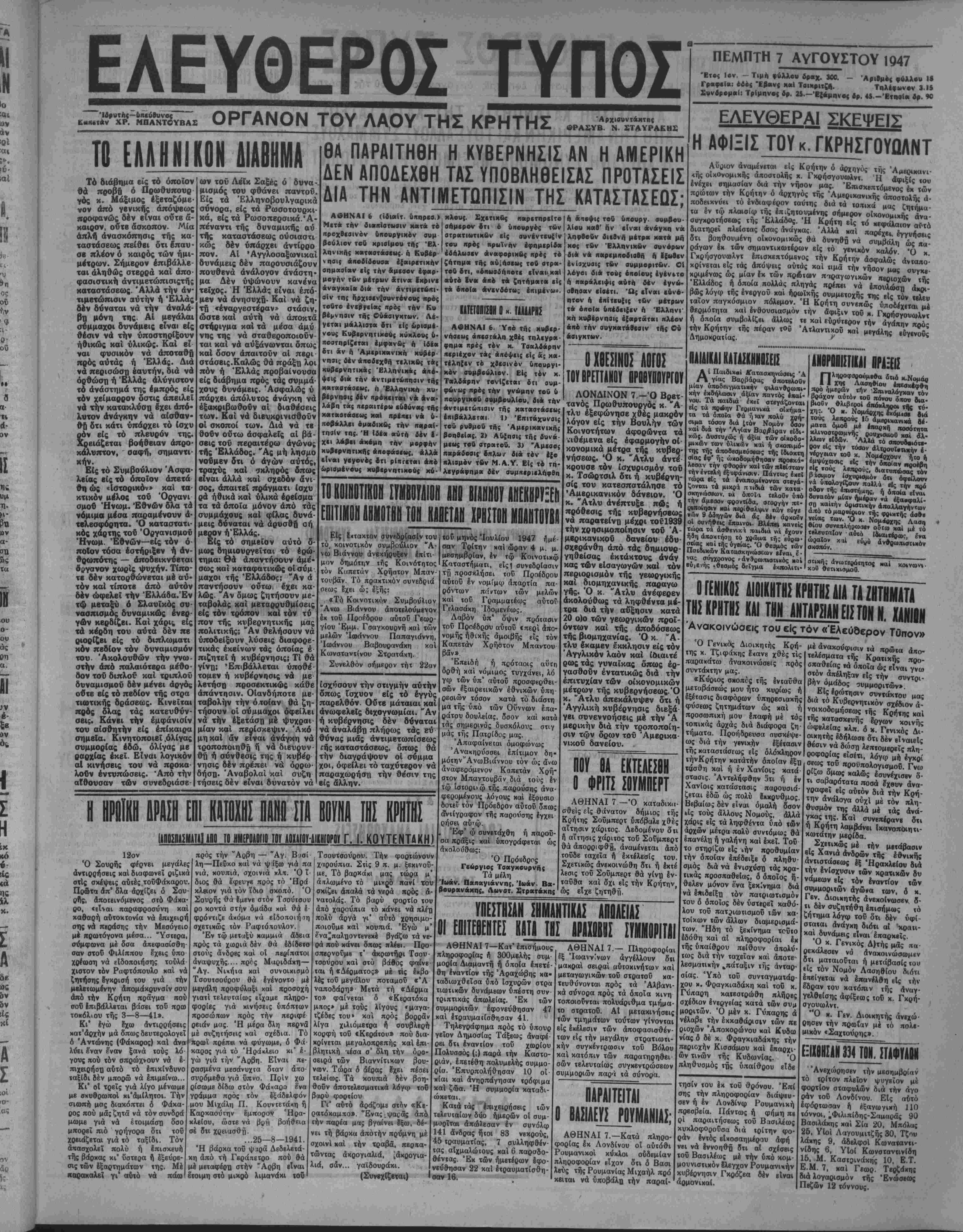 Έν Ήρακλείφ τή 4— Αύ-
