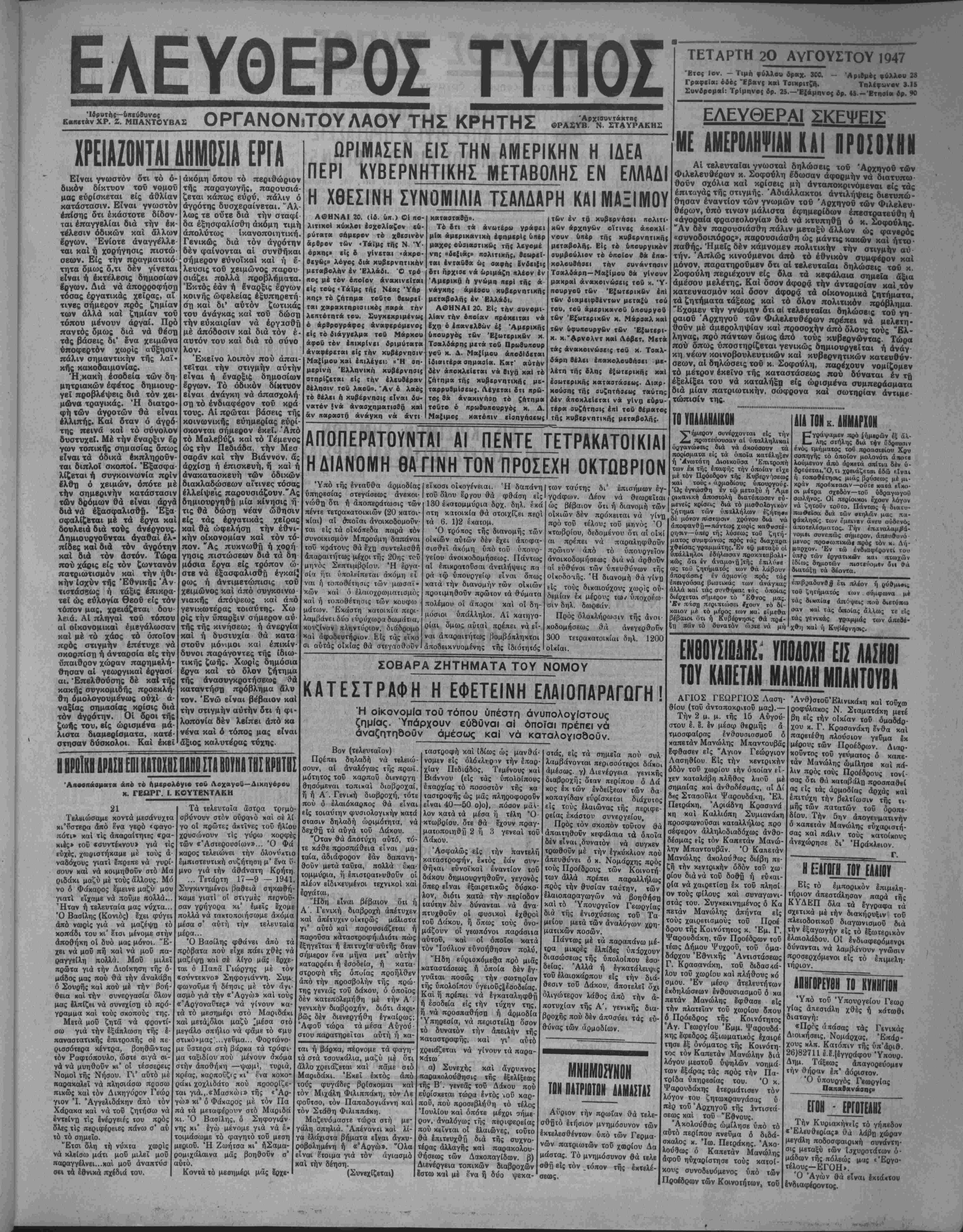 φίσταται». Ό κ. Τσαλδάρης προσέθεσϊν ότι δέν ύπάρχει ζήτη