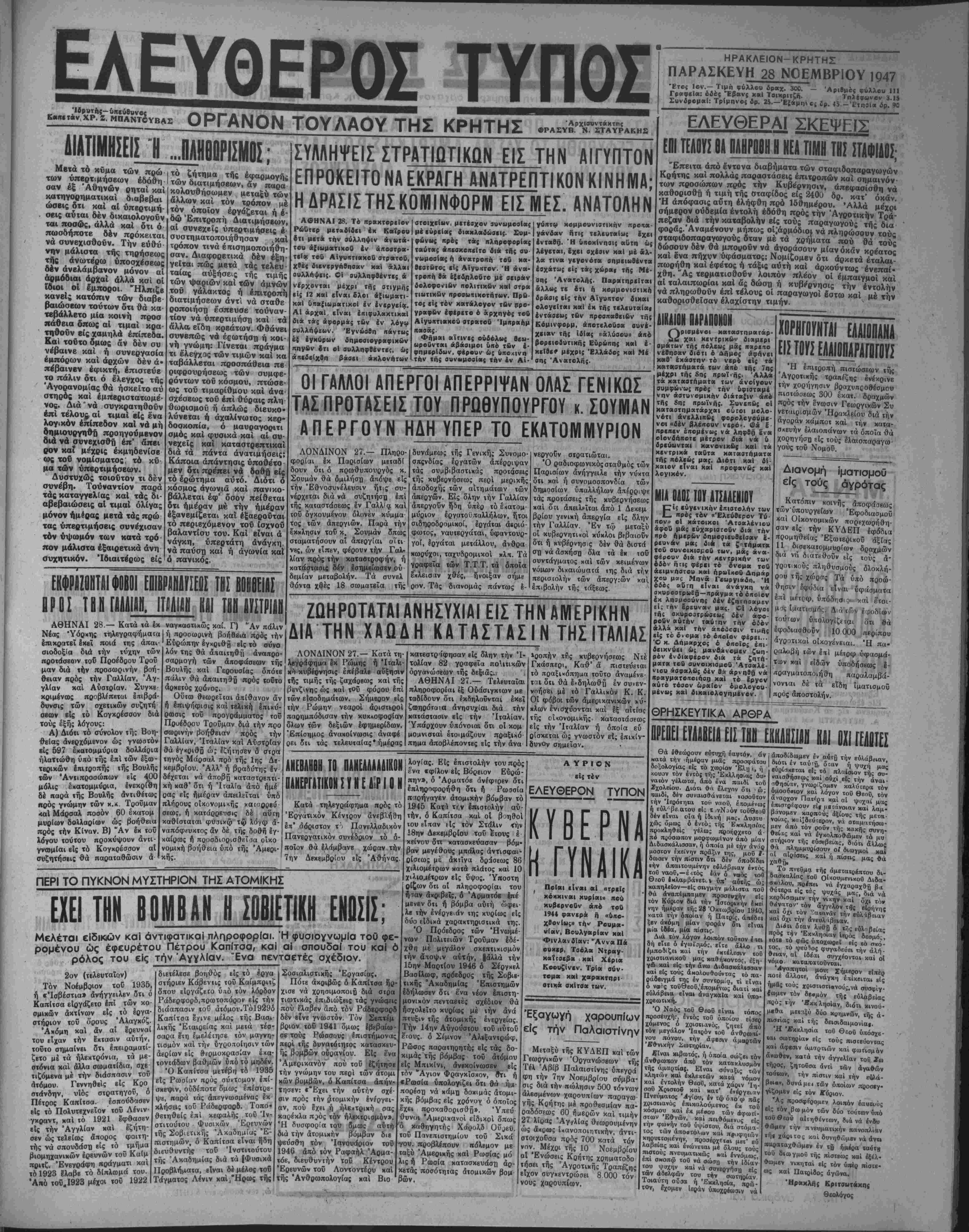 ΠΑΡΑΣΚΕΥΗ 28 ΝΟΕΜΒΡΙΟΥ 1947