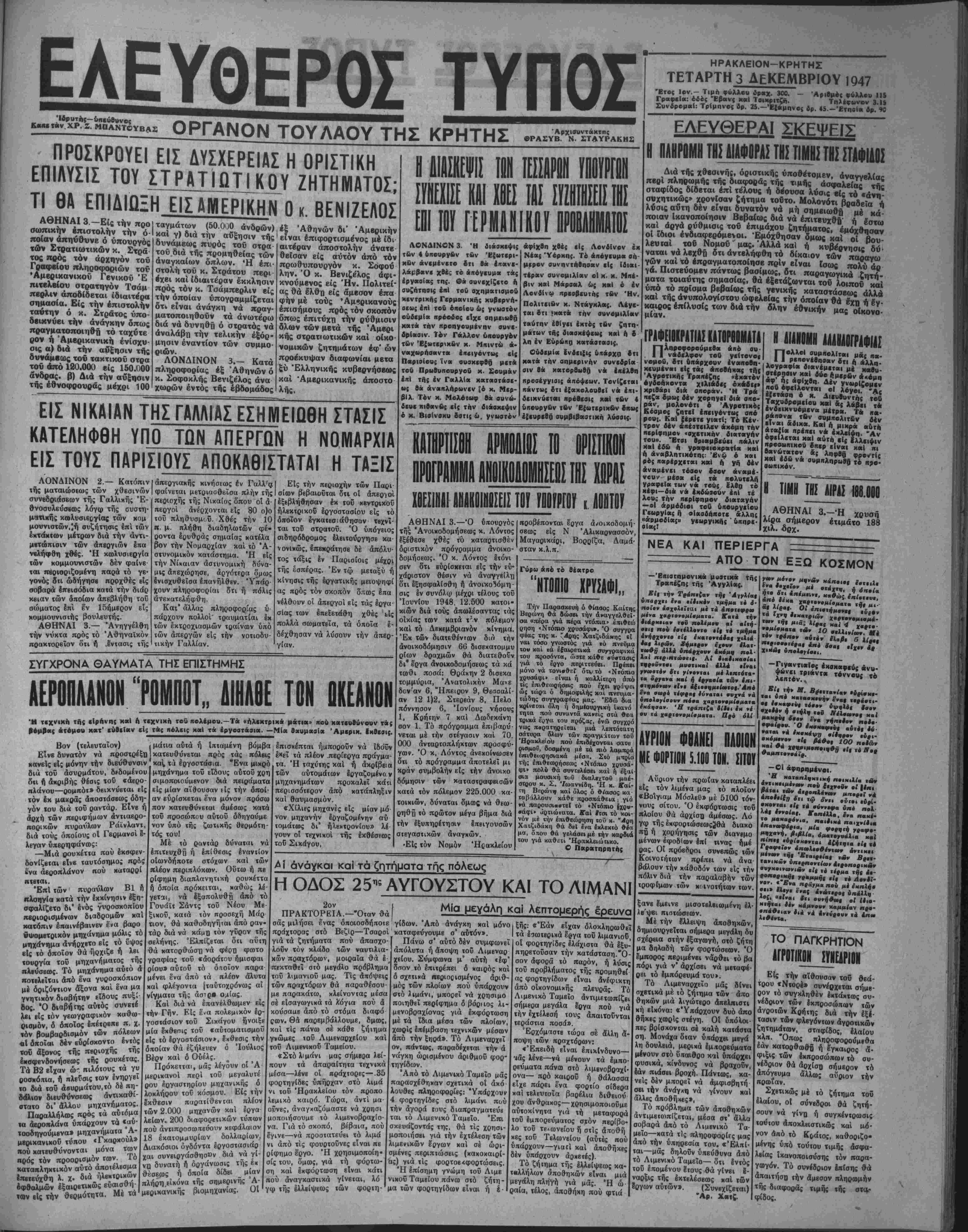 ΤΕΤΑΡΤΗ 3 ΔΕΚΕΜΒΡΙΟΥ 1947