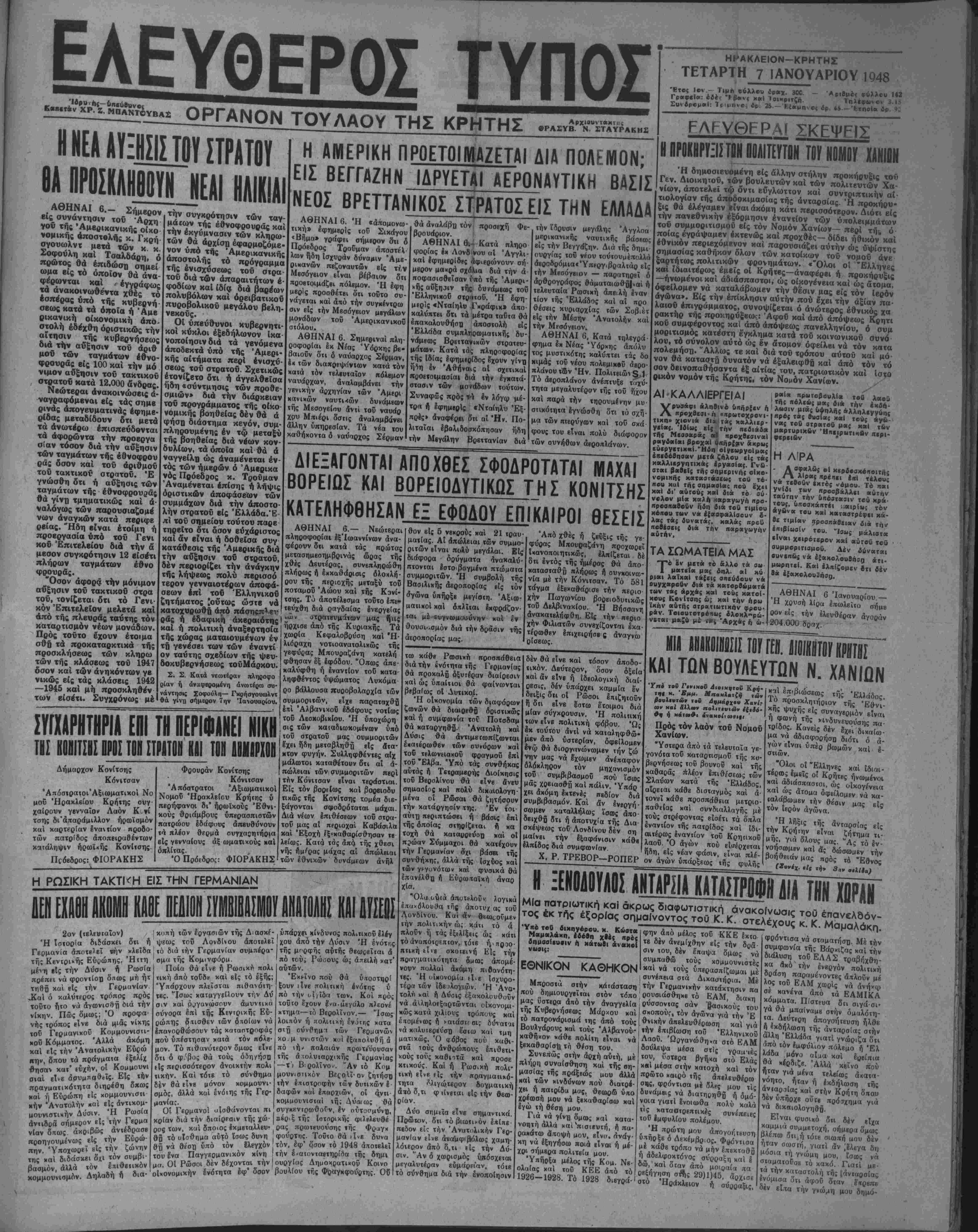 ΤΕΤΑΡΤΗ 7 ΙΑΝΟΥΑΡΙΟΥ 1948