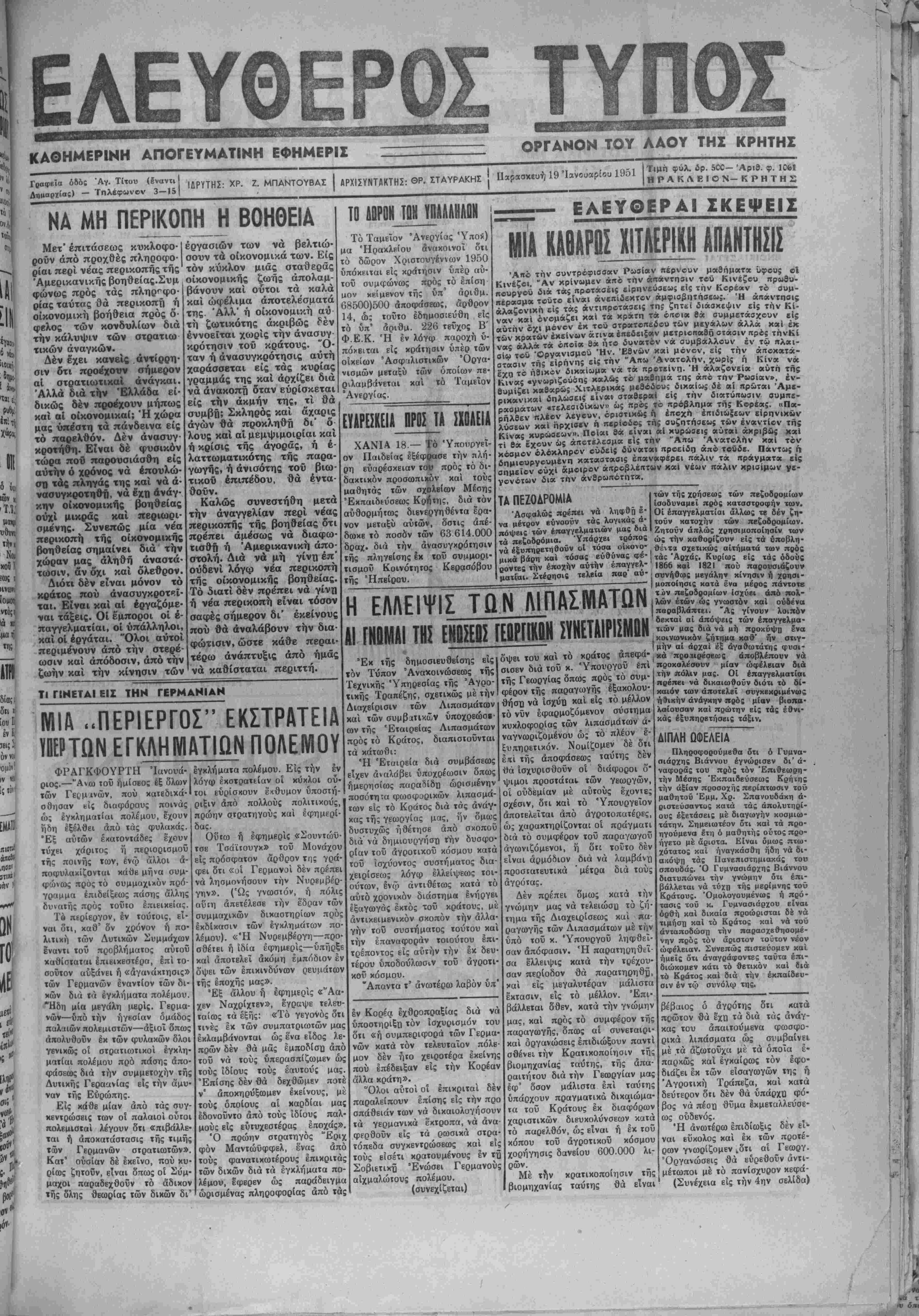 ΙΛΡΥΤΗΣ: ΧΡ· Ζ. ΜΠΑΝΤΟΥΒΑ! | ΑΡΧΙΣΥΝΤΑΚΤΗΣ: ©Ρ· ΣΤΑΥΡΑΚΗ! Παρασκευή 19 ΊανουαρΕου 1951