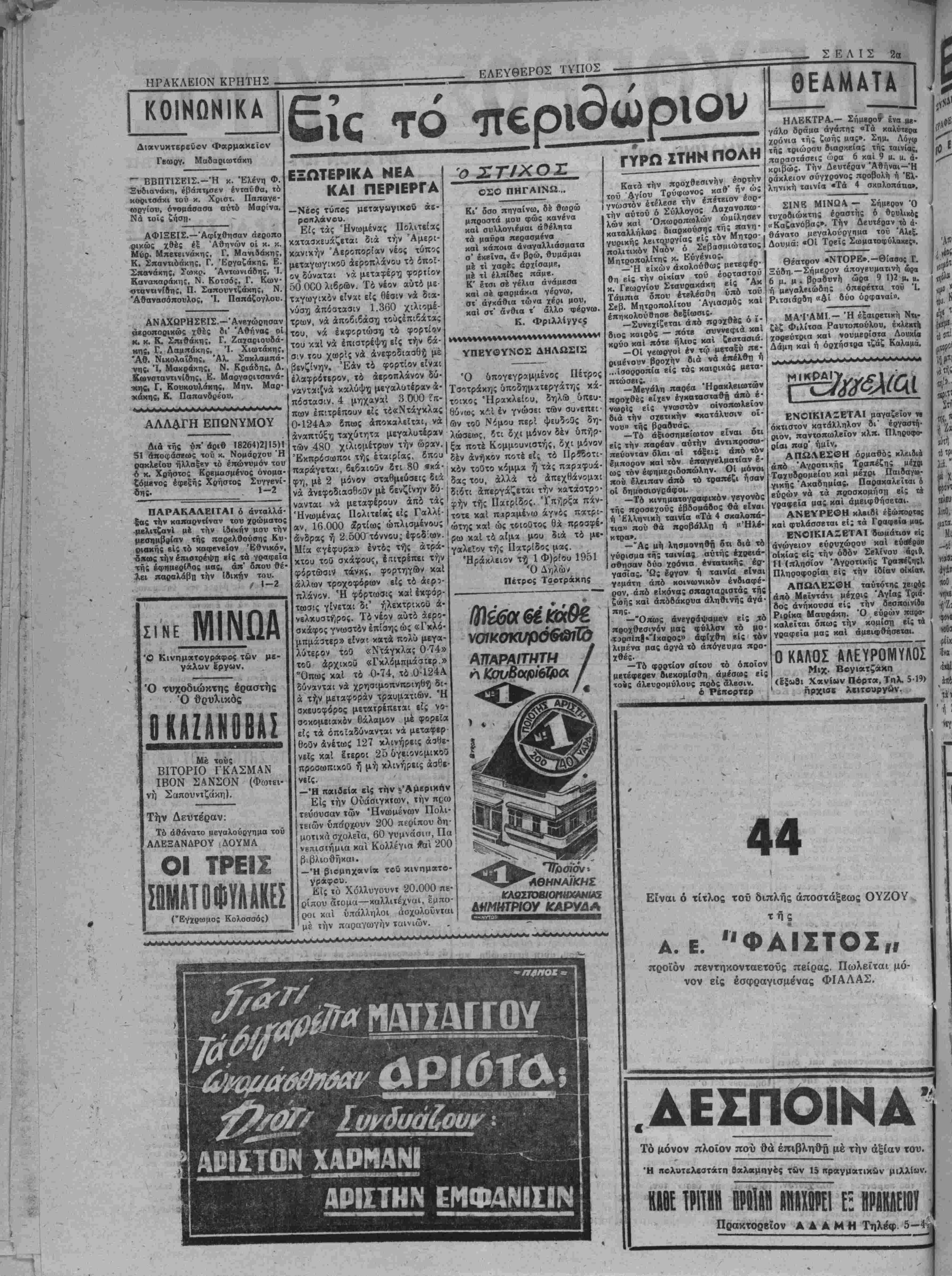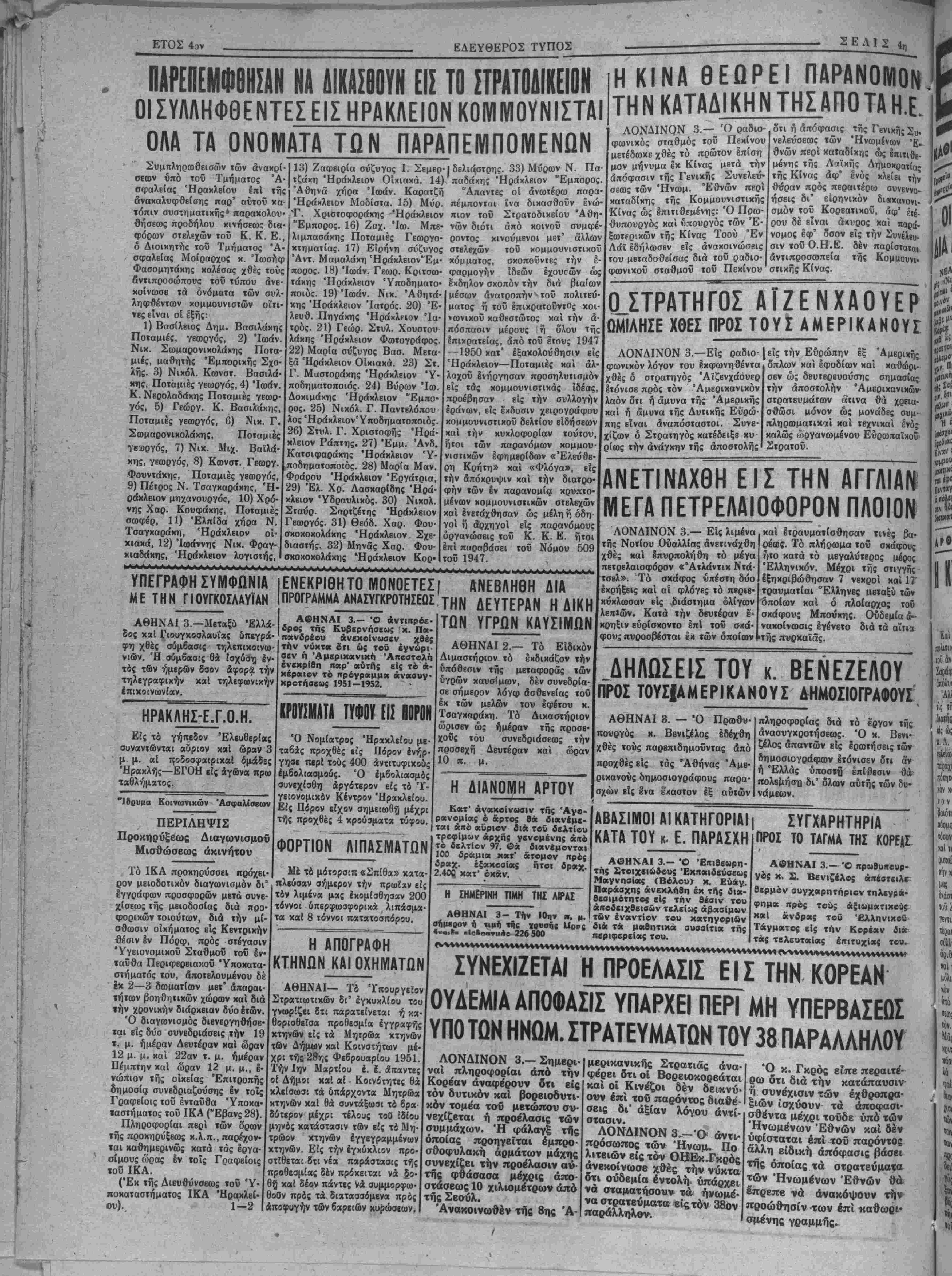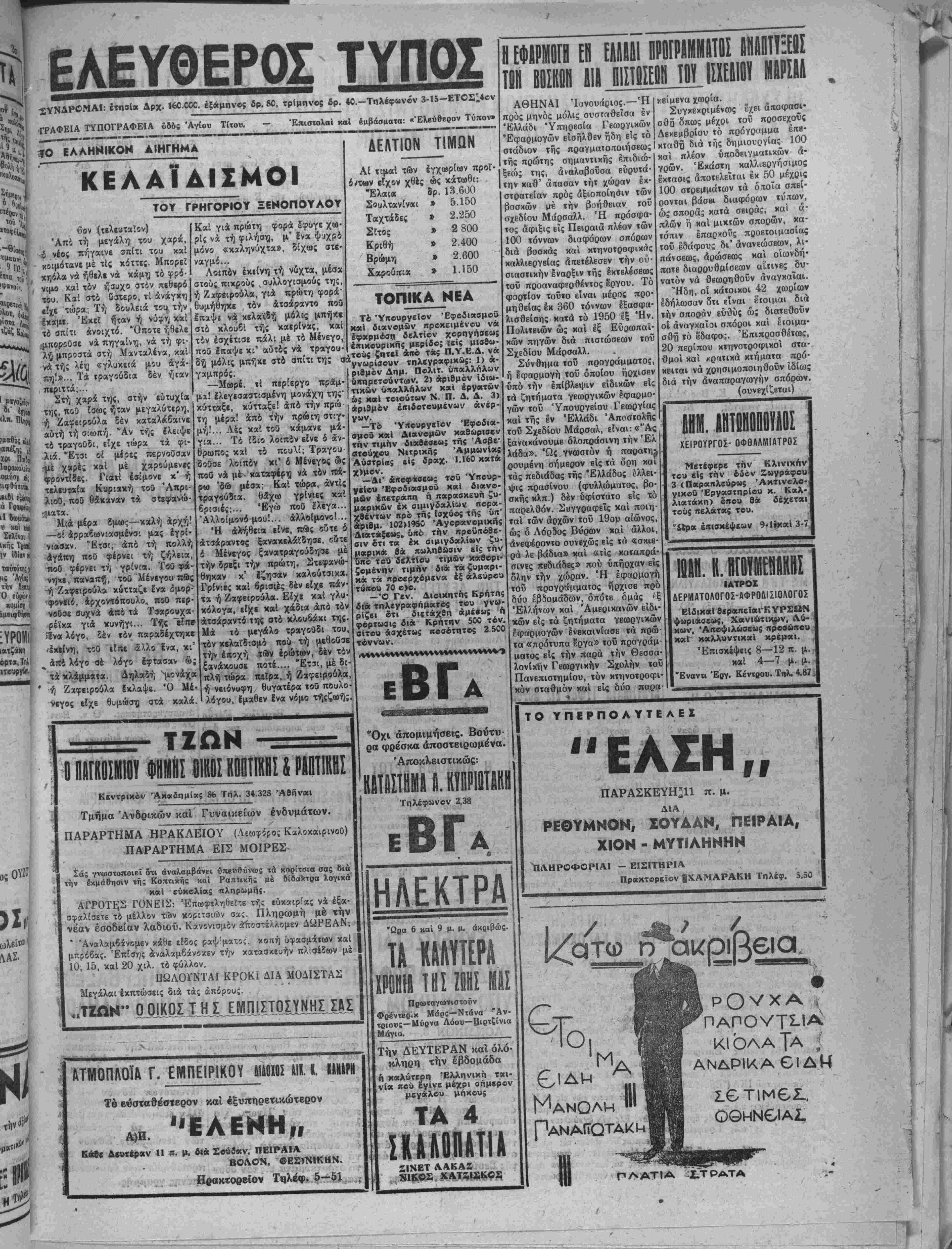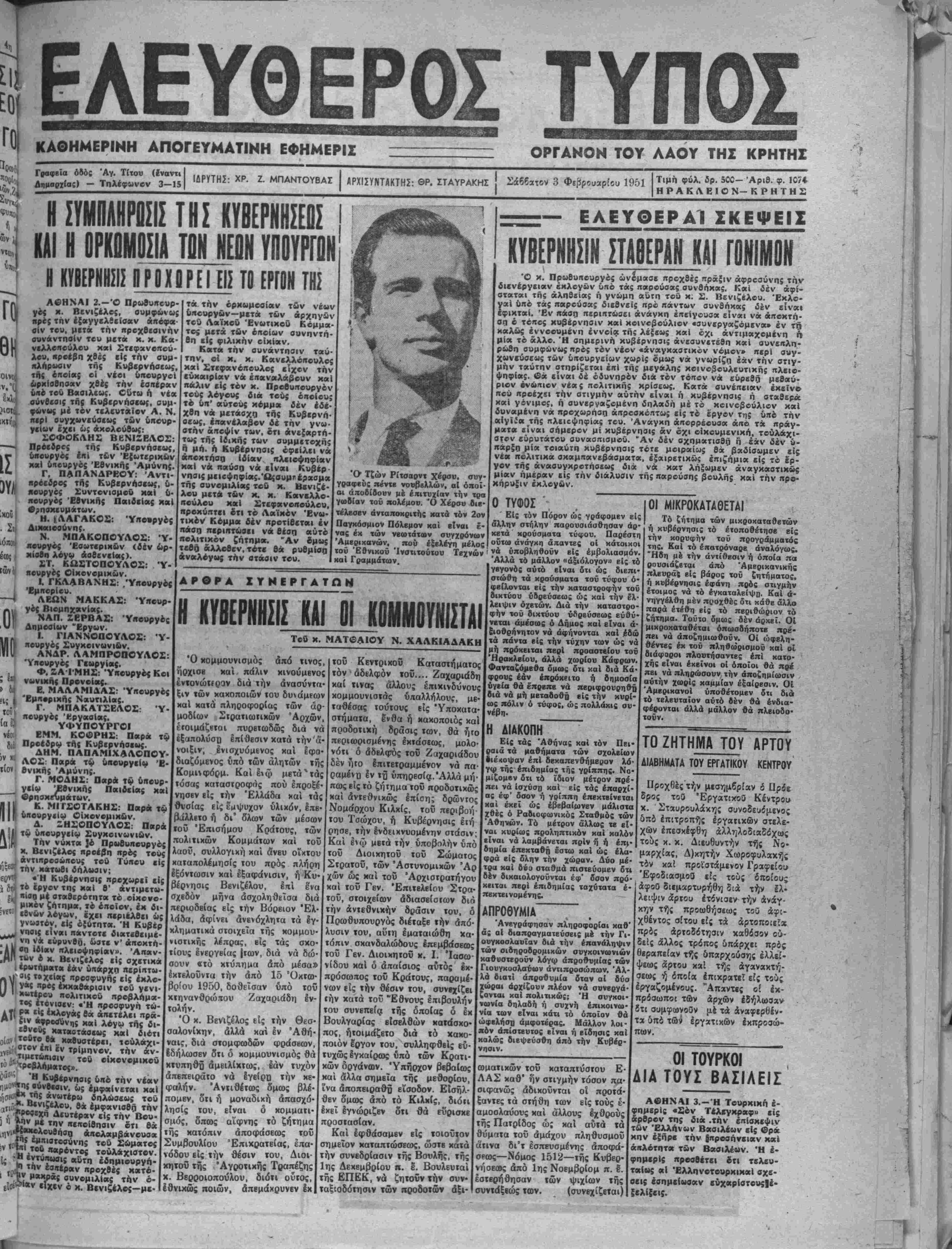 ΑΡΧΙΣΥΝΤΑΚΤΗΣ: ΘΡ. ΙΤΑΥΡΑΚΗΣ Σάββατον 3 Φεβρουαρίου 1951