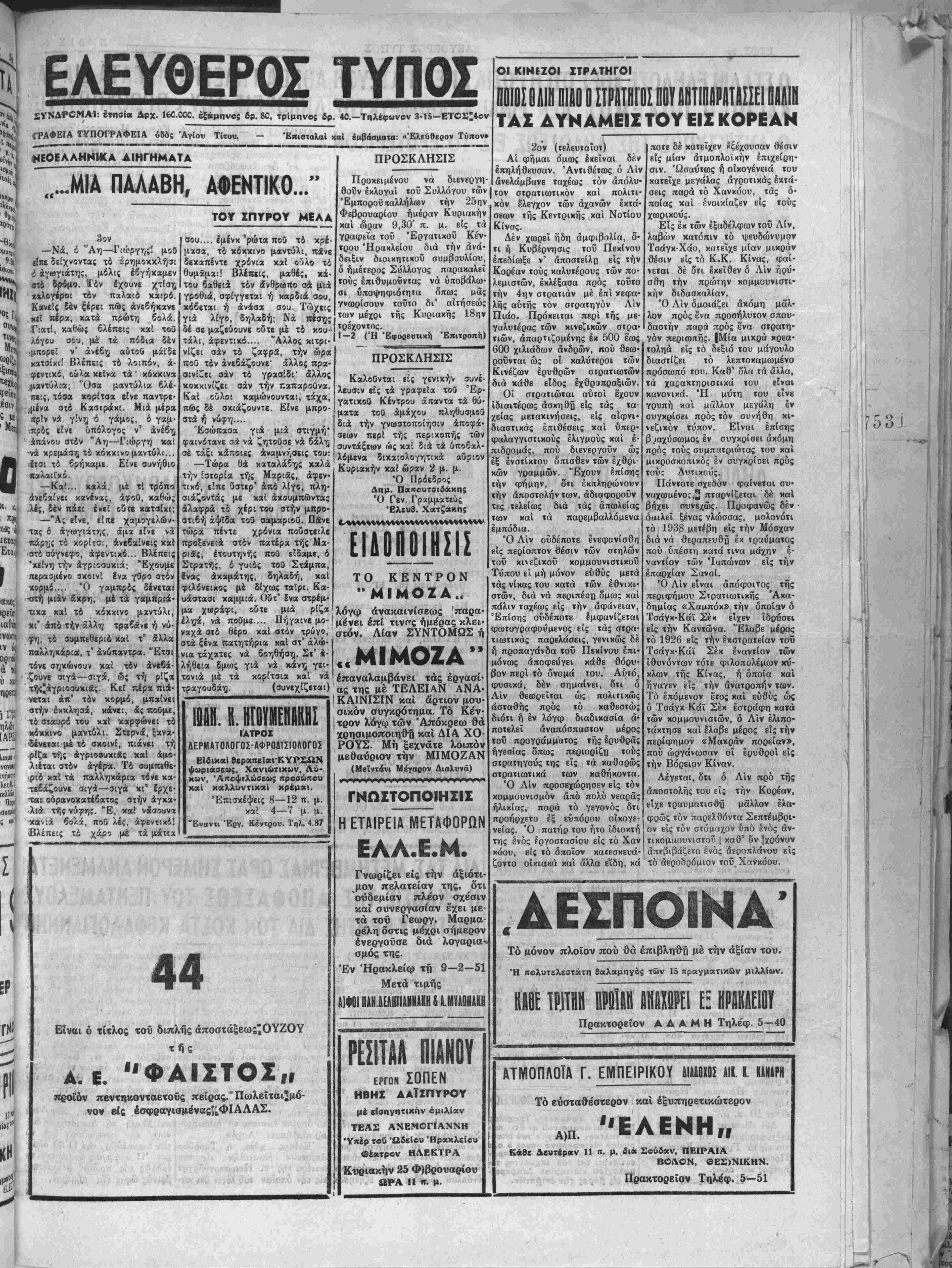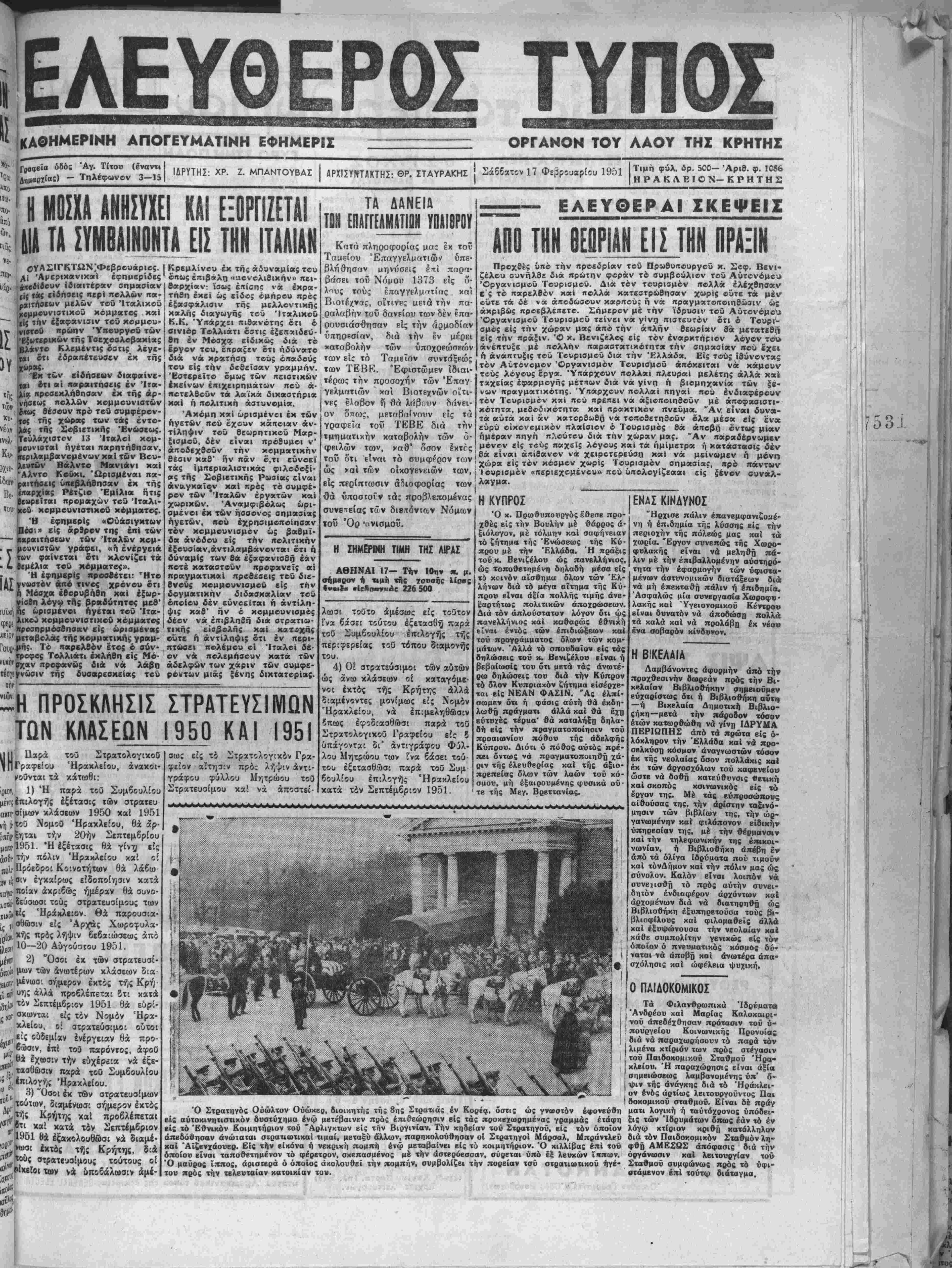 ΙΔΡΥΤΗΣ: ΧΡ- Ζ. ΜΠΑΝΤΟΥΒΑ! | ΑΡΧΙΣΥίίΤΑΚΤΗΣ: ©Ρ. ΣΤΑΥΡΑΚΗ! Σάββατον 17 Φεβρουαρίου 1951