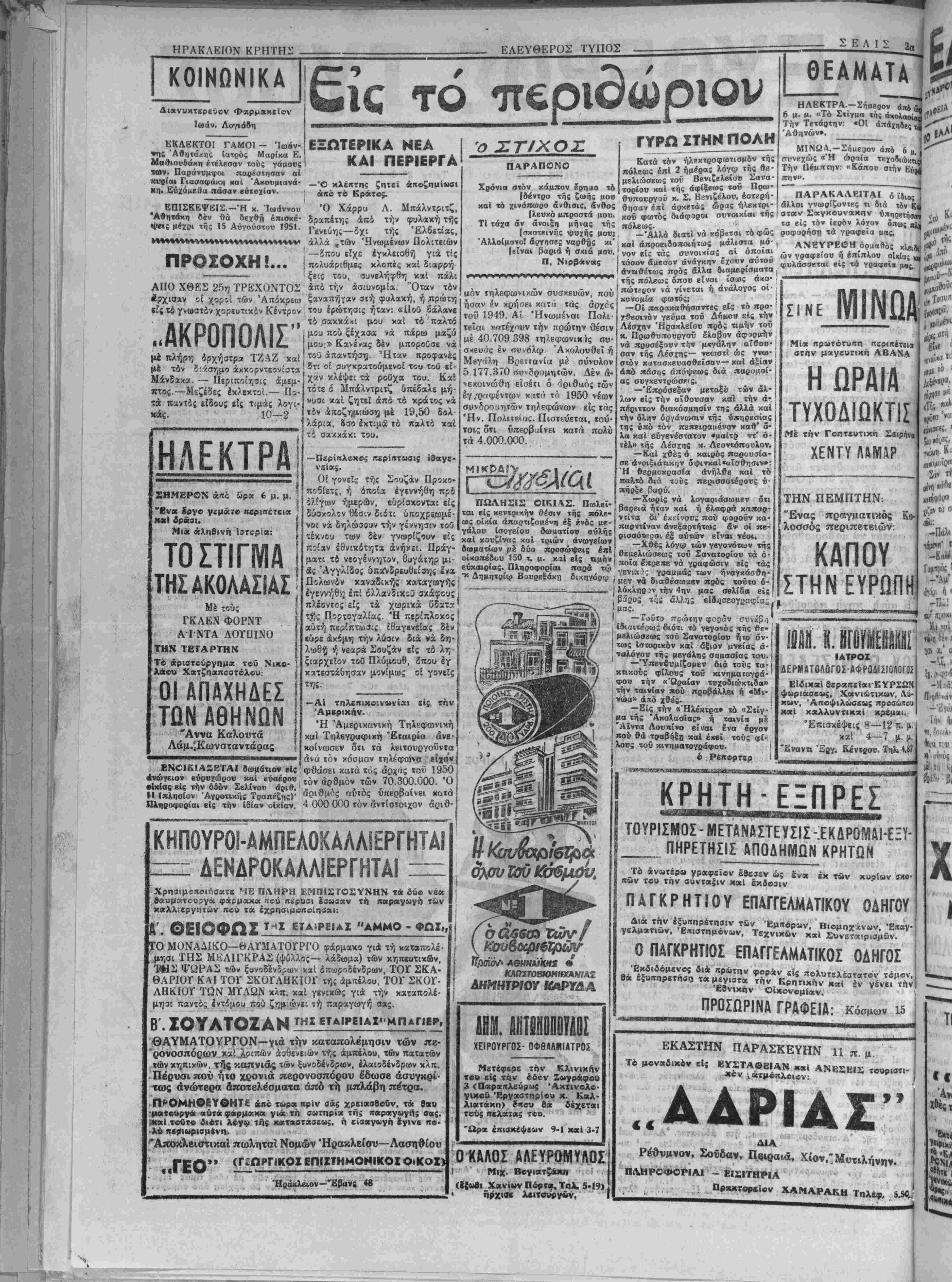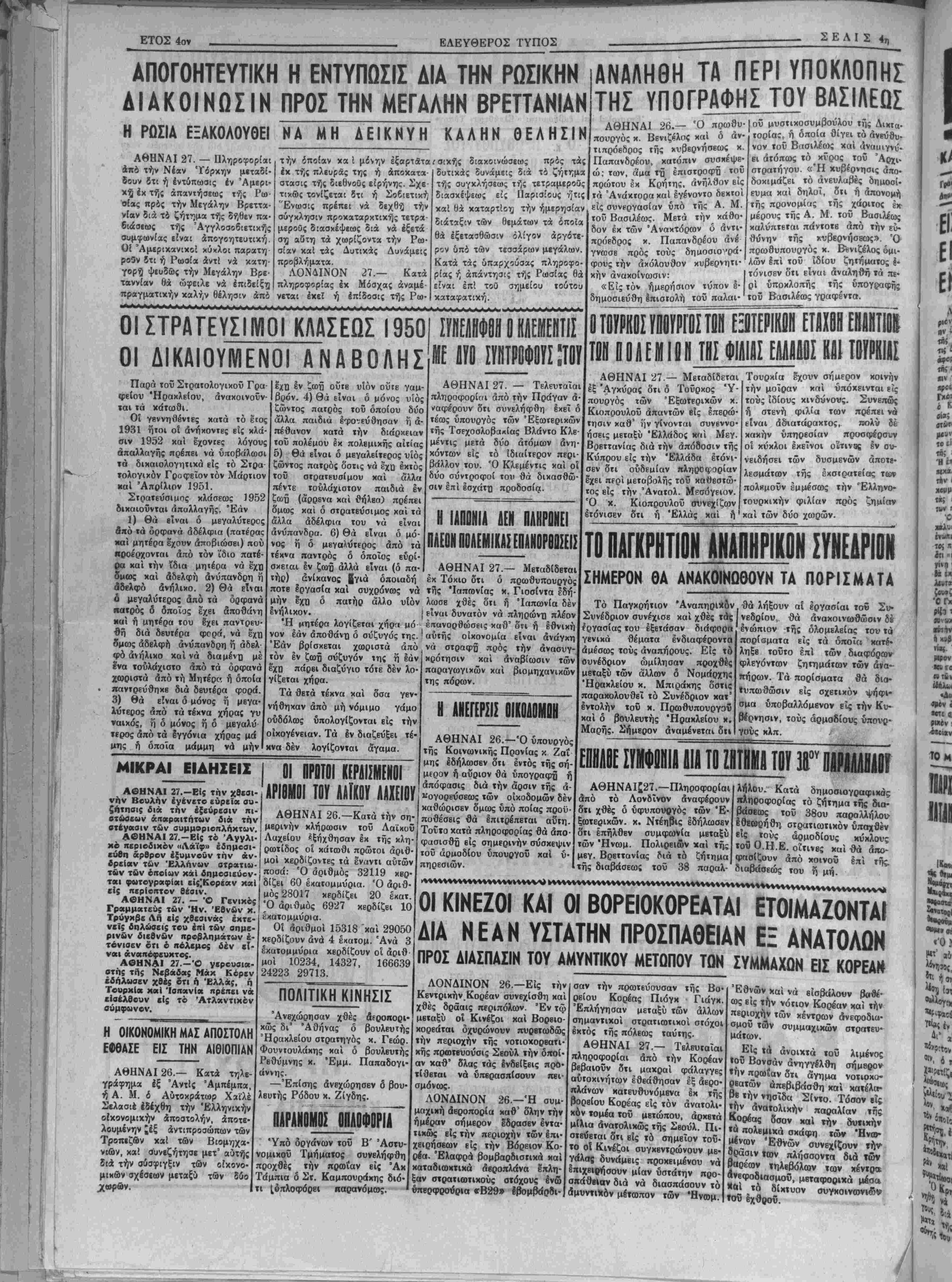 ΑΡΧΙΣΥΝΤΑΚΤΗΣ: ©Ρ. ΣΤΑΥΡΑΚΗ! } Τρίτη 27 Φεβρουαρίου 1951