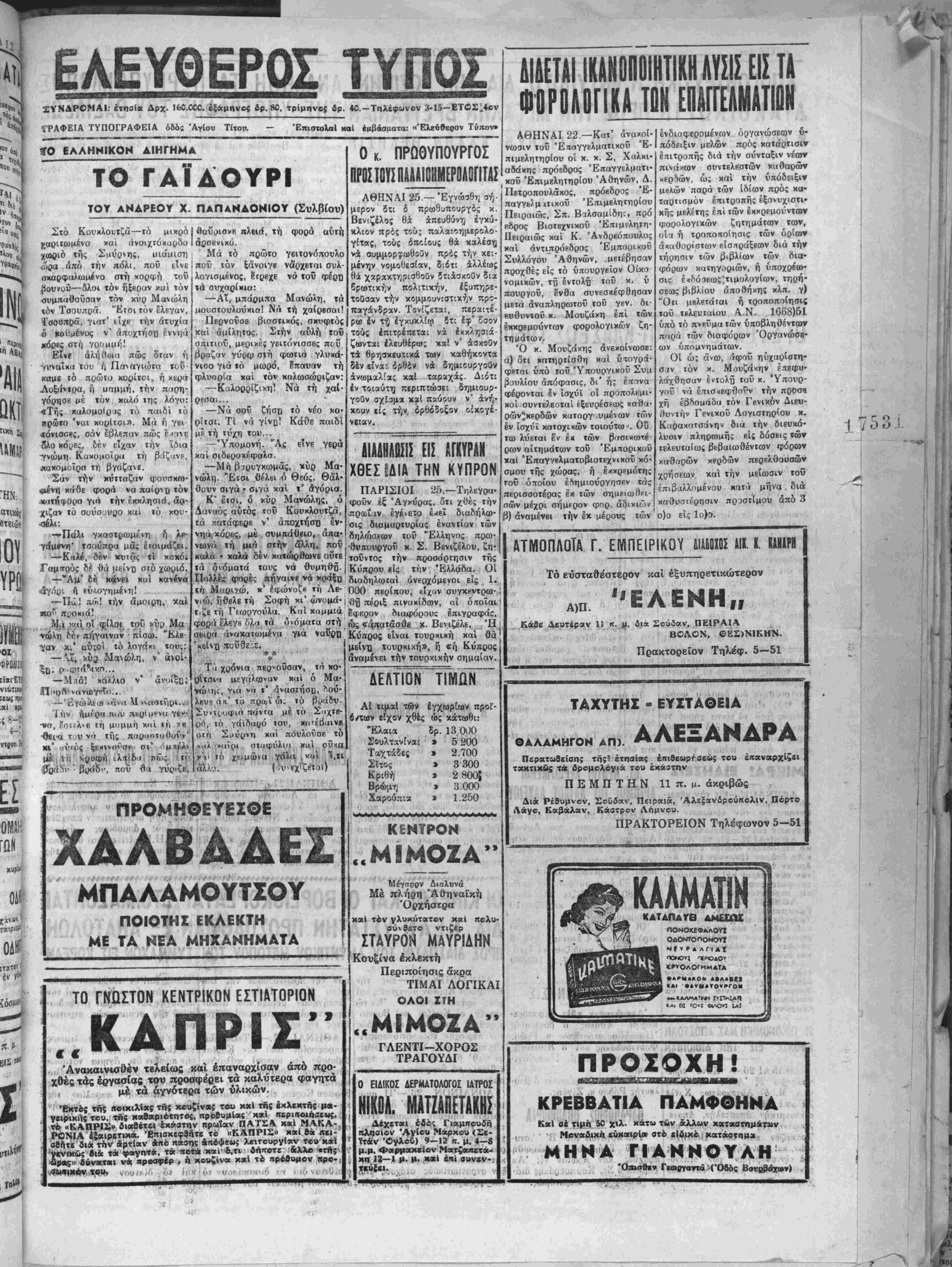 βρχίβς) — Τηλέφωνον 3—15