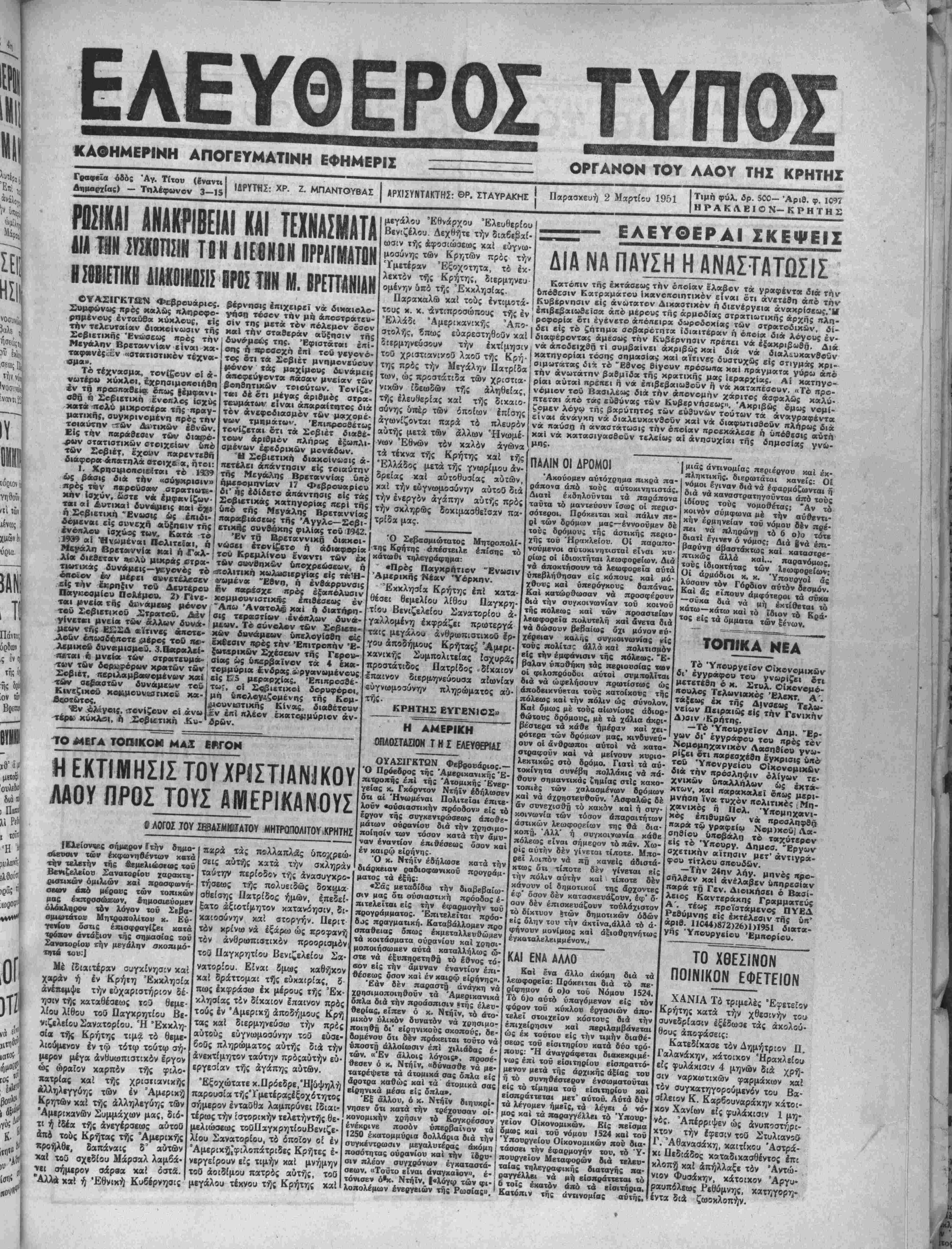 Τΐμή φύλ. δρ. 500— Αριθ. φ. 1097