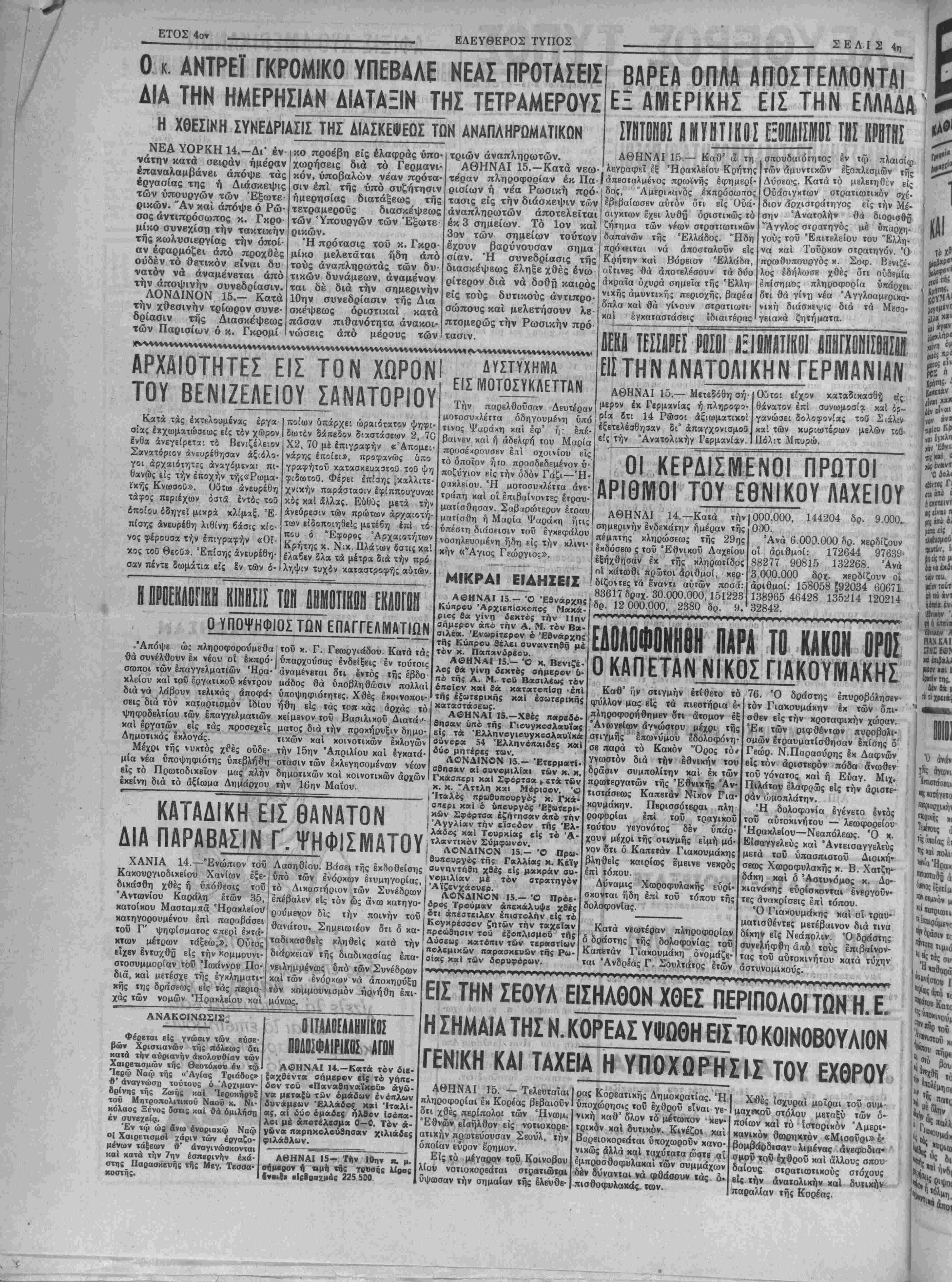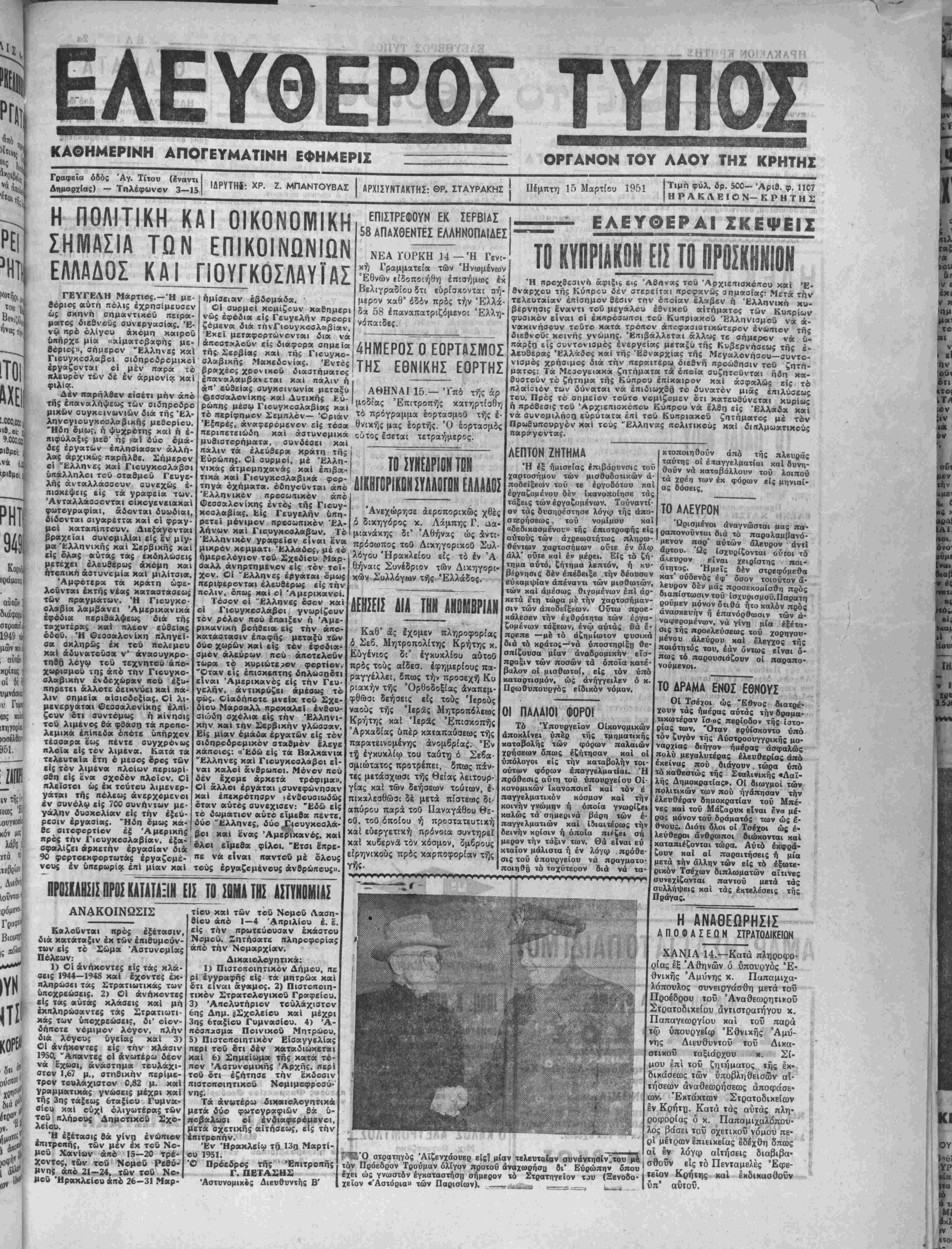 ΙΔΡΥΤΗϋ ΧΡ- Ζ. ΜΠΑΝΤΟΥΒΑΣ | ΛΡΧΙΣΥΝΤΑΚΤΗΣ: ©Ρ. ΣΤΑΥΡΑΚΗ! | Πέμπτη 15 Μαρτιου 1951