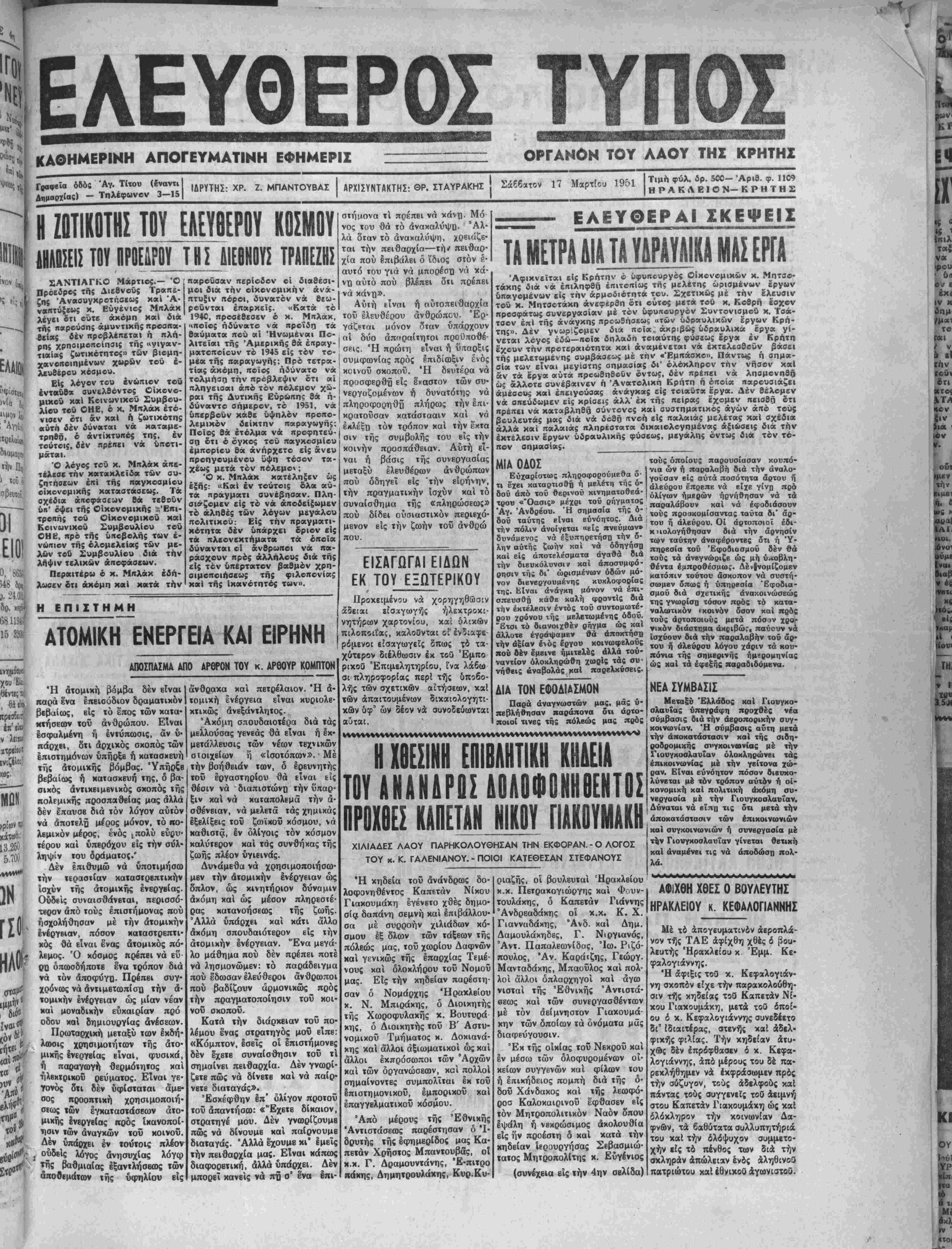 ΑΡΧΙΣΥΝΤΑΚΤΗΣ: ©Ρ. ΣΤΑΥΡΑΚΗ! Σάββατον 17 ΜαρτΕου 1951