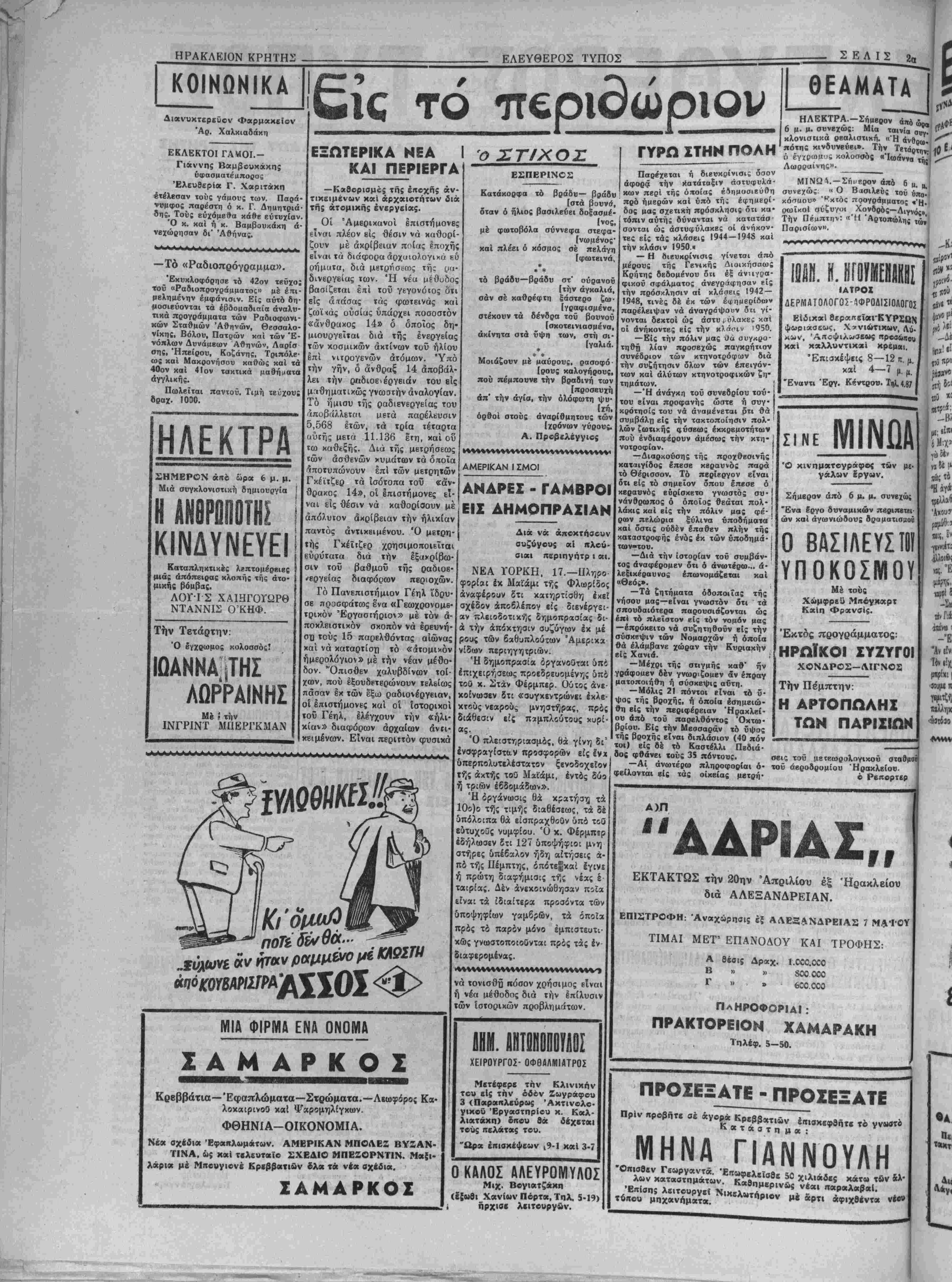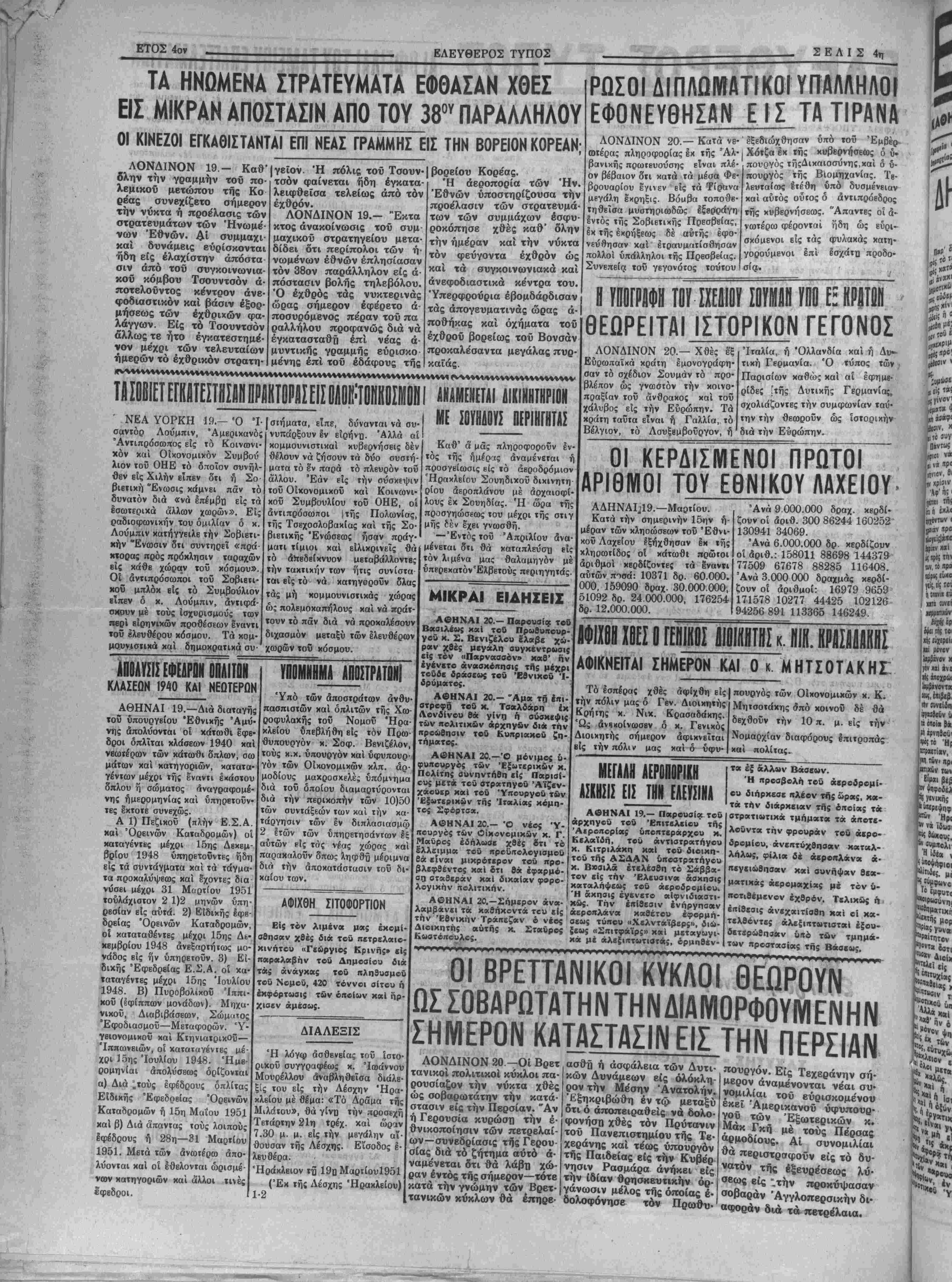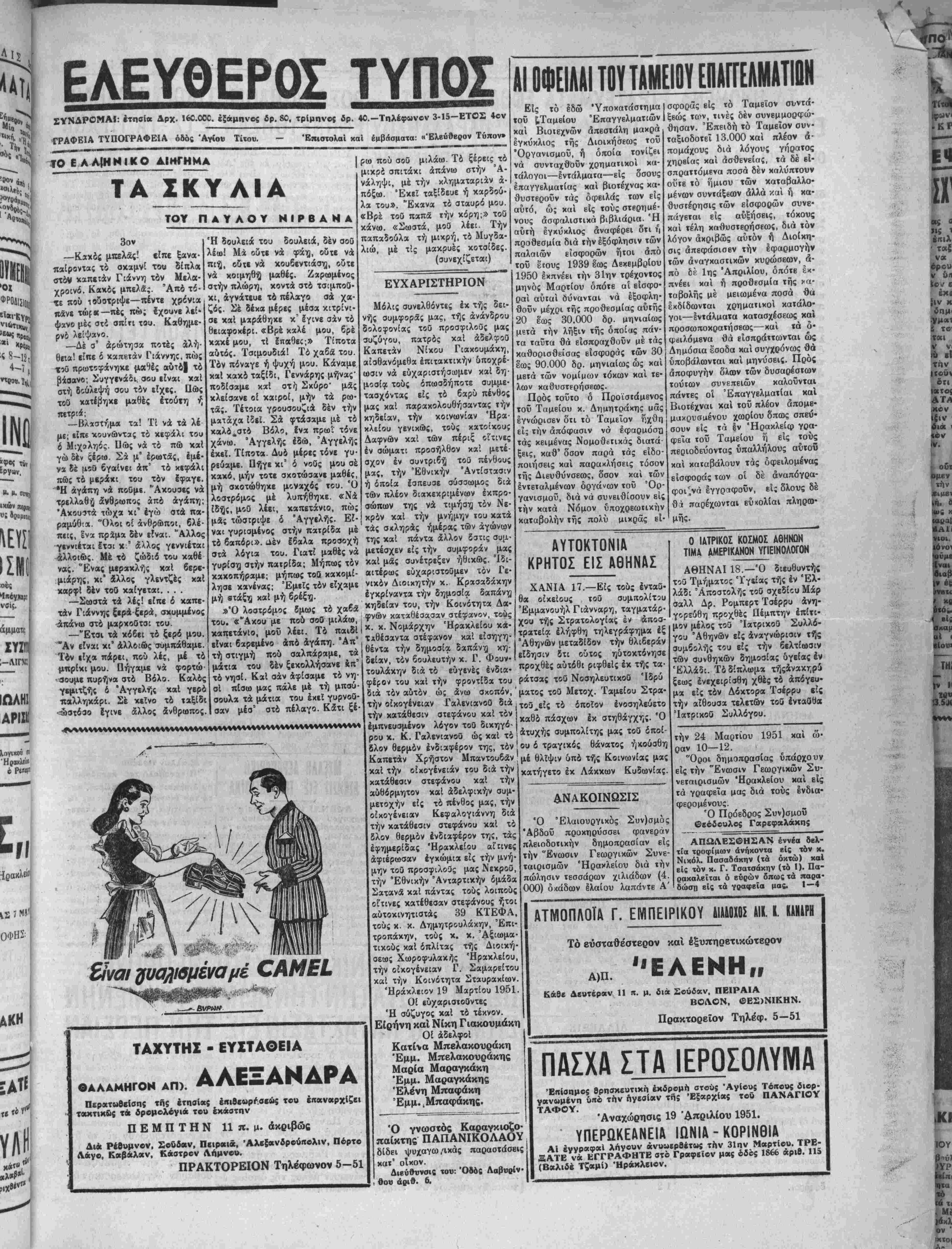 ΙίΡΥΤΗΣ: ΧΡ. Ζ. ΜΠΑΝΤΟΥΒΑΣ Ι ΛΡΧΙΣΥΝΤΛΚΤΗΣ: ©Ρ. ΣΤΑΥΡΑΚΗΣ ! Τριτη 20 Μαρτίου 1951