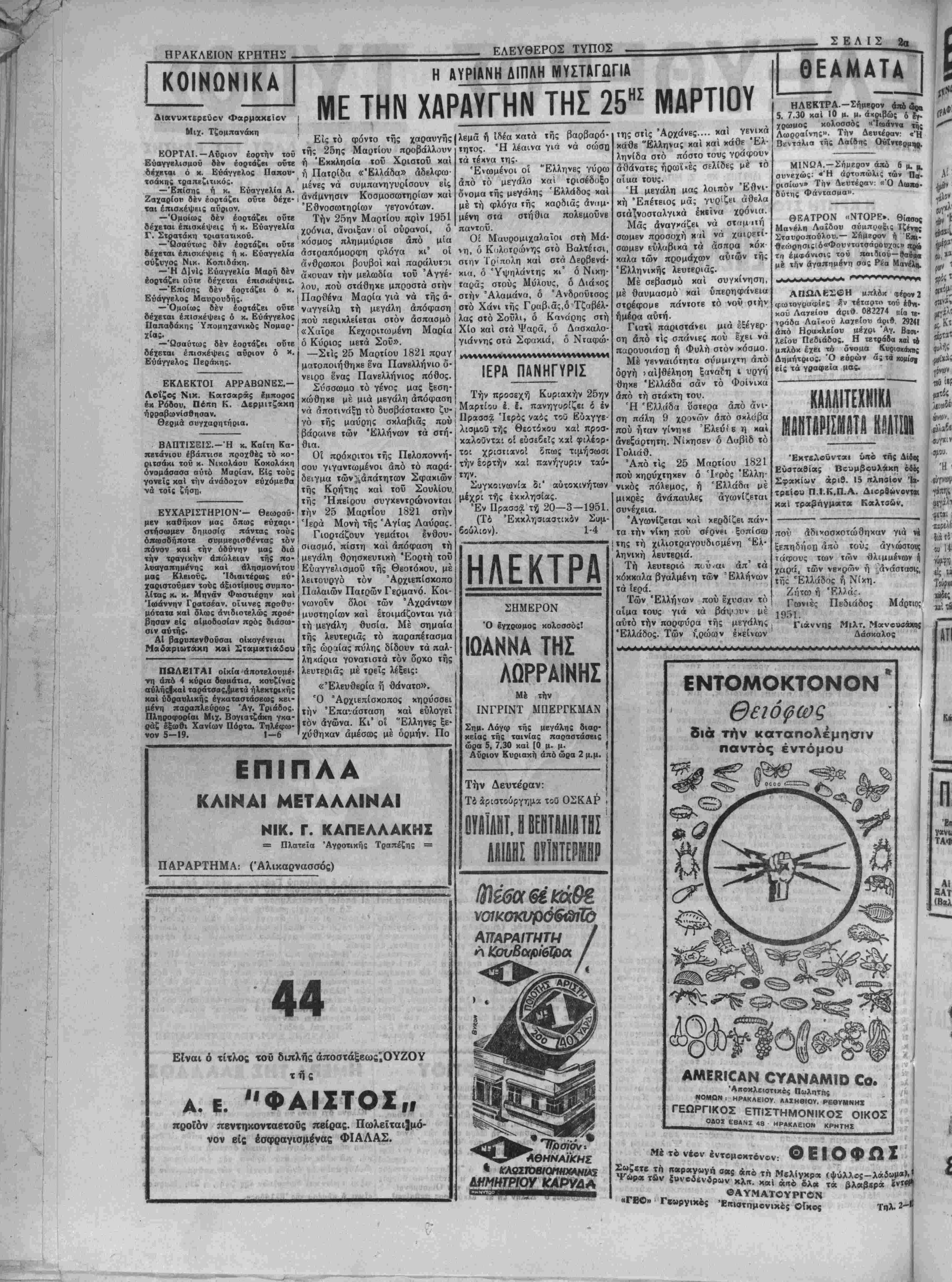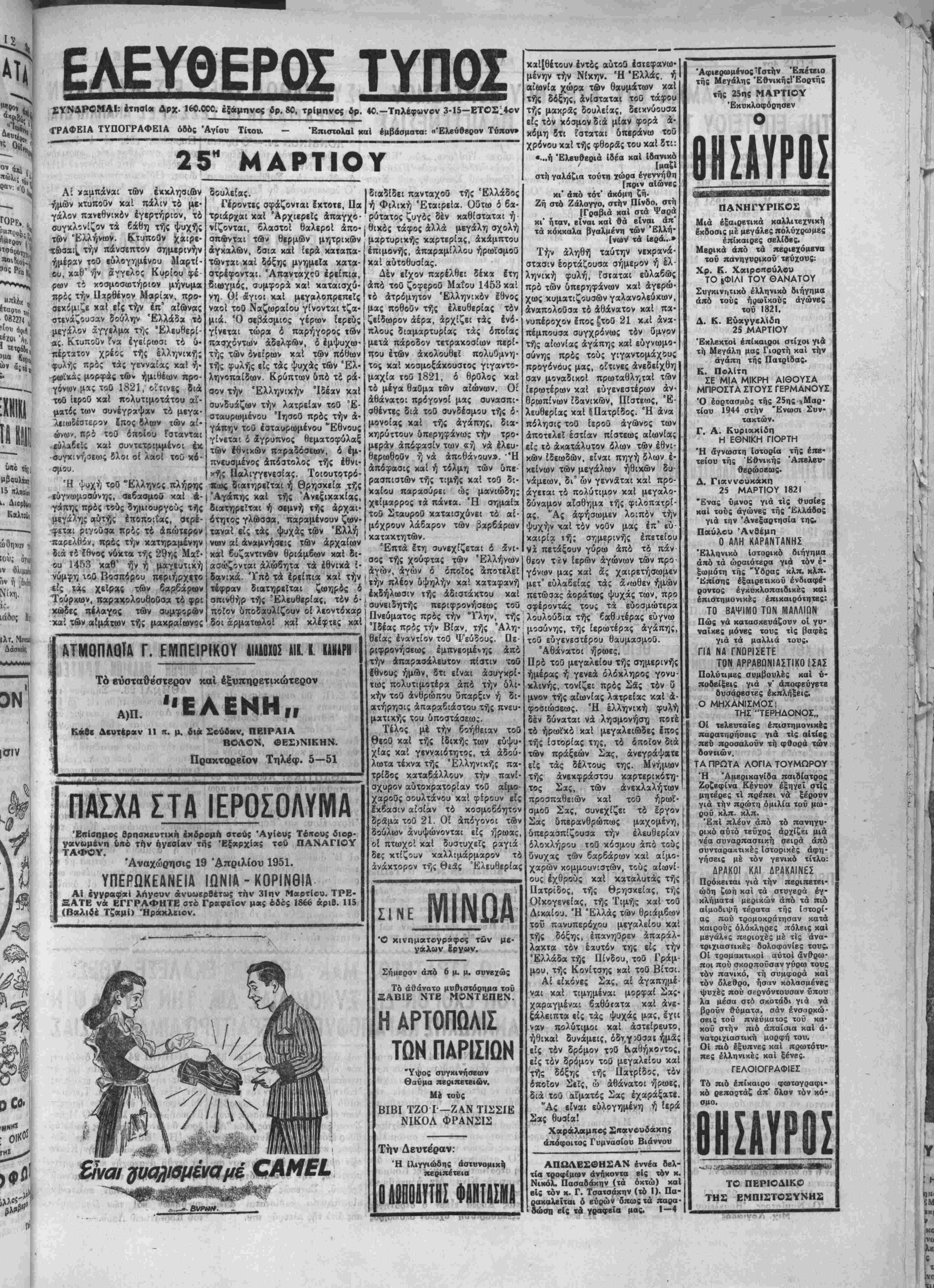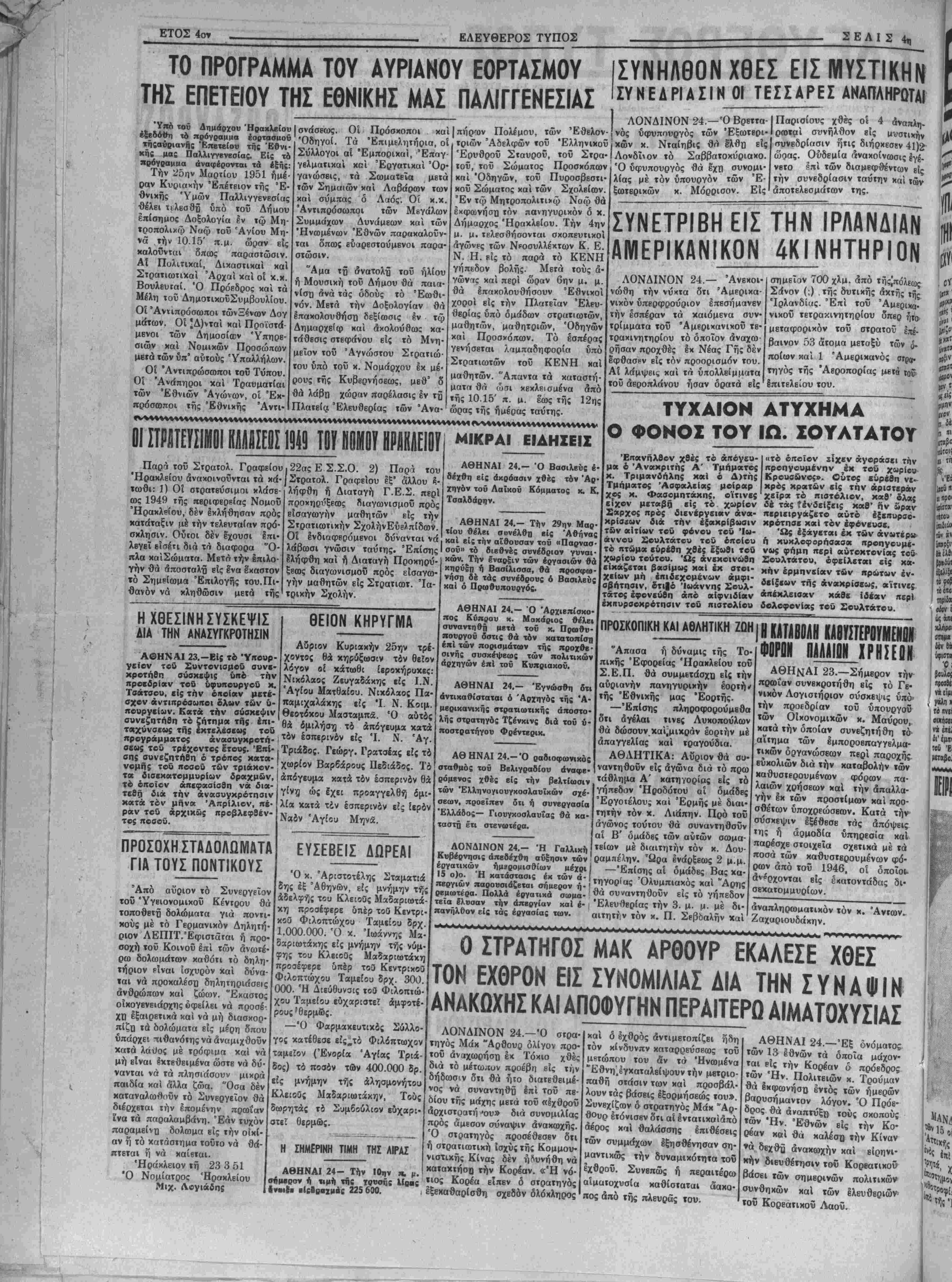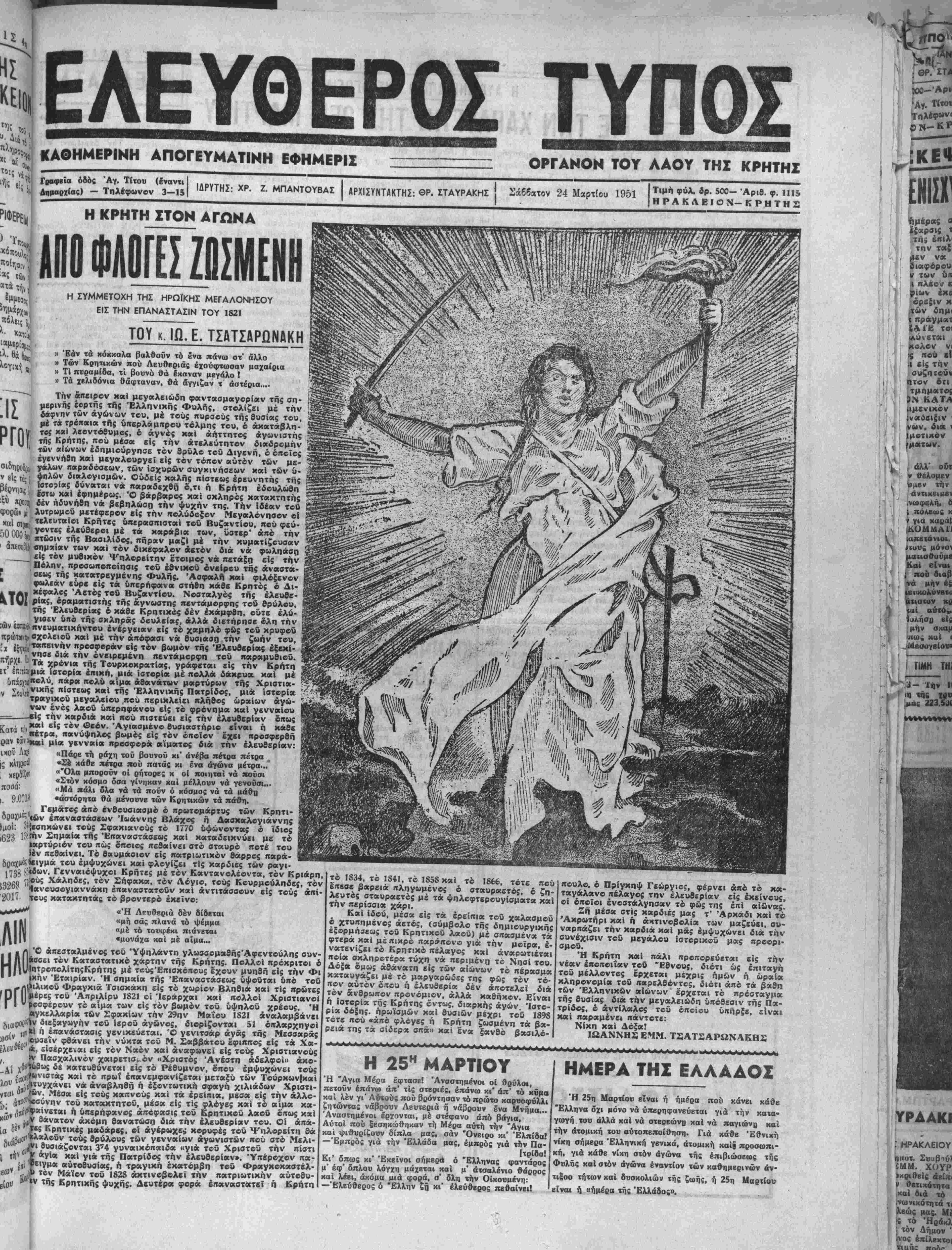 ΑΡΧΙΣΥΝΤΑΚΤΗΣ: ©Ρ. ΣΤΑΥΡΑΚΗΣ Σάββατον 24 Μαρτίου 1951
