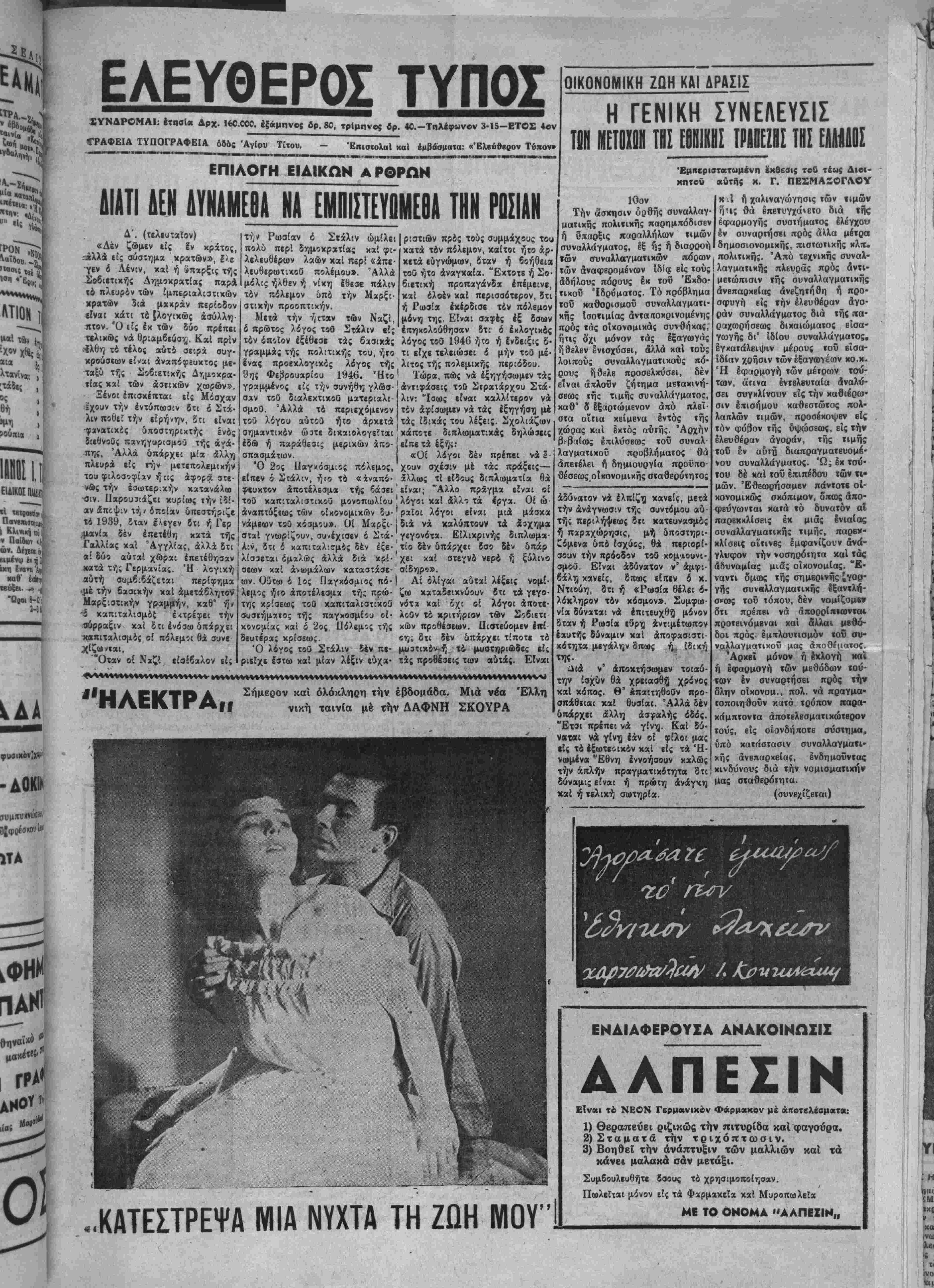 ΑΡΧΙΣΥΝΤΑΚΤΗΣ: ©Ρ. ΣΤΑΥΡΑΚΗΣ Τρίτη 3 Απριλίου 1951