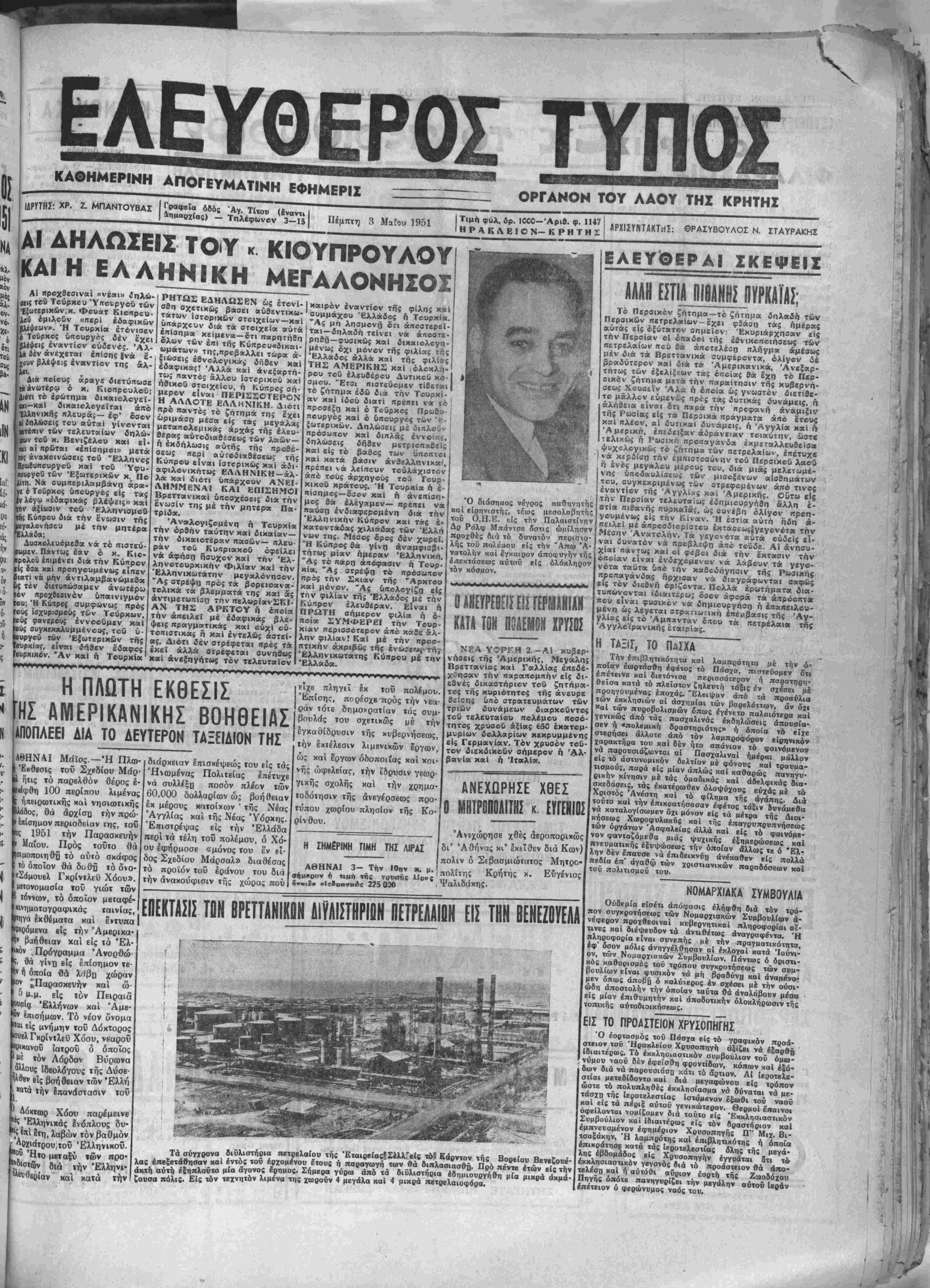 Πέμπτη 3 Μ»ίου 1951 (Τιμη »»λ. δρ. ΙΟΟΟ-'Αριβ. φ. 1147
