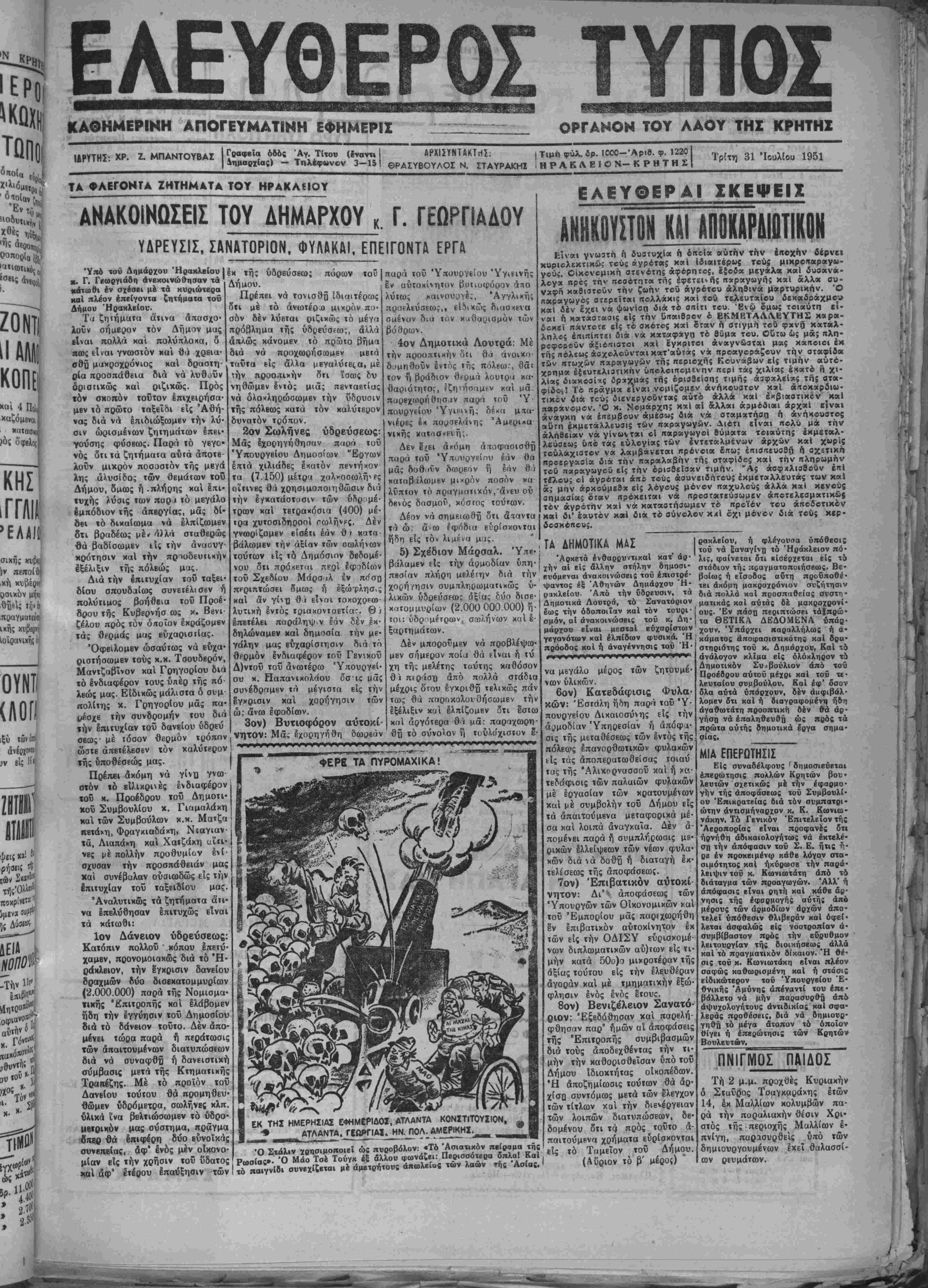 Υπό τού Δήμαρχον Ηρακλείου Ι