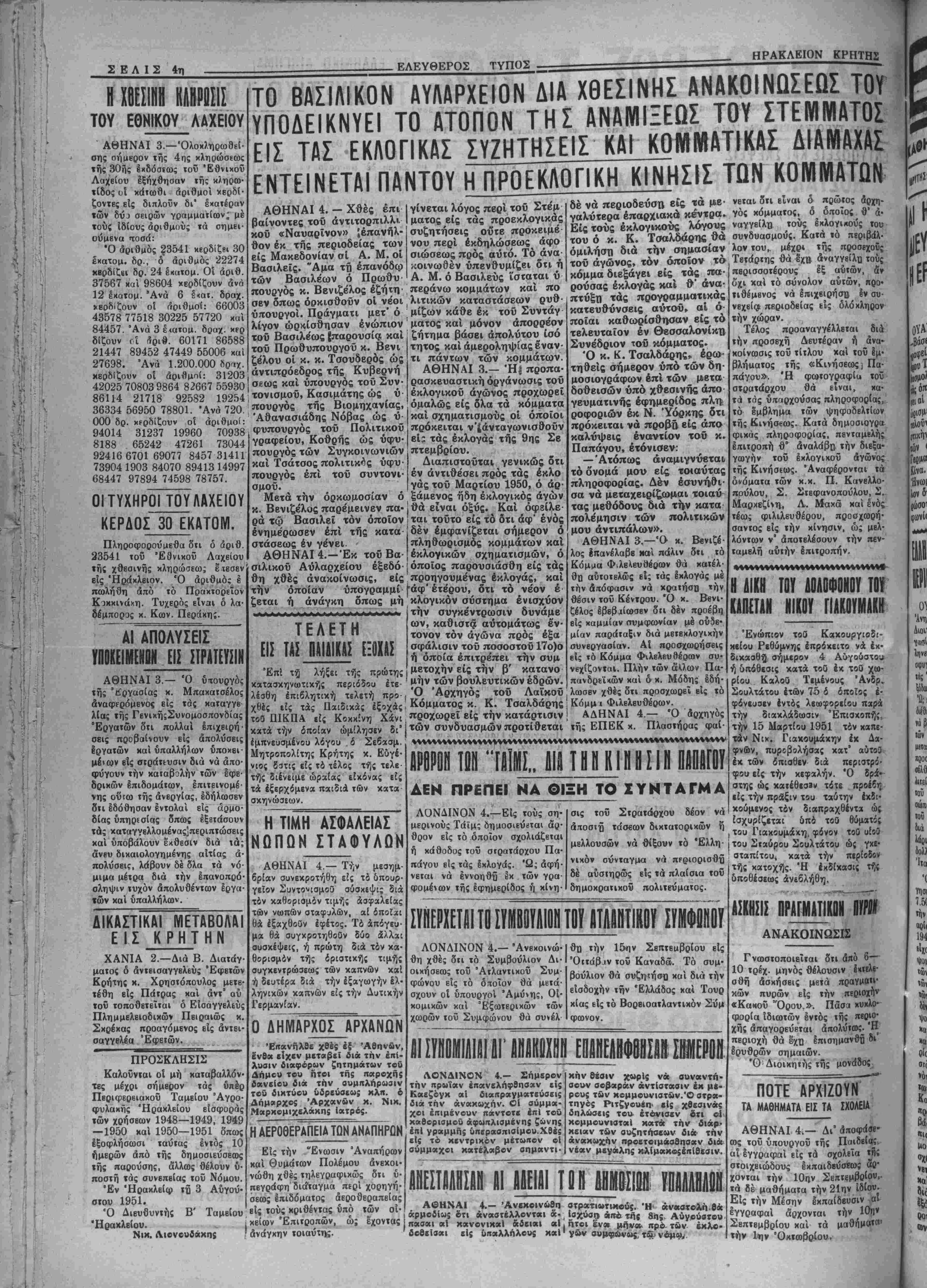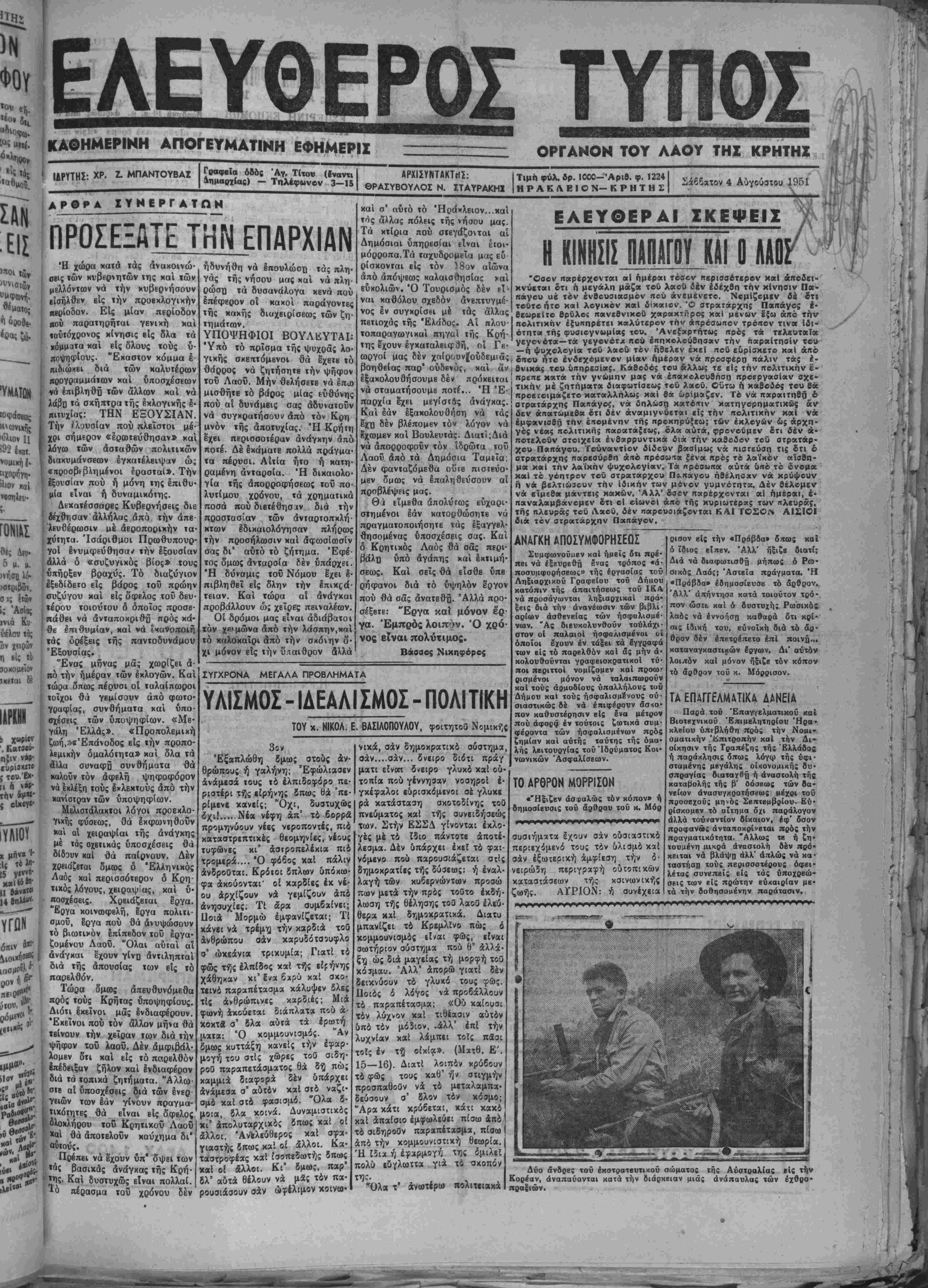 τό βιωΐι><όν επίπεδον τοϋ εργα- ζομένου Λαοΰ. Όλαι αύται αί άνάγχαι έχουν γΐνυ αντιληπταί ηδυνήθη νά Ιπουλώοχι τάς πλη¬ γάς τής νήσου μας καΐ νά πλη¬ ρώση τα δυσανάλογα κενά πού επέφερον οί καχοί παράγοντες τής καχής διαχειρίσεως των ζη· τημάτων. ΥΠΟΨΗΦΙΟΙ ΒΟΥΛΕΥΤΑΣ "Υπό τό πρΐσμα τής ψυχοδς λο· γικής σκειττόμενοι θά έχειε τό θάρρος νά ζητήσητε την ψήφον τοΰ Λαοΰ. Μην θελήσετε νά επα>