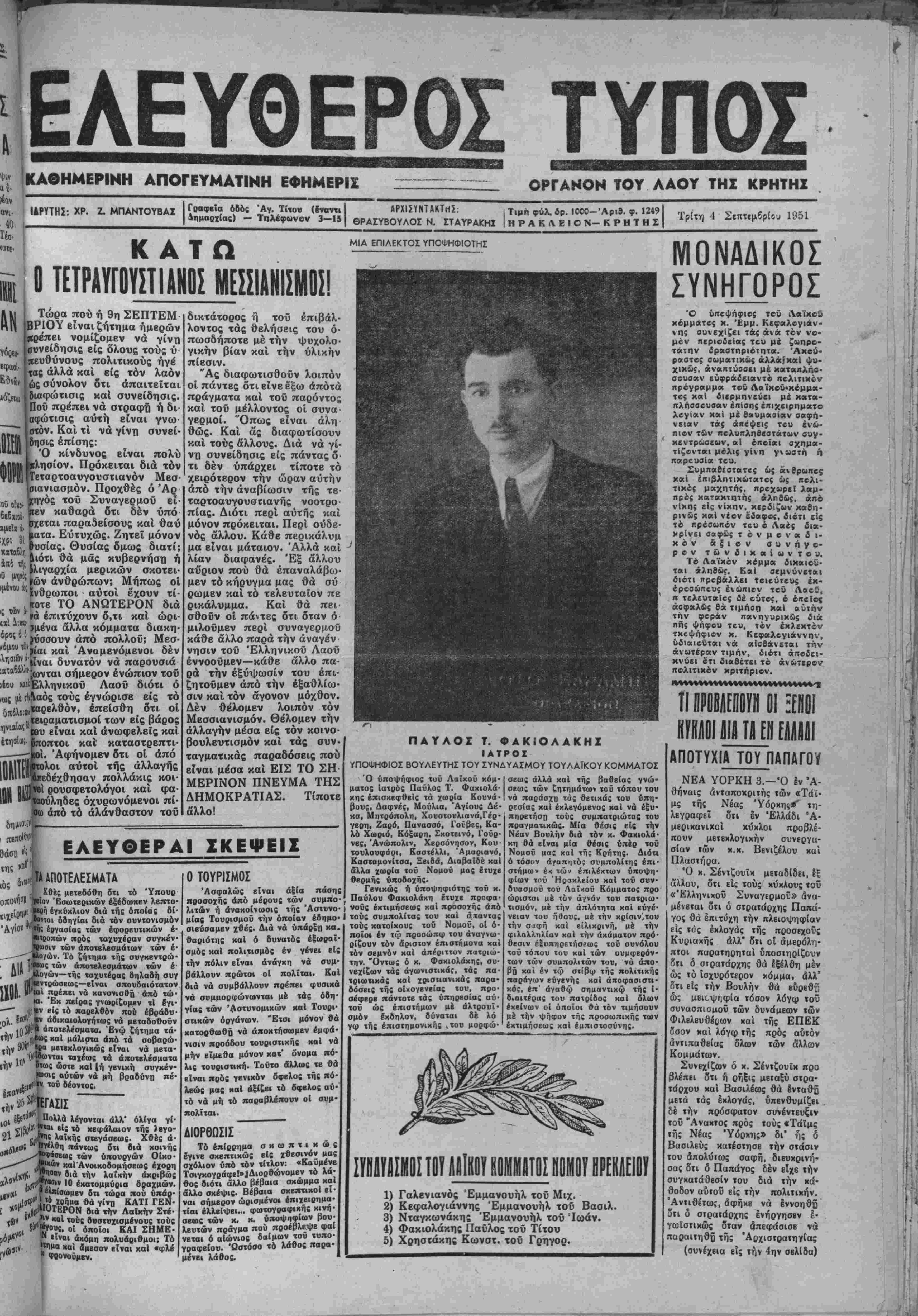 Τρίτη 4 Σεπτεμδρίου 1951
