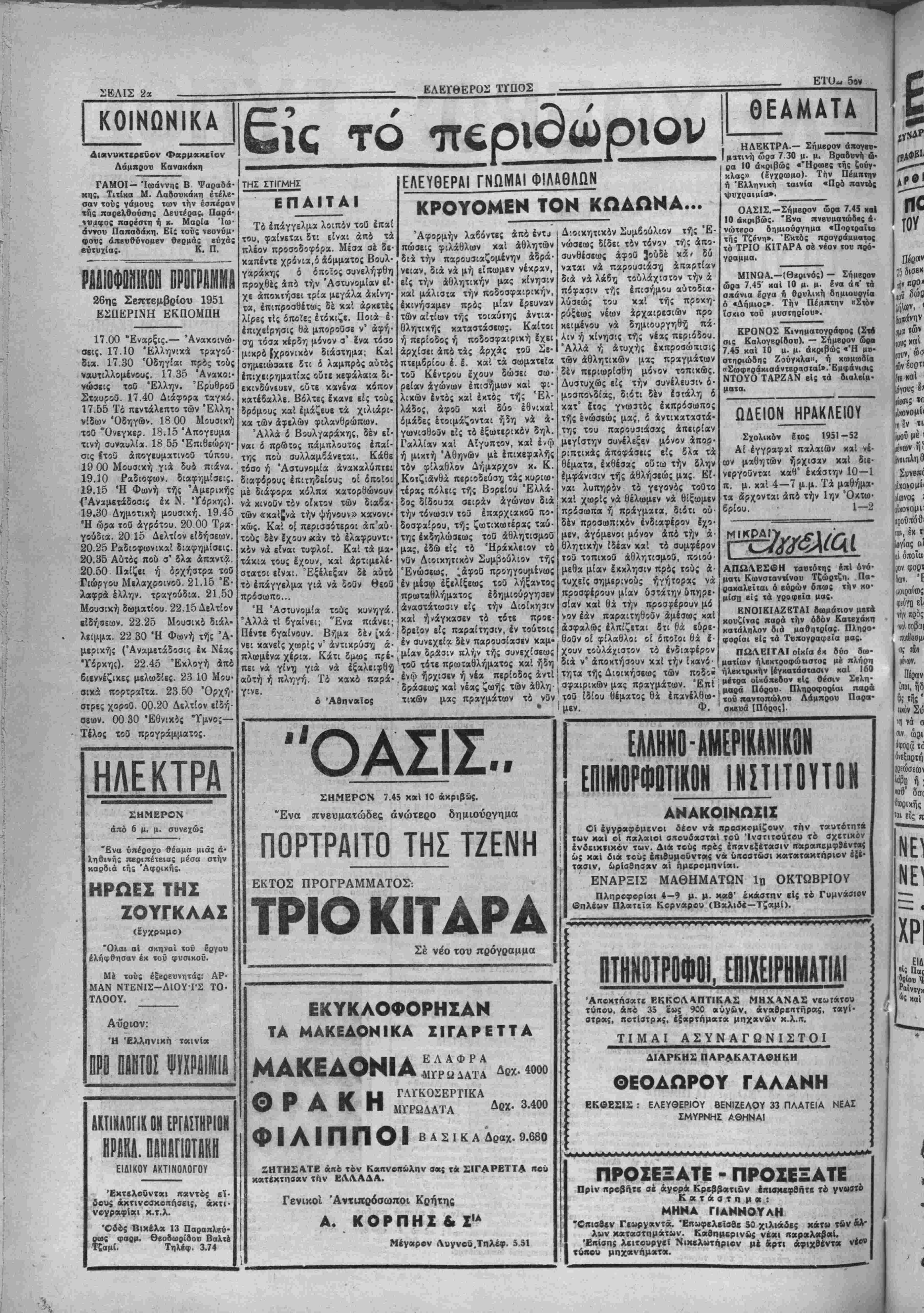 Τετάρτη 26 ΣεπτεμδριΌυ 1951