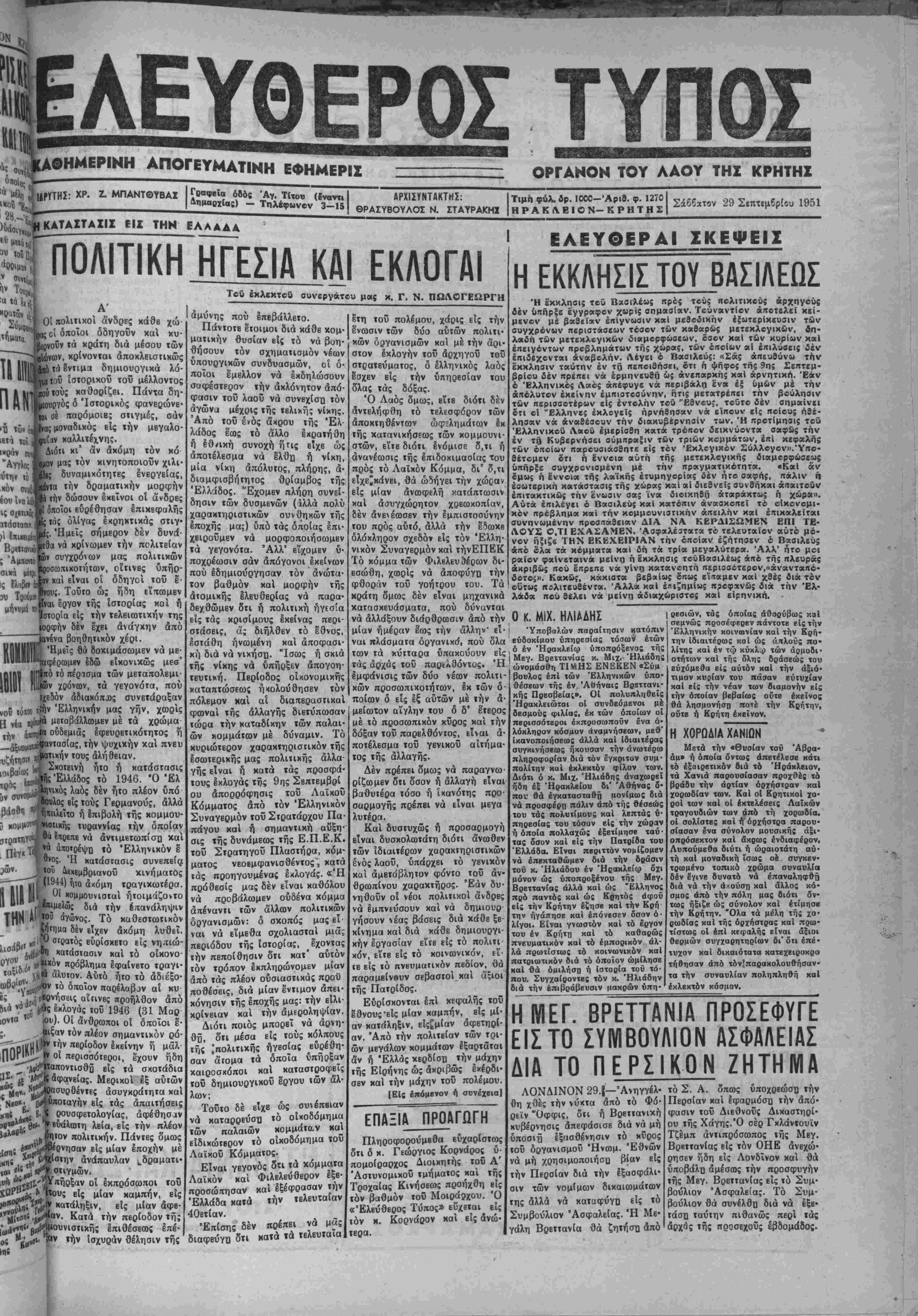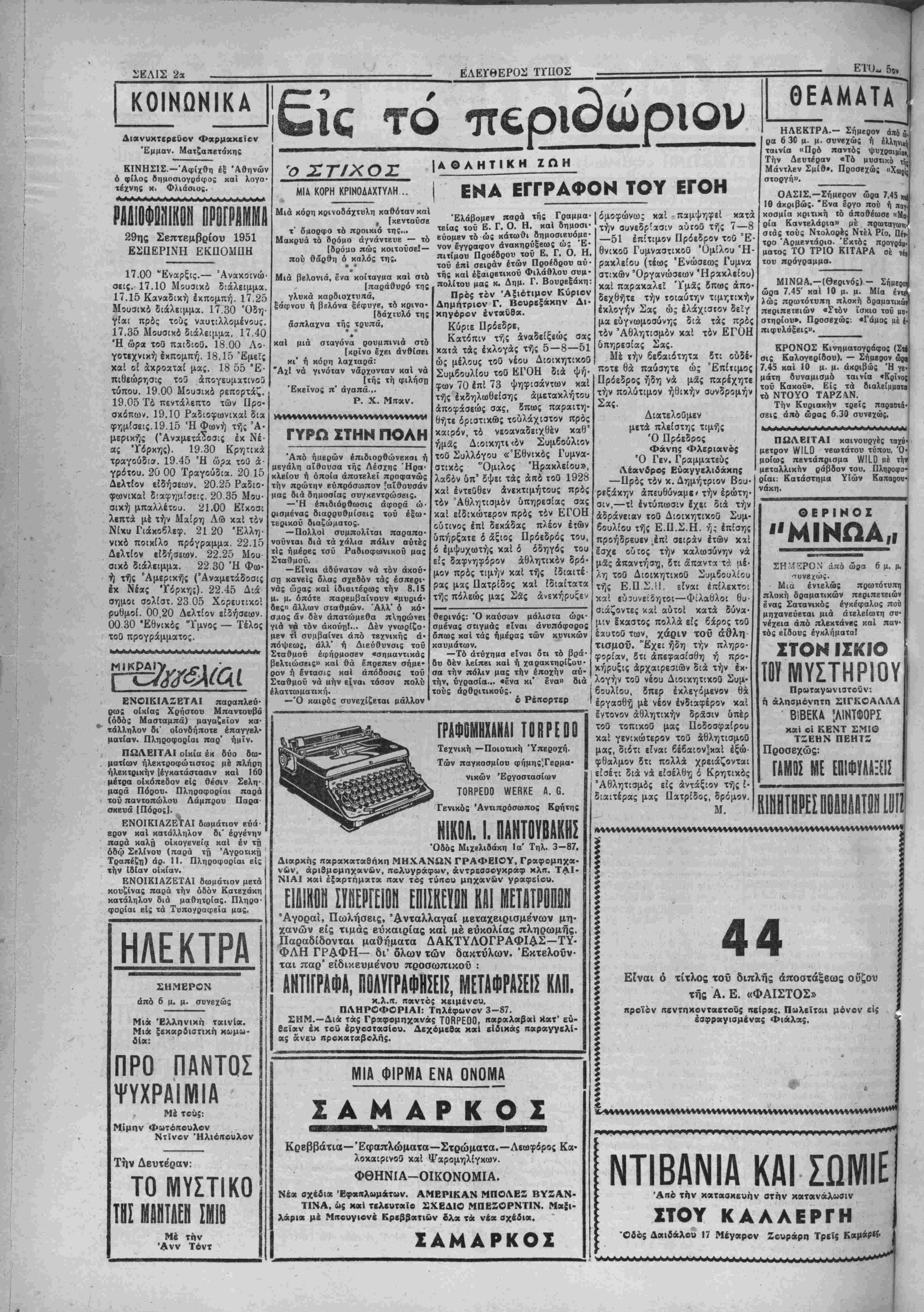 Σάββατον 29 Σεπτίμβρίου 1951