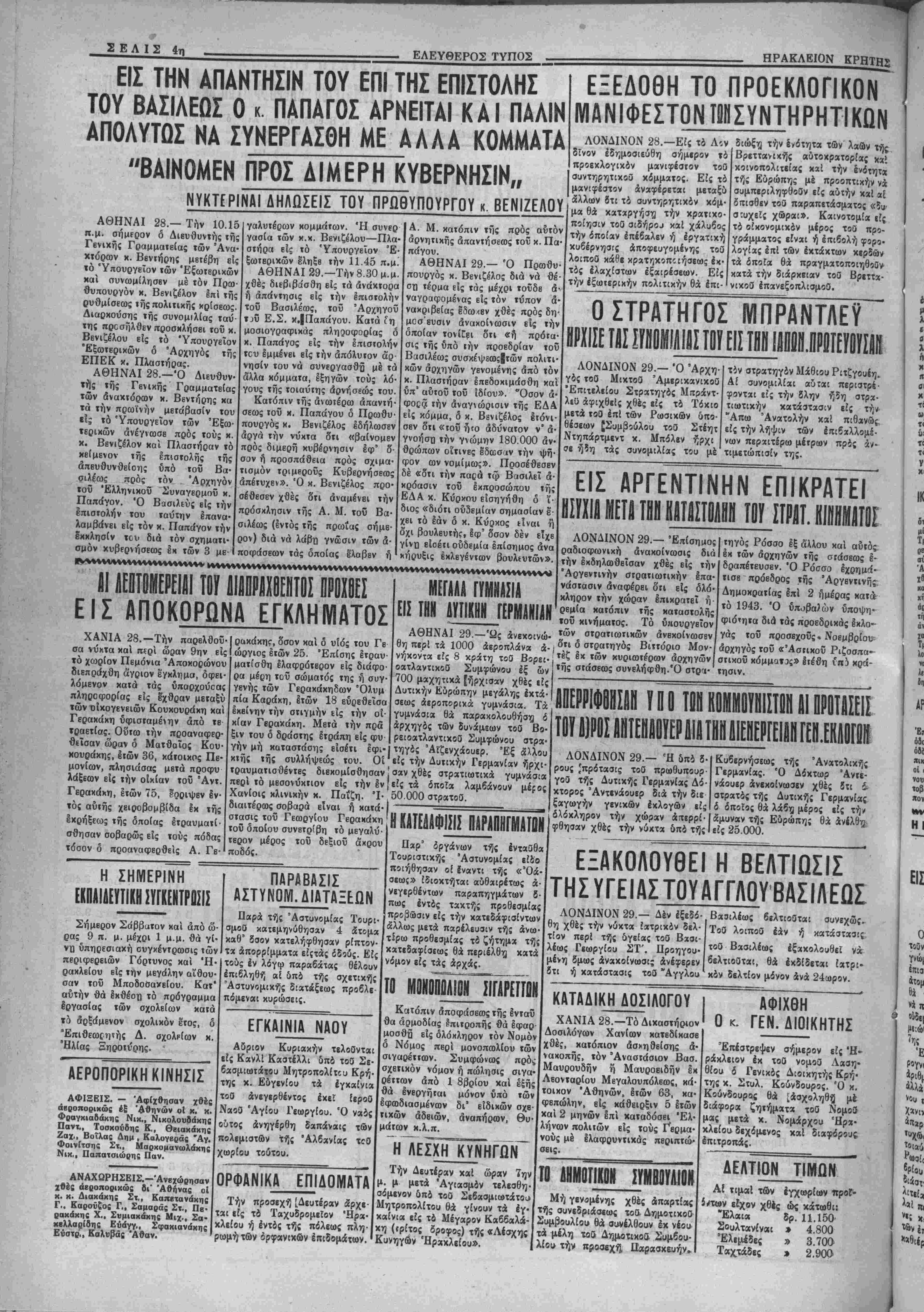 είχον χθές ώς κάτωθι: