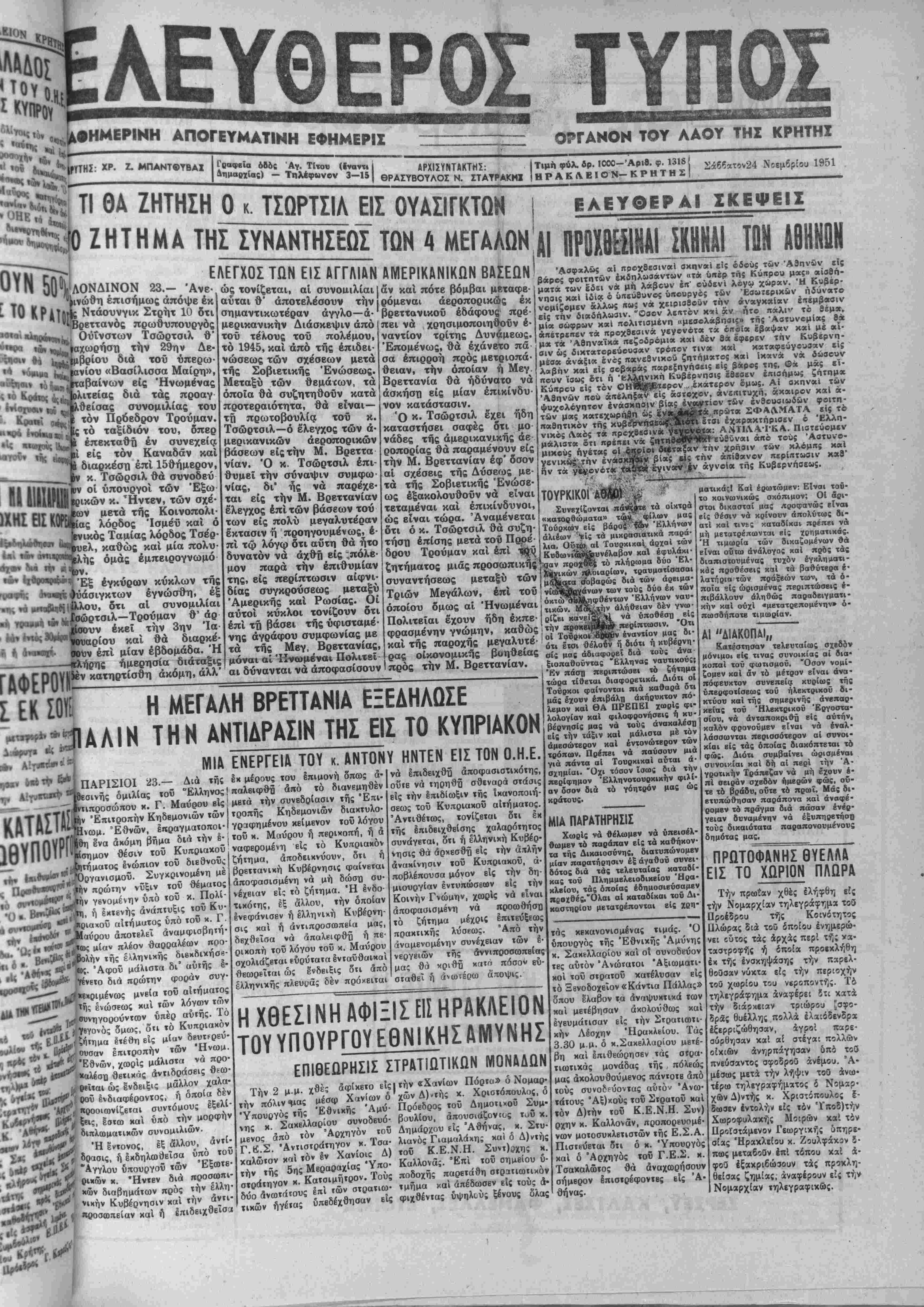 νίαν. Ό κ. Τσώρτσιλ έπι-