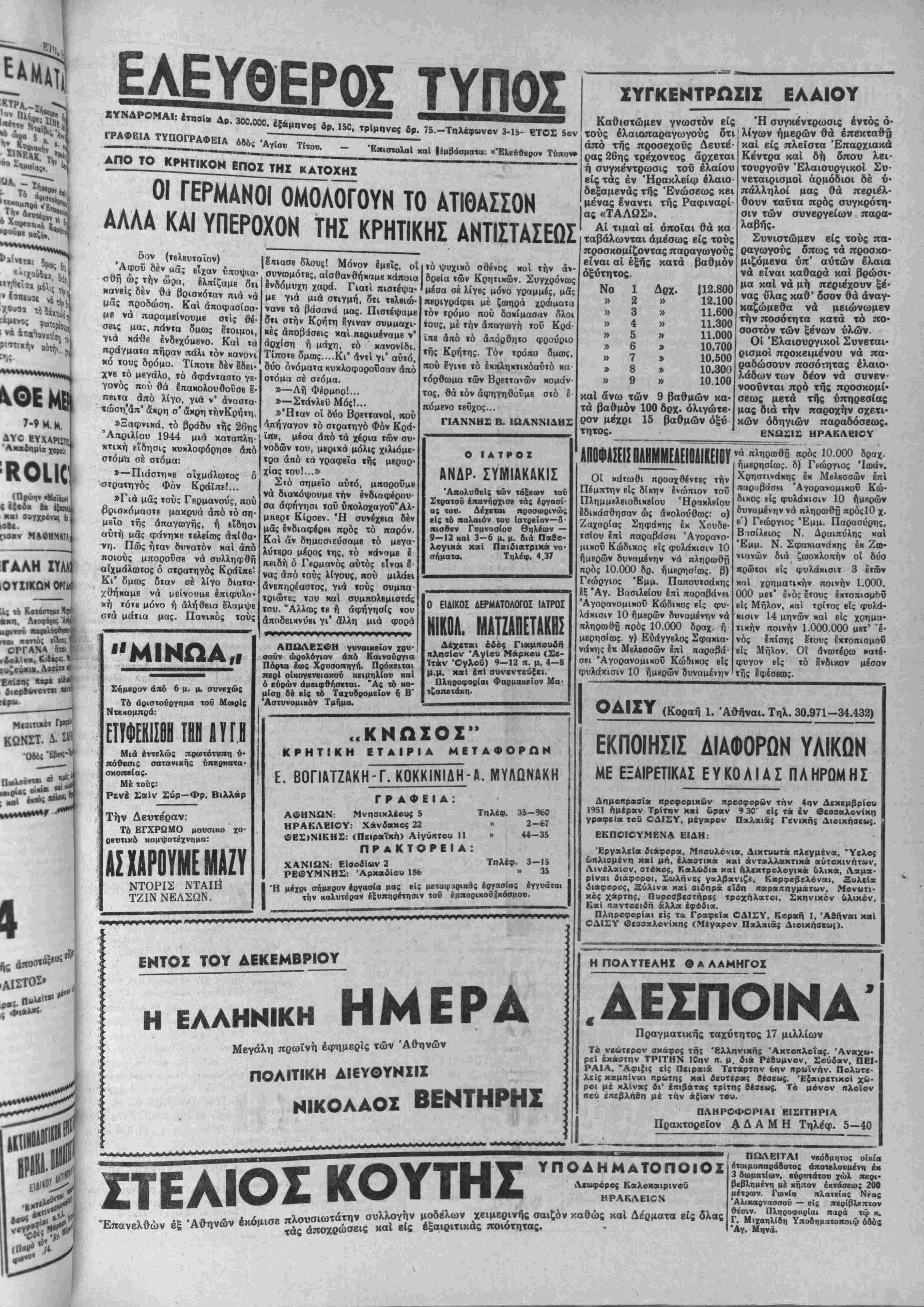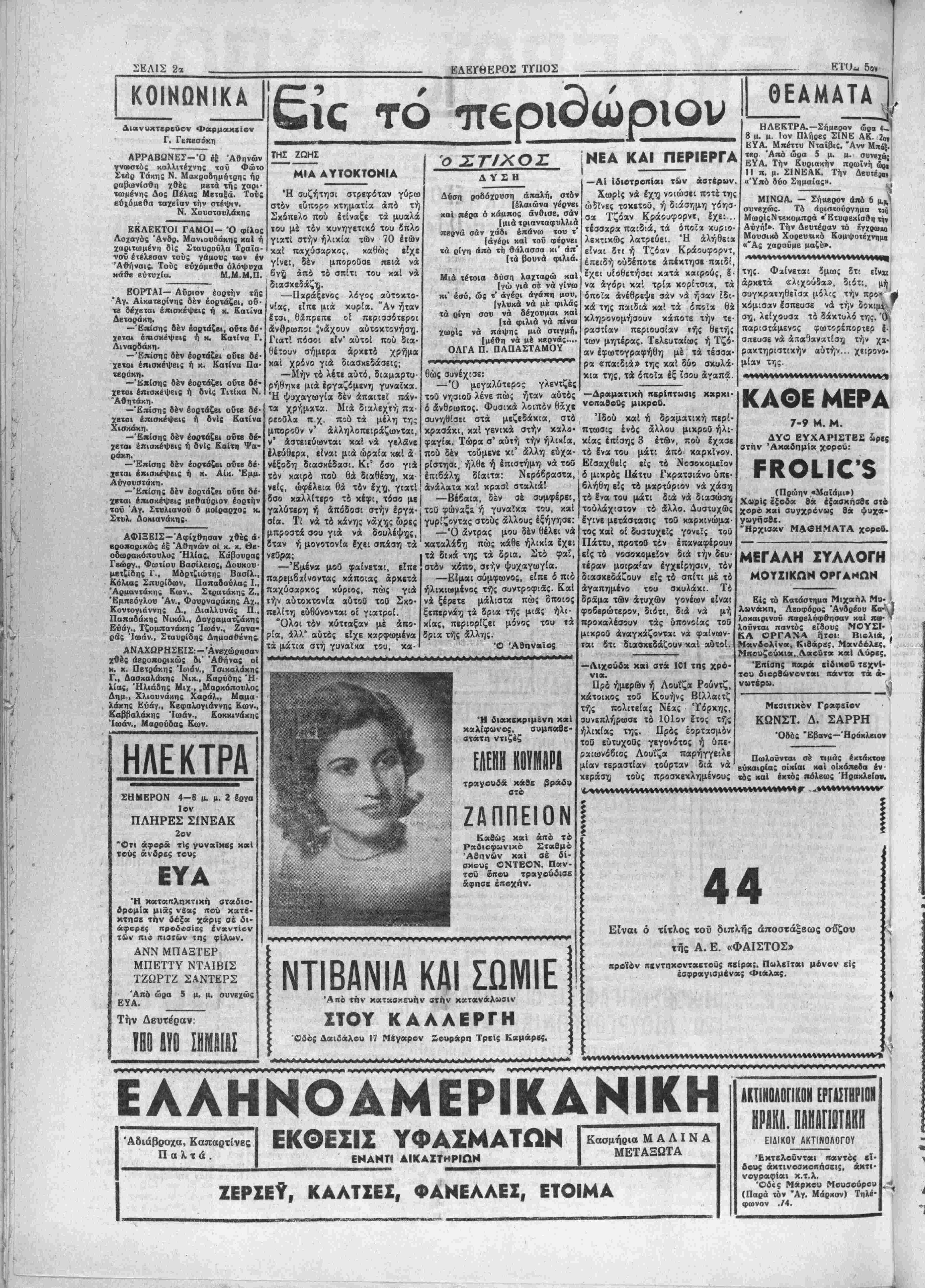 400 καί πλέονέ<ατομμύρια δραχ¬ μών, διά τής μειώσεως των τι- μολογίων των παρ' αύιής εΐσα- γομένων εκ τοΰ Ιξωτεριχοΰ βάσει τοϋ συστήμαΐος των Ίδιωτικών σνιαλλαγών Ιμπορβυμάτων. Μέ· χρι τοΰδε ίϊπκκαλύφθη δτι ή σπεΐρα ε'ισήγαγβ δια τής μβθό- δου των ύποτιμημένων τιμολο- γίων χαί Ικανήν ποσότητα έξαρ· τημάτων στυλογράφοον διά τοΰ Α^^Α^ε^^Β^Λ^Β^^ε^^ε^Α^ι^^Λε^ε^&^ε^ε^^^β^^^ε^ε^β^ε^β^ε^ρ^εΜ ΕΟΡΤΑΙ.— Αυριον εορτήν "Αγ. Αικατερίνης δέν έορτάζβι ού τε βέ· χβται έπισκέψβις ή ΔνΙς Τιτίκα Σπιθάκη. —Έπίσης δέν έορτάζβι αύριον ή χ. Αίκατερίνη Στ. Καστρινάκη. —Μεθαύριον εορτήν τού 'Δγ(ου Στνλιανοϋ βέν έορτάζει ό χ. Στυ¬ λιανός Καστρινάχης. —Έπίσης βέν έοοτάζει ό χ. Στυλ. Βογιατζβκης, λογίζονται εί; 50 έκατομμύρκι δραχμών. Παραλλήλως συνβχί- ζονται αί άνακρίσβις καί διά την απόπειραν βίσαγωγής 42 κιβώ¬ τιων άναπτήρων ίχ τοΰ έκτελω- νισμοϋ των δποίοον θά εζημιοΰ- το τό δημόσιον περί τά 200 έ καί. δραχ. Τοιουτοιρόαως ου*ν πολογιζομένη; χαί τής διαφύγη; των έιέρων 25 κιβωτίων άναπτη- ρων, ών οί δασμοί ανήρχοντο είς 136 έκατομμύοια δρ. τό δη¬ μόσιον θά έζνμ'θϋτο έκ της δια¬ φύγη; δασμών ηβρί (ά 386 Ικατ. δραχμών. "' * Η ΤΙΜΗ ΤΗ£ ΧΡΥ2Η2 ΛΙΡΑΣ5 ΑΘΗΝΑΙ 24.- Την ΙΟην η. μ. σημβρον ή τιμή της Χβυσής λίρας ήνοιξε είς δραχμάς 225.500.