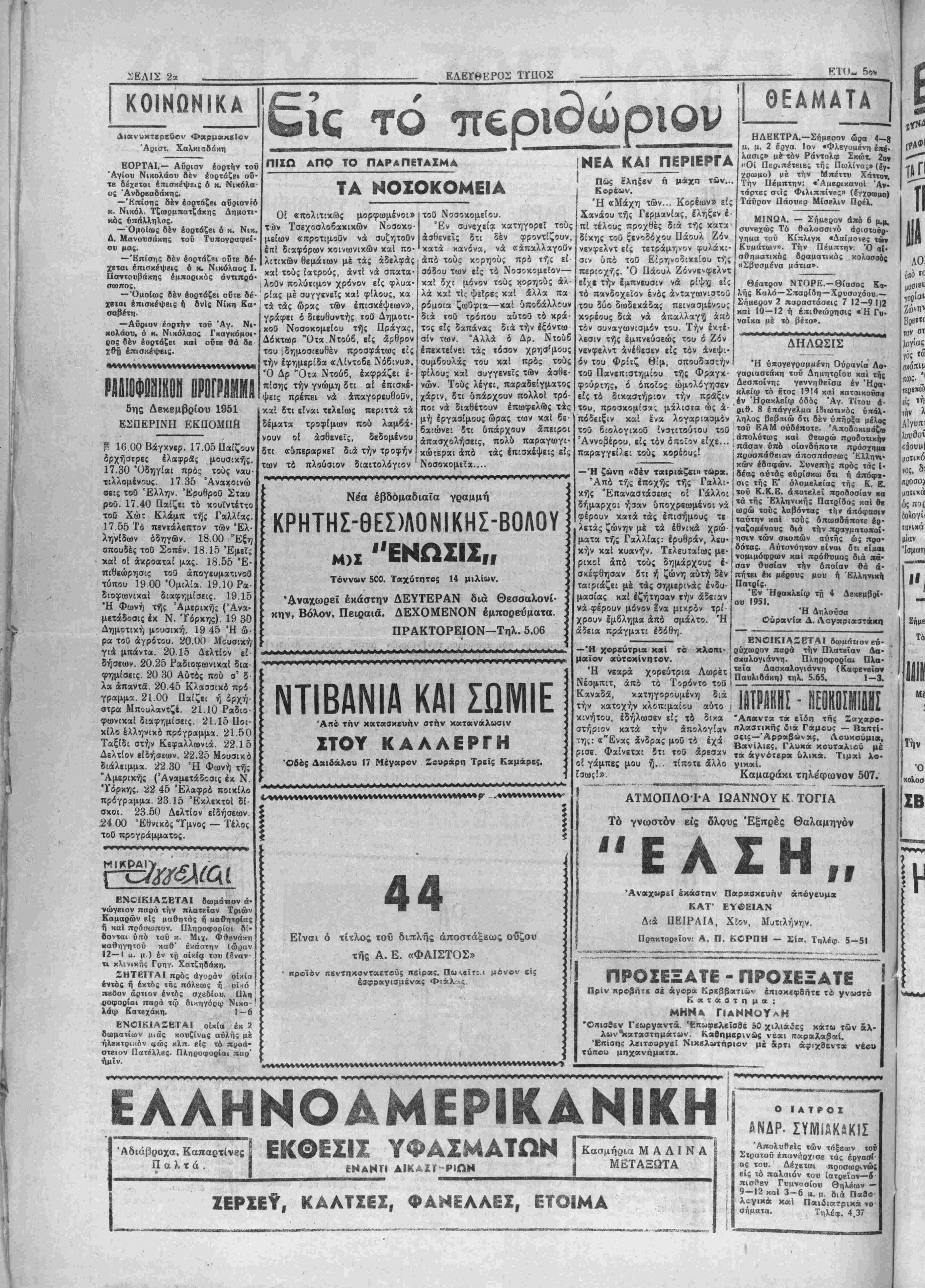 Τετάρττ) 5 ΔεχεμβρΕου 1951