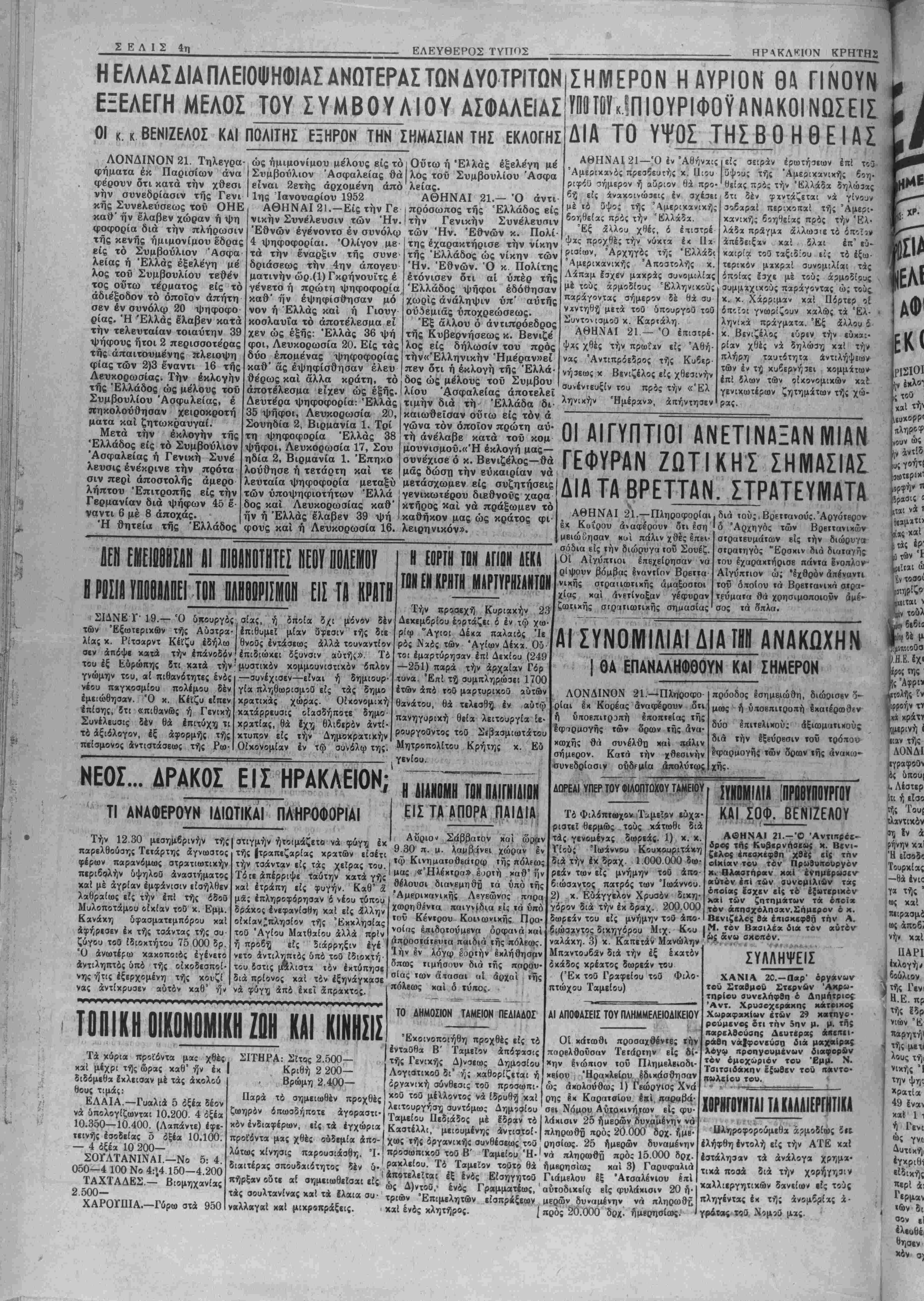 ΑΘΗΝΑΙ 21.—Πληροφορίαι, διά τού;, Βρεττανού<:.Αργότερον εκ Κυίρου άναφέρουν ότι εση (δ Άρχηγός των Βρβττανικών ΑΕΗ ΕΜΕΙΜ II ΠΙΒΒΗΟΤΗΤΕΙΗΕΟΥ ΠΟΛΕΜΟΥ ΙΡ1ΣΙ1 ΪΗΐοΊΙΙΙΕΙ ΤΟΗ ΠΛΗΒΟΡΙίΜΟπ ΕΙΣ ΤΑ ΚΡΑΤΟ ΣΙΔΝΕ Γ 19.- Ό δκουργός των Εξωτερικών τής Αύστρα- λίας κ. Ρίτσαρντ Κέϊζυ έδήλω σεν άπόψε κατά την επάνοδον οίας, ή δποία 3χι μόνον δέν έπιθυμεϊ μίαν ΰφεσιν τής διε θνοθς εντάσεως άλλά τουναντίον έπιδιώκει δξυνσιν αυτής» Τα τού έξ Εύρώπης δτι κατά την ■ μυστικόν κομμουνιστικόν ίπλον γνώμην τού, αί πιθανότητες ενός νέου παγκοσμίου πολέμου δέν έμειώθησαν. Ό κ. Κέίζυ είπεν ■έπίσης, δτι «πιθανώς ή Γενιχή Συνέλευσις δέν θά επιτύχη τι τό άξιόλογον, έξ άφορμής τής πείσμονος άντιστάσεως τής Ρω- —συνέχισβν—είναι ή δημιουρ· γία πληθωρισμοθ είς τάς δημο κρατικάς χώρας. Οίκονομιχή κατάρρευσις οίασδήποτε δημο¬ κρατίας, θά έχη θλιβερόν αντί¬ κτυπον είς την Δημοκρατικήν Η ΕΟΡΓΗ ΤΟΝ ΑΓΙΟΝ ΑΕΚΑ ίΟΠΕΗΚΡΗΤΗ ΗΑΡΤΥΡΗΣΑΗΤΟΝ Την προσέχη Κυριακήν 21 Δεκεμβριού έορτάζει ό έν τώ χω ρίψ Άγιοΐ Δέκα παλαιάς Ίε ρδς Ναός των Άγίων Δέκα. 05 τοΐ έμαρτύρησαν επί Δεκίου (249 -—251) παρά την αρχαίαν Γόρ τυνα Επί τη" συμπληρώσει 1700 έτών άπό τού μαρτυρικού αυτών θανάτου, θά τελεσθή έν αύτφ πανηγαρική θεία λειτουργία ίε· ρουργοθντος τοθ Σίβασμιωτάτου Οίχονομίαν έν τφ συνόλω της. Μητροπολίτου Κρήτης γενίου. κ. Εύ ΝΕΟΣ... ΔΡΑΚΟΣ ΕΙΣ ΗΡΑΚΛΕΙΟΝ; ΤΙ ΑΝΑΦΕΡΟΥΝ ΙΛΙΩΤΙΚΑΙ ΠΛΗΡΟΦΟΡΙΑΙ Την 12 30 μεαημδρινήν τής Ι στιγμήν ήτοιμάζετο νά φύγη έχ Λ Α Ι ΓΪ1 Ψ V ' — Δγ »» ί — 5 / II ΛΙΑΝΟΜιί ΤΟΝ ΠΑΙΓΝΙΑΙΟΝ ΕΙΣ ΤΑ ΑΠΟΡΑ παρελθούσης Τετάρτης ιδγνωστος φέρων παρανόμω; στρατΐωτικήν περιβολήν ΰψηλοθ άναστήματος καί μέ αγρίαν εμφάνισιν εισήλθεν λαθραίως είς την επί τής έδοϋ Μυλοποτάμου οικίαν τοθ κ. Εμμ. Κανάκη υφασματεμπόρου καί αφήρεσεν έκ τής τσάντας τής ου ζύγου τοθ ίδιοκτήτου 75 ΟΟΟ δρ. Ό ανωτέρω κακοποιός εγένετο άντιληπτός 6πό τής οίκοδεσποί· νης ήτις έξερχομένη τής κουζί νας άντίκρυαεν αυτόν καθ' ήν τής αρίας κρατών εισέτι "- την τσάνταν είς τάς χείρας τού. Τό τε απερριψε Ταύτην κατά γής ' καί ετράπη είς φυγήν. Καθ' ά" μα; επληροφόρησεν έ νέου τύπου δράχος ενεφανίσθη καί είς δλλην οίχίαν^πλησίον τής Έκχλησίας τοθ Άγίου Ματθαίου άλλά πρίν ή προζ% είς διάρρηξίν έγέ νετο άντιληπτός υπό τοθ ίδιοκτή· τού βστις μΐλιστα τόν εχτύπησε διά πρίονος χαί τόν εξηνάγκασε νά φύγη άπό έχεΐ δπρακτος. - θέλουσι Άμερ Τ0Π1ΚΗ ΟΙΚΟΝΟΜΙΚΗ ΖΟΗ ΚΑΙ ΚΙΝΗΣΙΣ Τά κύρια προϊόντα μαε χθές ΣΙΤΗΡΑ: Σΐτος 2.500— καί μέχρι τής ώρας καθ' ήν έκ | Κριθή 2 200— διδόμεθα εκλεισαν μέ τάς άκολού θους τιμάς: ΕΛΑΙΑ— Γυαλιά 5 δξέα δέον νά δπολογίζωνται 1Ο.2ΟΟ. 4 δξέα 10.350—10.400. (Λαπάντε) ίφβ- «ινής εσοδείας 5 δξέα 1Ο.1ΟΌ. — 4 δξέα 10 200— ΣΟΓΛΤΑΝΙΝΑΙ—Νο 5: 4. 050—4 100 Νο 4:14 150—4.2ΟΟ ΤΑΧΤΑΔΕΣ— Βιομηχανίας 2 500- ΧΑΡΟΓΠΙΑ.—Γύρω στβ 950 Βρώμη 2.400— Παρά τό σημειωθέν προχθές ζωηρόν όπωσδήποτε άγοραστι· κόν ένδιαφέρων, είς τά έγχώρια προϊόντα μας χθές ούδΐμία βπο- λΰτως κίνησις παρουσιάσθη. Ί· Ιοριή καθ' ην τα υπό ίής Λβγεώνος πορα χωρηθβντα παιγνίδια Είς ΐά υπό τοϋ Κένιρου Κοινωνΐχής Προ¬ νοίας έπιδοτούμενα όρφανά χαί απροστάτευια παιδία τής πόλεως. Ίήν §ν λόγφ εορτήν Ιχλήθησρν δπως ΐιμήσουν διά τϋς «σρου· οίας των άπασαι αί αρχαί της πόλΐως και ό τΰηος. ΤΟ ΔΗΜΟΣΙΟΝ ΤΑΜΕΙΟΝ ΠΕΔΙΑΔΟΣ "Εκοινοποιήθη προχθές είς τό ένταθθα Β' Ταμείον απόφασις τής Γενικής Δ)νσεως Δημοσίου ΛογιστικοΟ δι' ή"; καθορίζεται ή δρνανική σύνθεσις τοθ προσωπι· κοθ τοθ μέλλοντος νά ιδρύθη καί λειτουργήση συντόμως Δημοσί