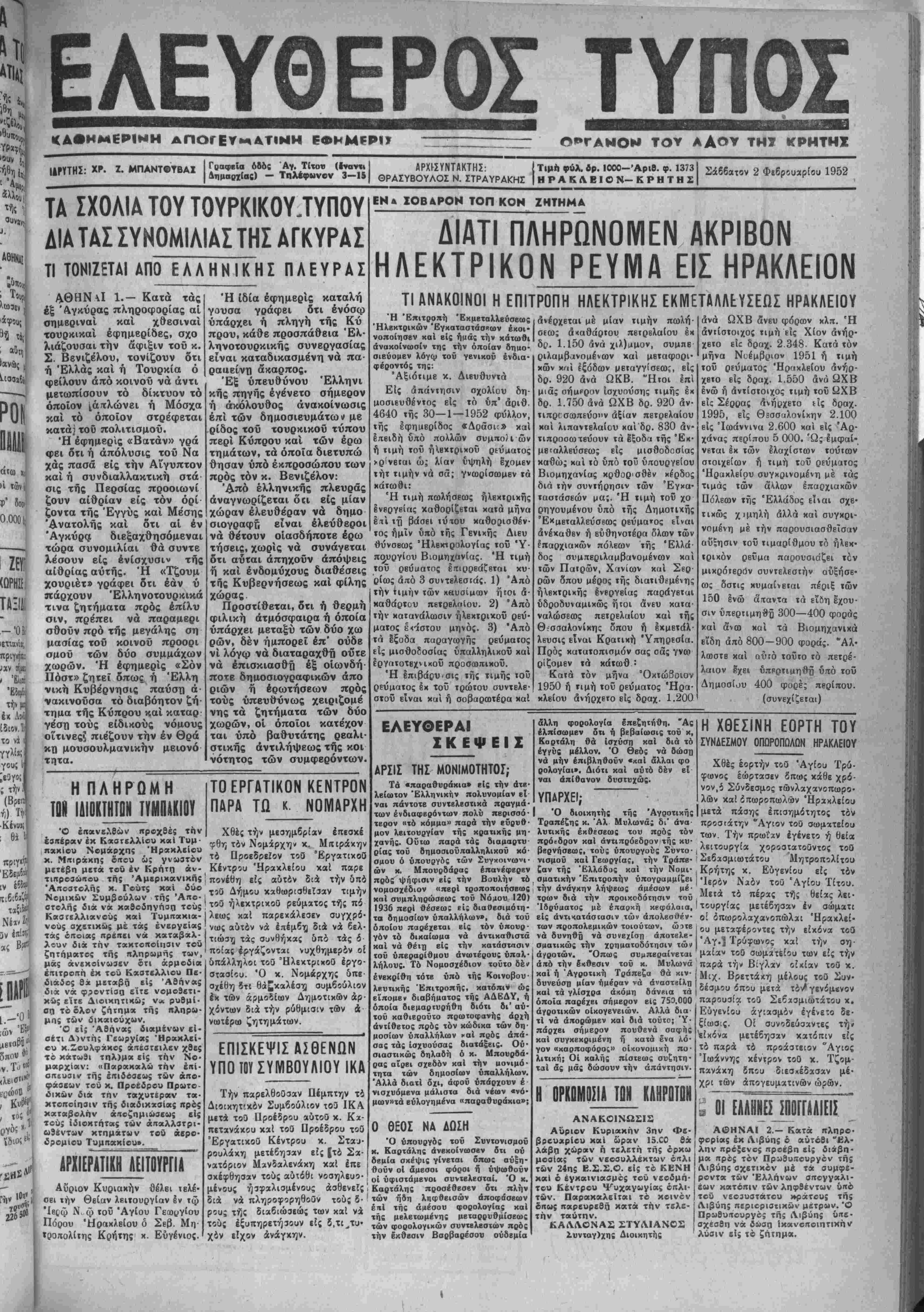 Σάββατον 2 Φεβρουχρίου 1952
