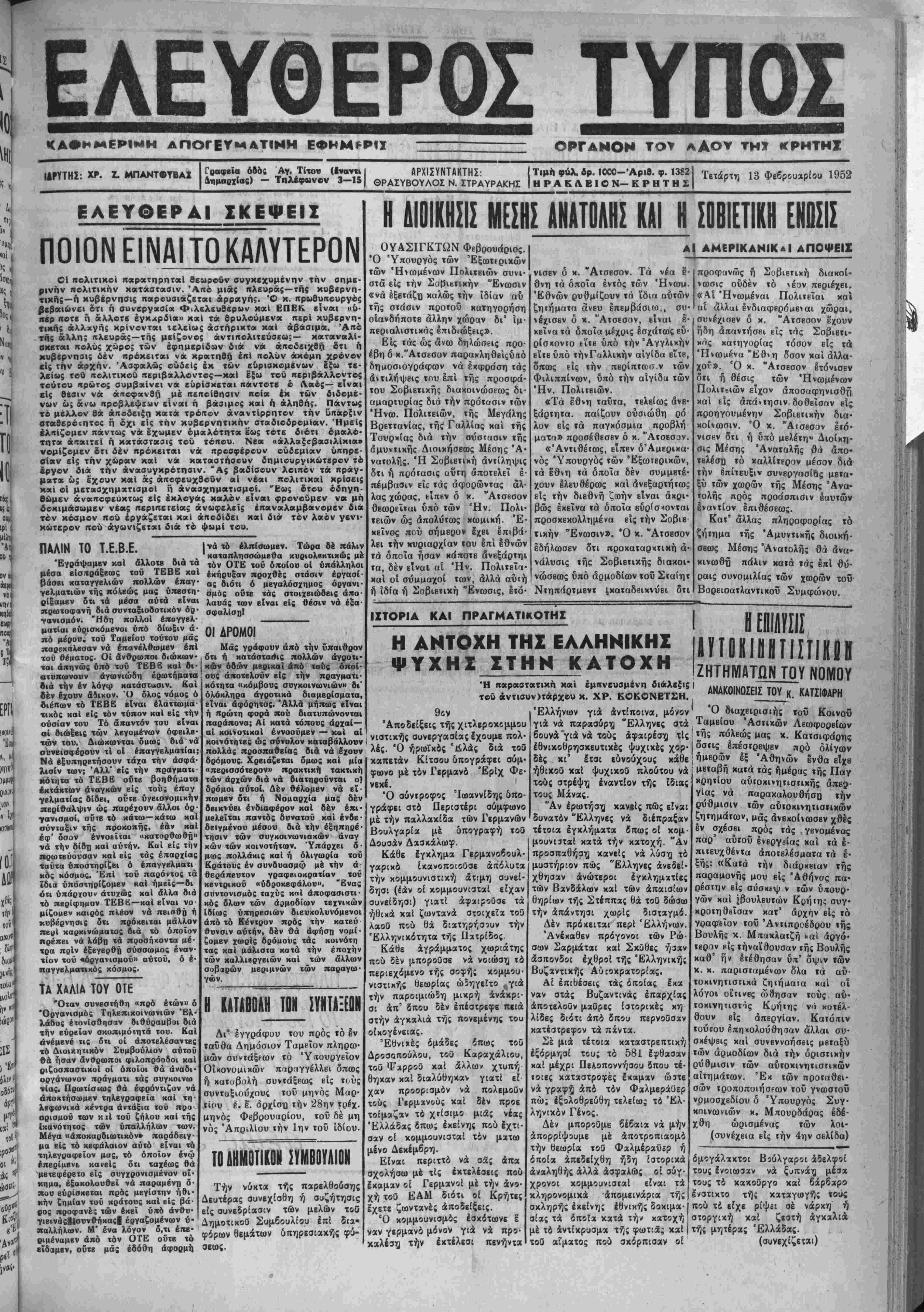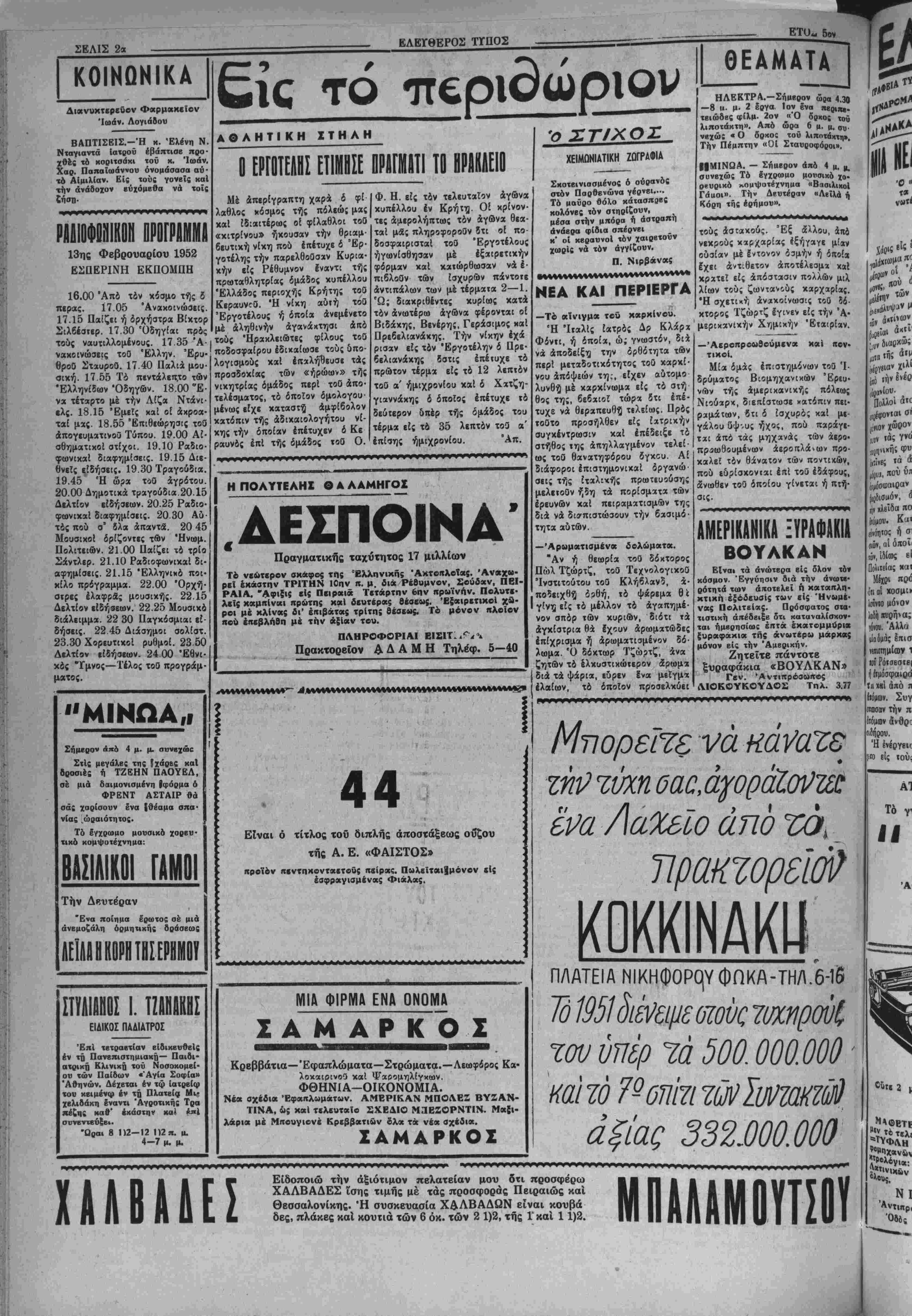 Τετάρτη 13 Φεβρουαρίου 1952