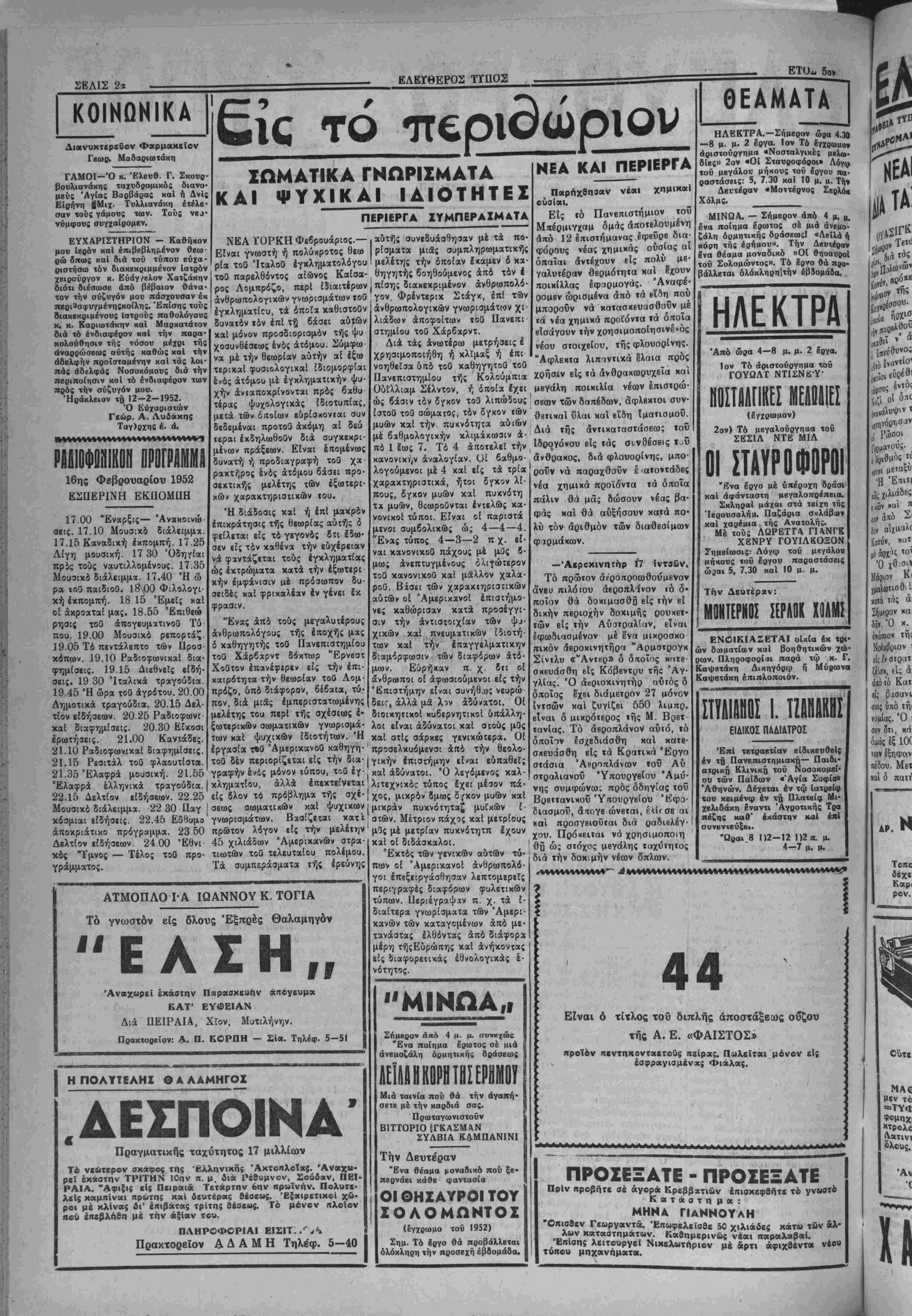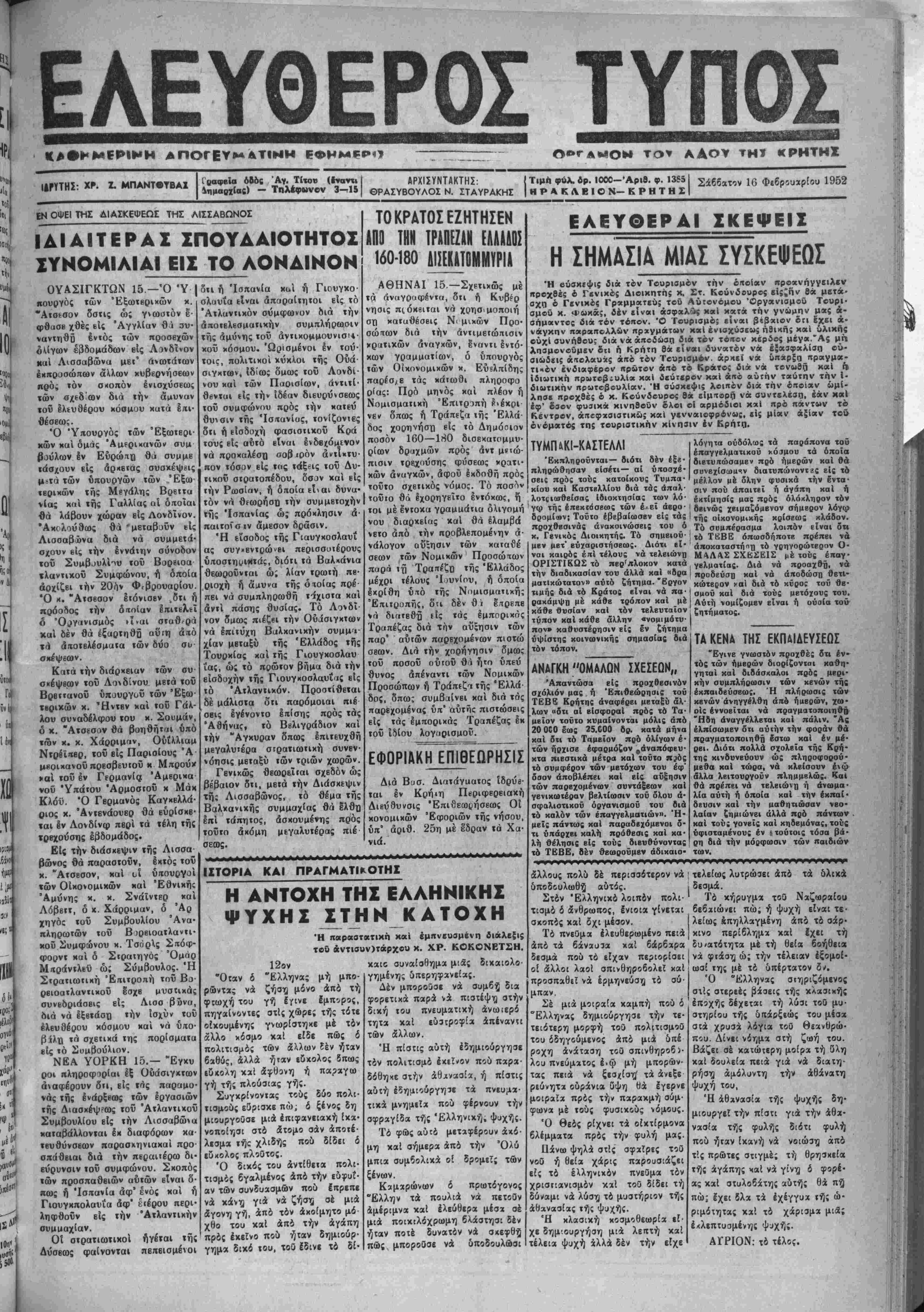 Ιραφβία όδός Άν. Τίτον (έναντι Ι ΑΡΧΙΣ ΥΝΤΑΚΤΗ Σ: Ι Τιμίι φβλ. δρ. 1000-Αριβ. φ. 13551 Σάββατον 10 ΦεβρουαρΕου 1952