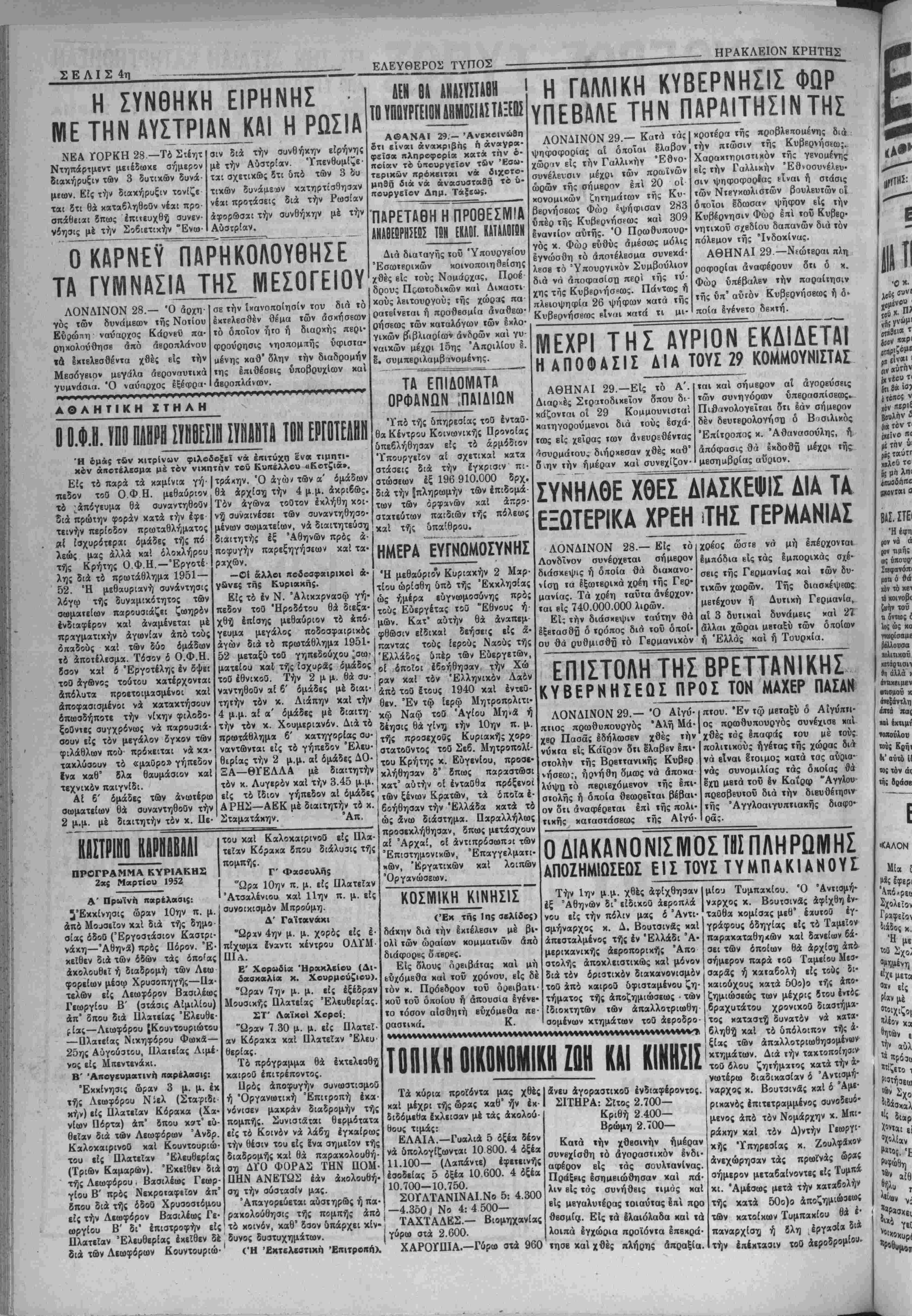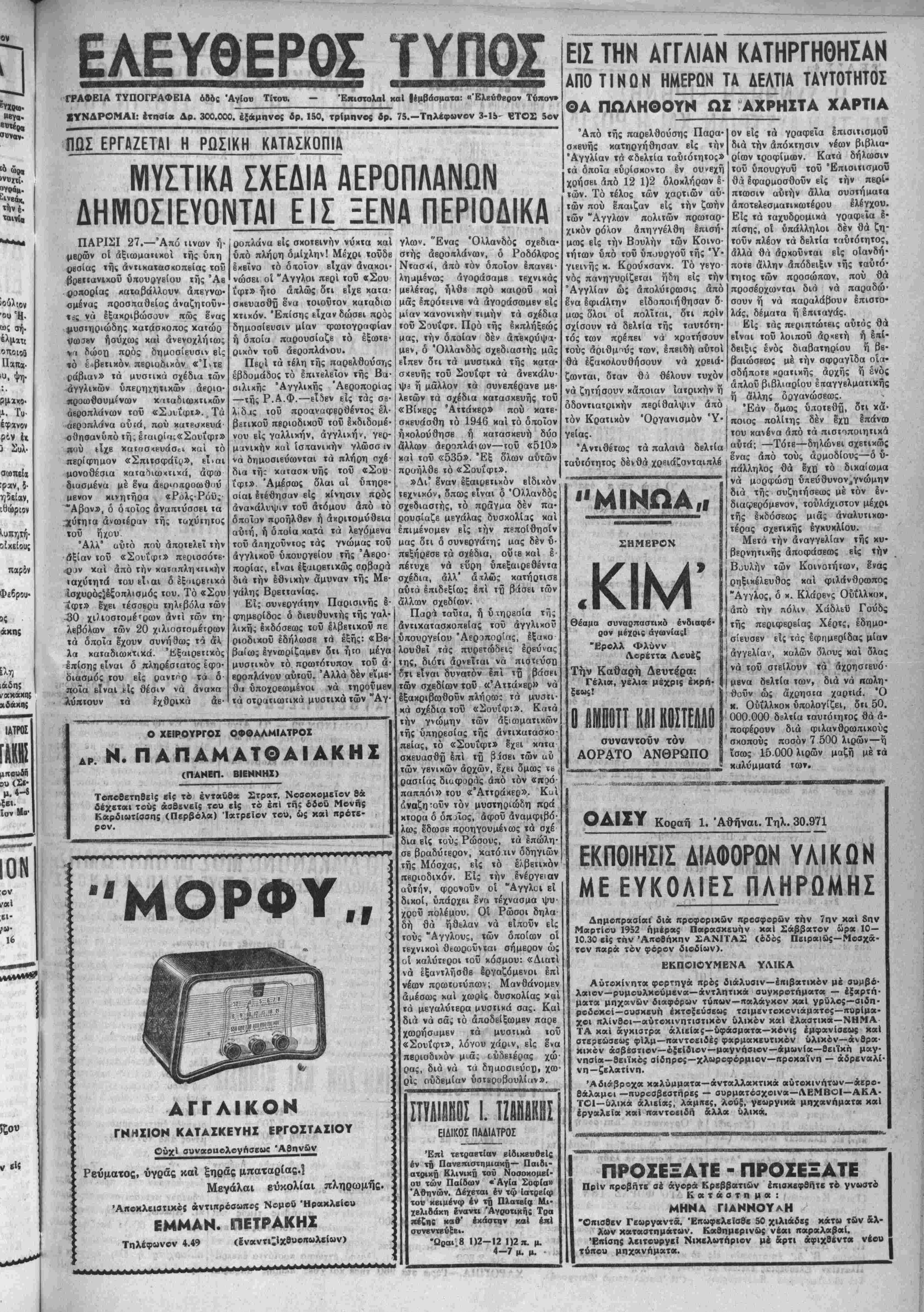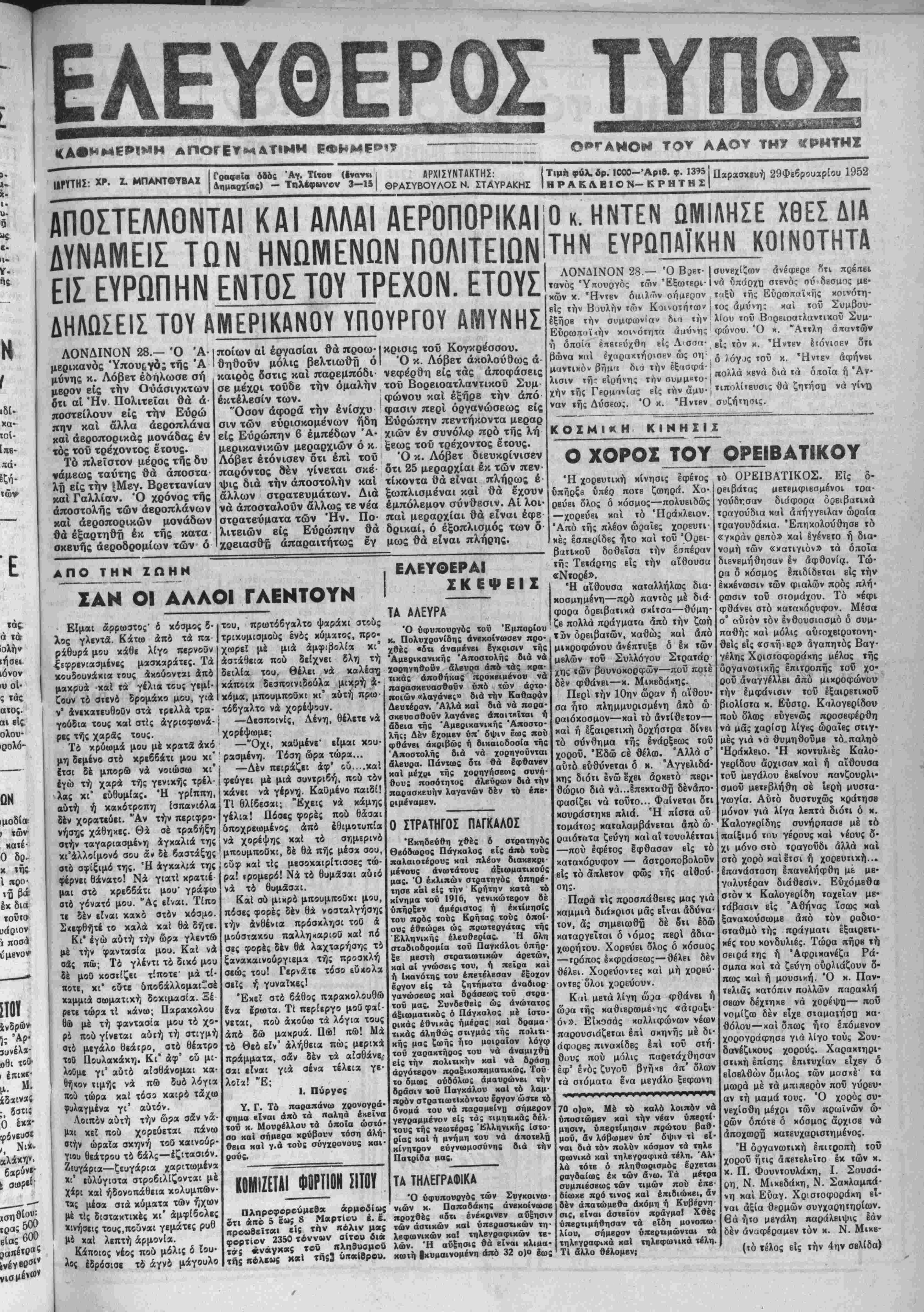 Εύοωπ<>ϊ·<ήν κοοόττιτα αμύνης ή όποία επετεύχθη είς Α'σσα· βώνα ναι Ιχιιρακτήονσεν ώς ση¬ μαντικόν βήμα δια την εξασφά¬ λισιν τή- ειρήνης την συμμετο¬ χήν τής Γερμηνίας είς την άμυ¬ ναν τής Λύσεως. Ό κ. Ήντβν (συνεχίζων άνέφερβ ητι πρέπΒΐ Ινα υπάρχη στενός ούνδβσμος με· ταξύ τής Εύρα)παϊ<ής χοινότη- τος αμύνης χαί τοϋ Συμ3ου- 1 λίου τοΰ Βορβιοατλαντικοΰ Συμ- φώνου. Ό «. Άττλη απαντών , βΐς τόν χ. Ήντβν ετόνισεν δτι ό λόγος τού κ. Ήντεν άφηνει Ι πολλά χβνά διά τα όποΐα ή Άν· Ι τιπολίτευσις θά ζητήστι νά γίντι συζήιησις. ΚΟΖΜΙΚΗ ΚΙΝΗΣΙΣ Ο ΧΟΡΟΣ ΤΟΥ ΟΡΕΙΒΑΤΙΚΟΥ ΑΠΟ ΤΗΝ ΖΩΗΝ ΣΛΝ ΟΙ ΑΛΛΟΙ ΓΛΕΝΤΟΥΝ ΕΛΕΥΘΕΡΑ! ΣΚΕΨΕΙΣ Είμαι άρρωατος" ό" κόσμος δ- λος γλενταό Κάτω άπό τα πά ρίθυρά μου χάθε λίγο πβρνοθν ^εφρενιασμένες μαακαράτες. Τα χουδουνάκια τους ακούονται άπό μακρυά καί τα γέλια τού; γεμί- ίουν τό στενό δρομάκο μου, για ν* άνεκατευθοθν ατά τρελλά τρα· γούδια τους καί στίς άγριοφωνά- ρ«ς τής χαρ«ς τους. Τό κρύωμά μου μέ χρατα ακό μη δεμένο στό κρεβδάτι μου κι' Ιτσι δέ μπορώ νά νοιώοω κι' ίγώ τή χαρ» τής γενικάς τρέλ- λας κι" εύθυμίας. Ή γρίππη, αυτή ή καχοτροπη ίσπανιόλα δέν χορατευει. "Αν την περιφρο· νήοης χάθηκες. Θά σέ τραβήξη οτήν ταγαριααμένη άγκαλιά της χι'άλλοίμονό σου ά"»· δέ βαστάξης οτό σφίξιμό της. Ή άγκαλ;ά της φέρνει θάνατο! Νά γιατί χρατιέ μαι οτό κρεββατι μου' γράφω οτδ γόνατό μου. "Ας είναι. Τίπο τε δέν είναι κακό στόν κόσμο. Σκεφθήτε το καλά καί θά δήτε. Κι' έγώ αυτή την ώρα γλεντώ μέ την φαντασία μου. Καί νά σας π&; Τό γλέντι τό δικό μου ?έ μοθ κοστίζει τ'.ποτε' μά τί ποτε, κι' οδτε δποβάλλομαιΞσέ καμμιά σωματική δοκιμασία. Ξέ ρετε τώρχ τί χανιά; Παρακολου θδ> μέ τή φαντασία μου τό χο-