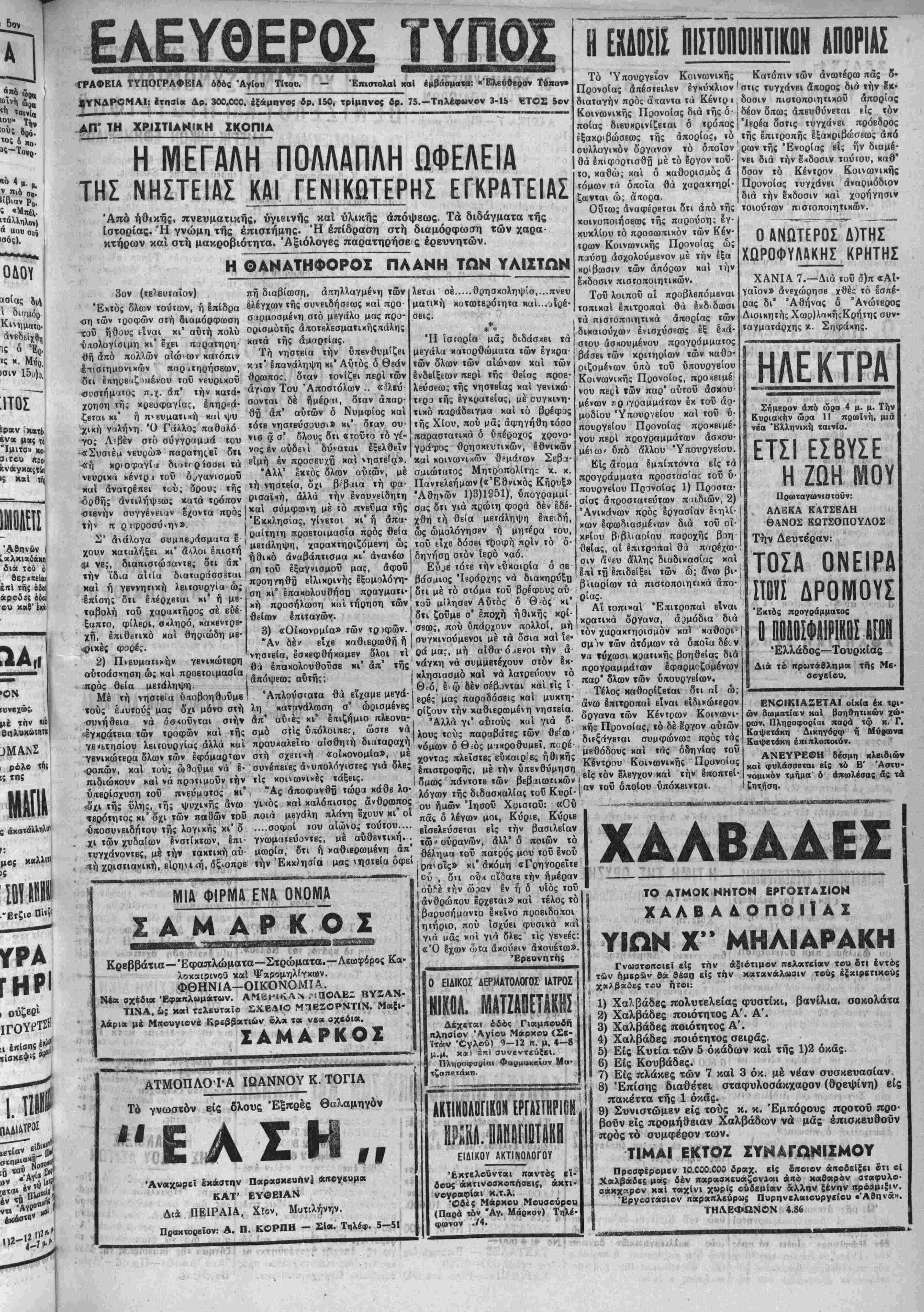 Σάββατον 8 Μαρτίου 1952