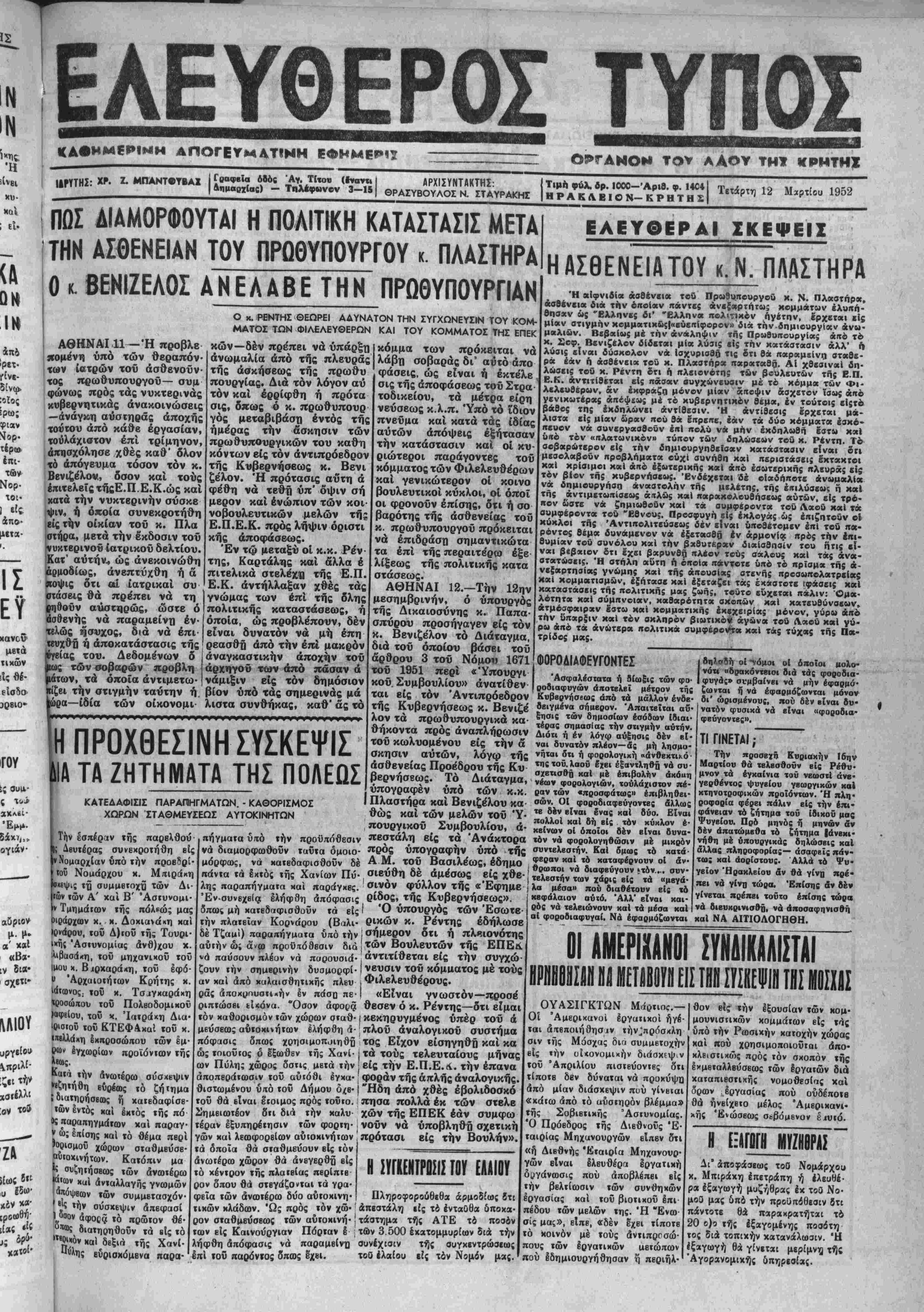 ν-ήν λύσιν τοΰ Εητήματος καί της ΤΓιβΙ**ν 1952-1953. Ο πρ'.ϋηο-