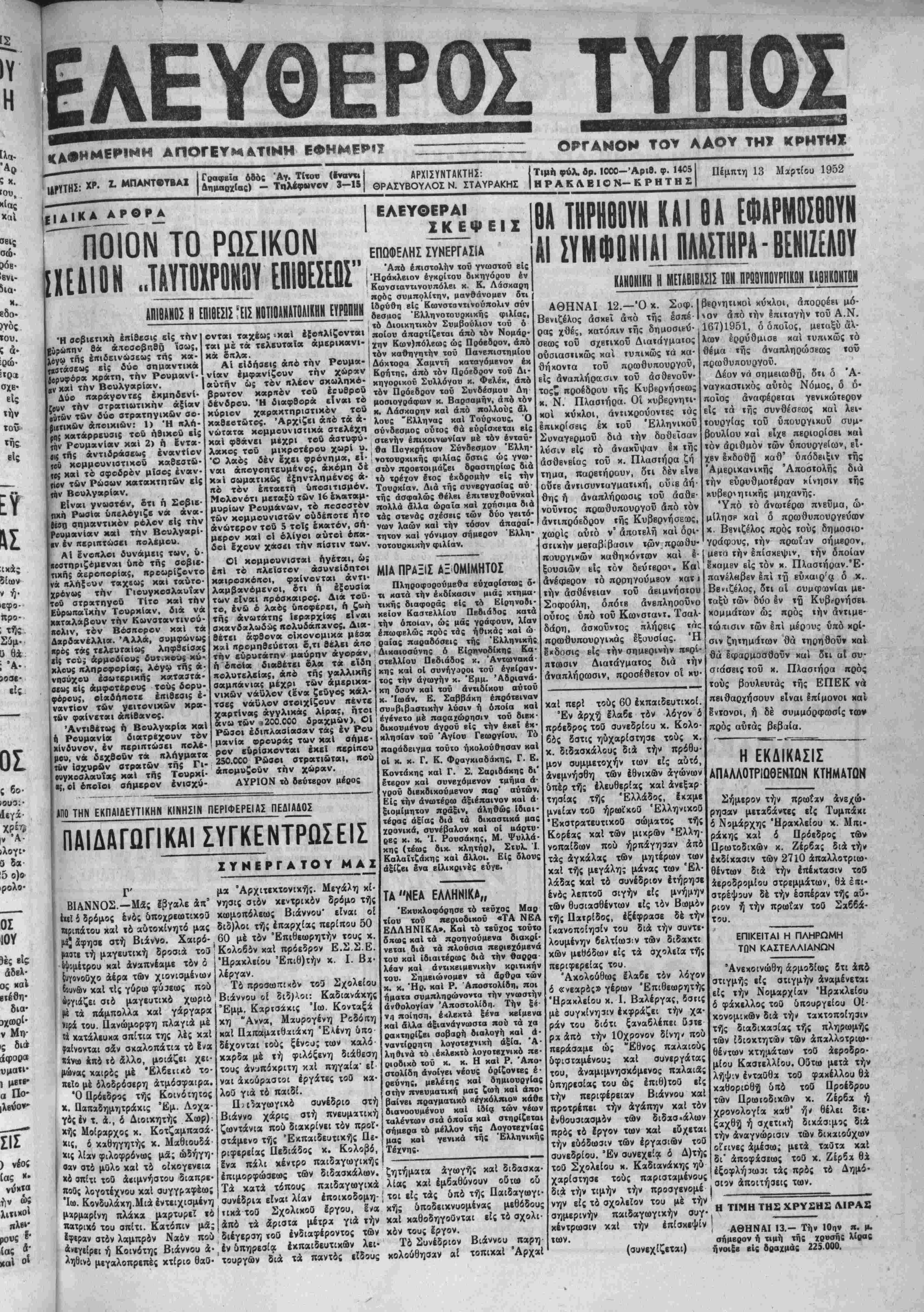 "Ηράκλειον τ? 12 Μαρτίου 1952