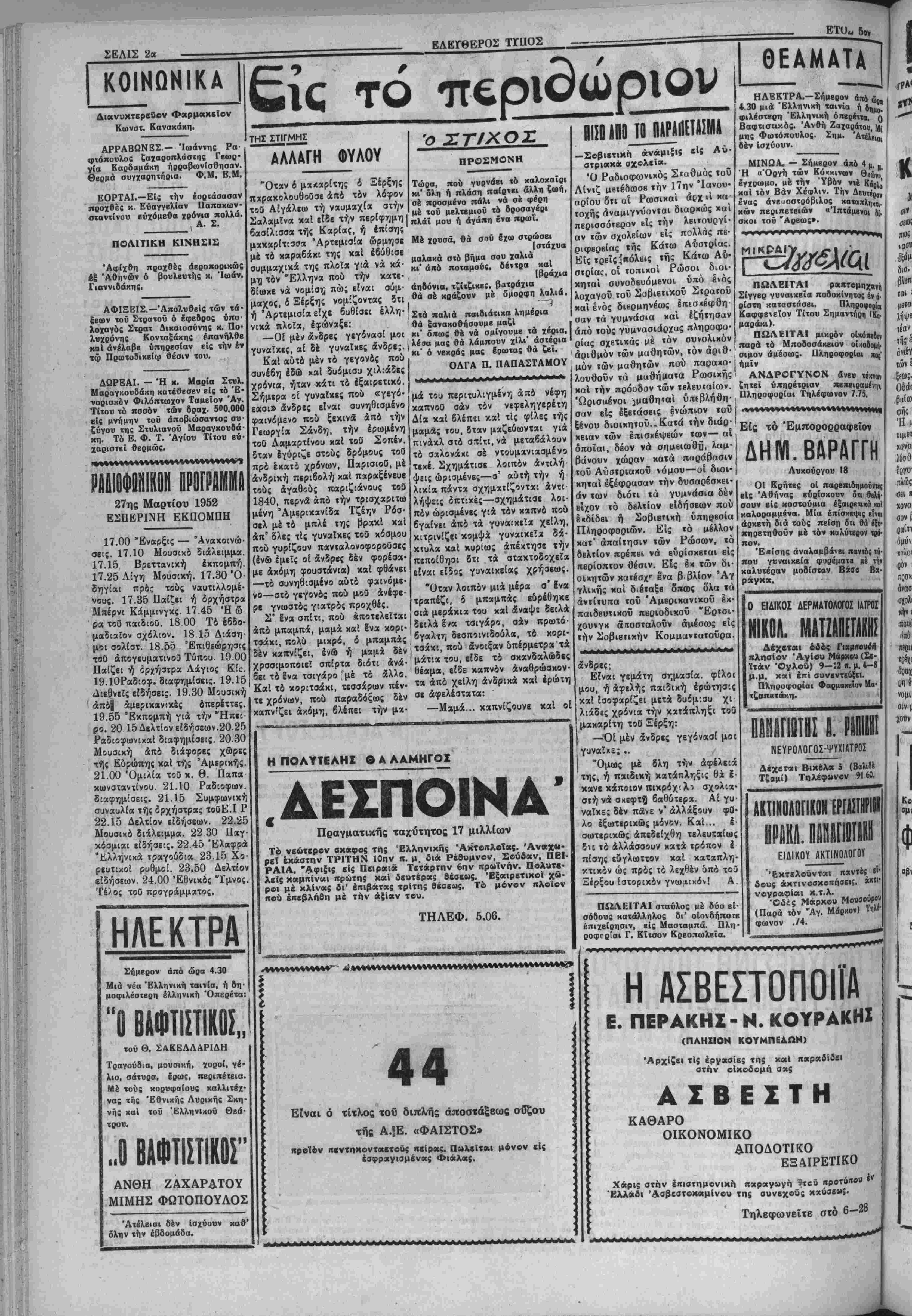 Πέμπτη 27 Μαρτίου 1952