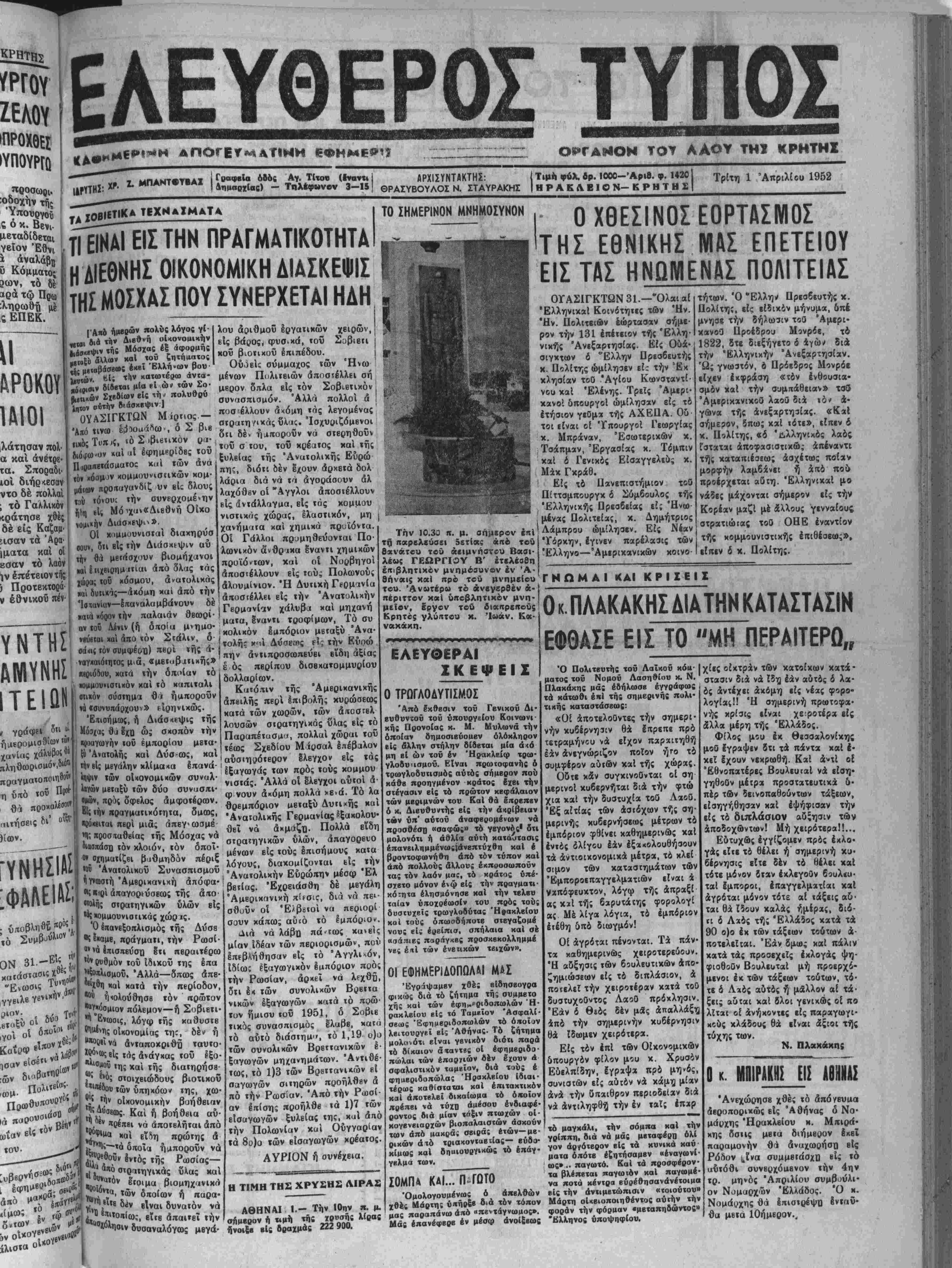 Τρίτη 1 Απριλίου 1952