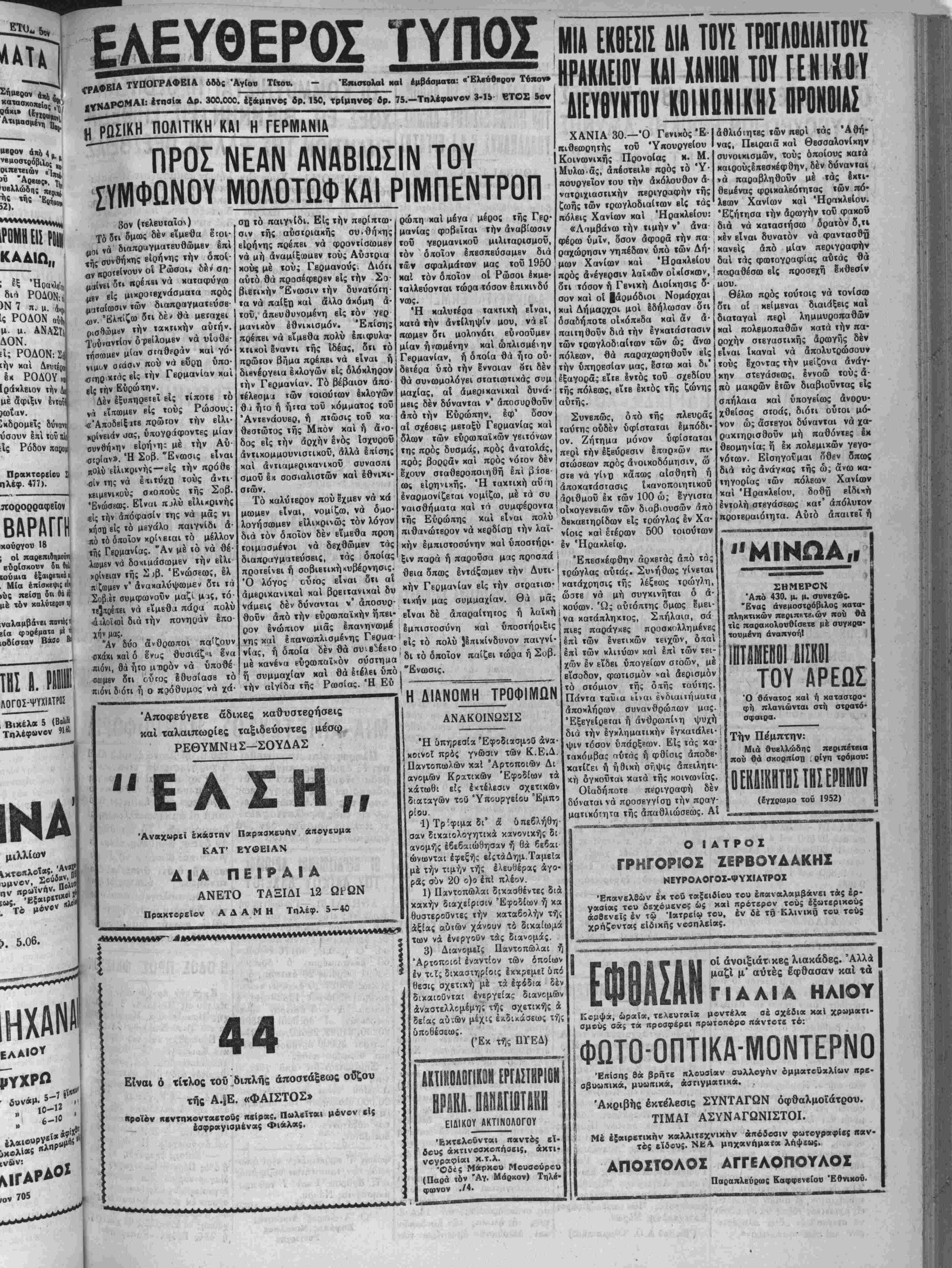 Έν Χανίοις 27 Μάρτιον 1952