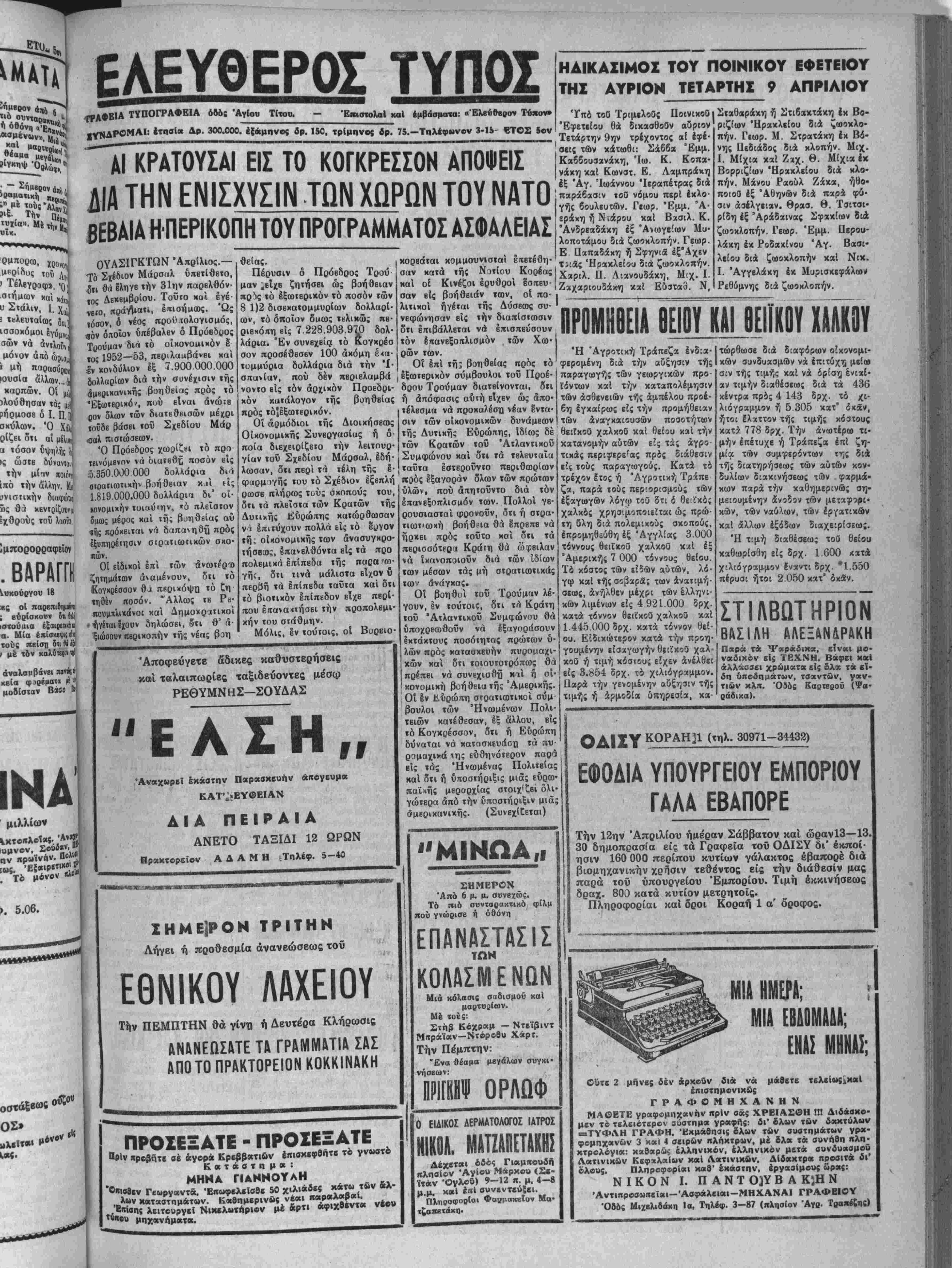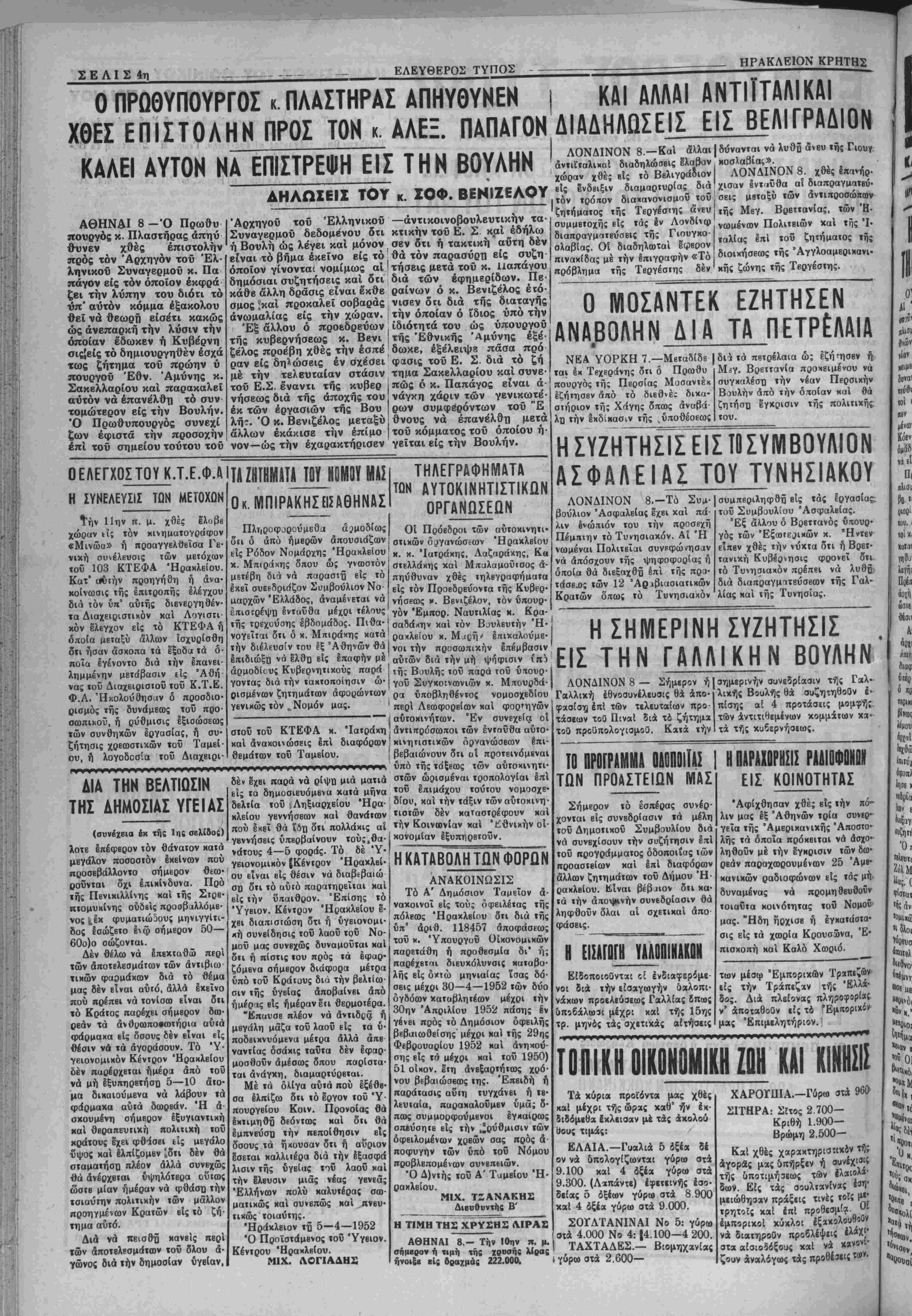 •Ηράκλειον τή 5—4—1952