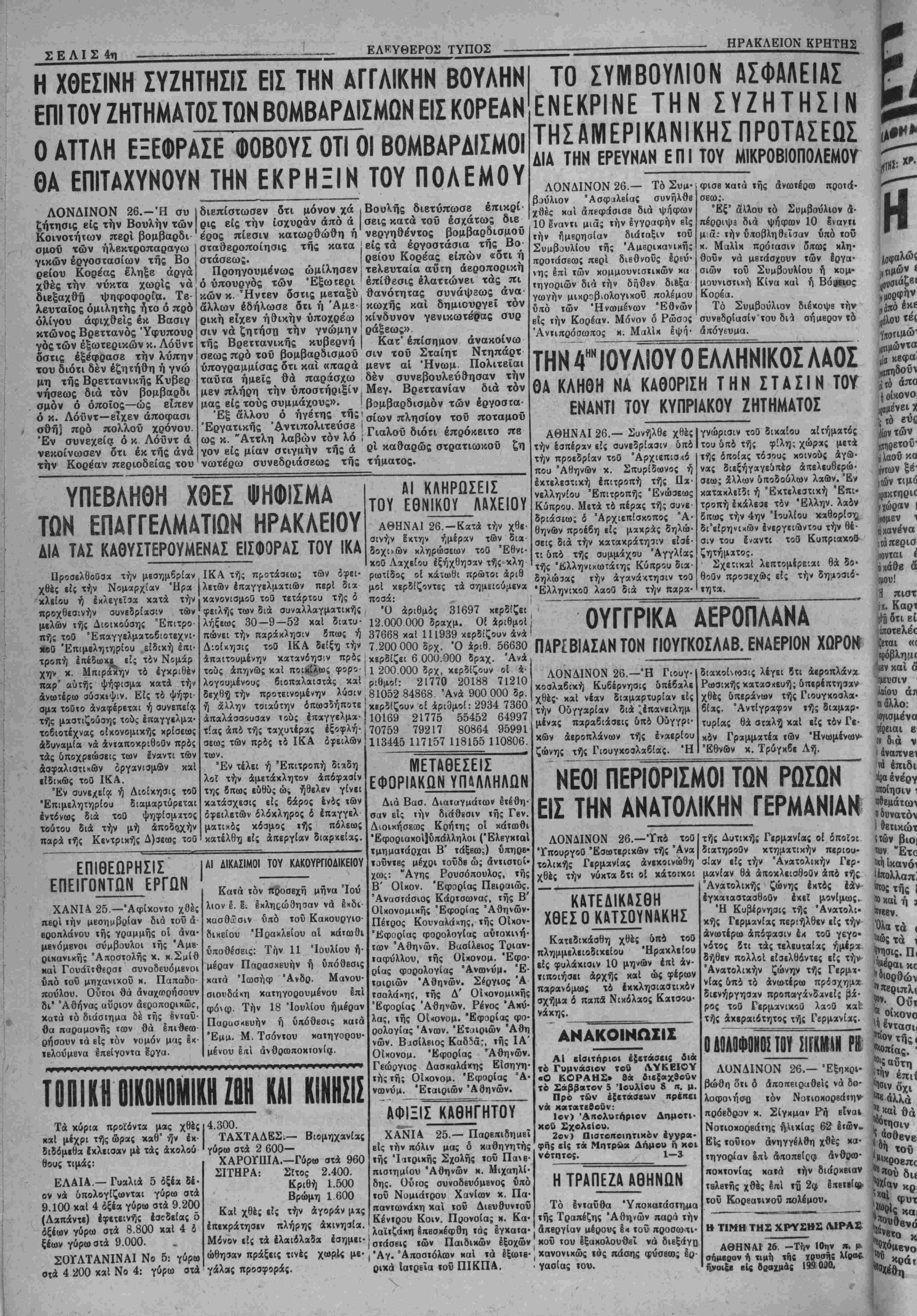 ΑΘΗΝΑΙ 26. -Την Ιθην η. μ.